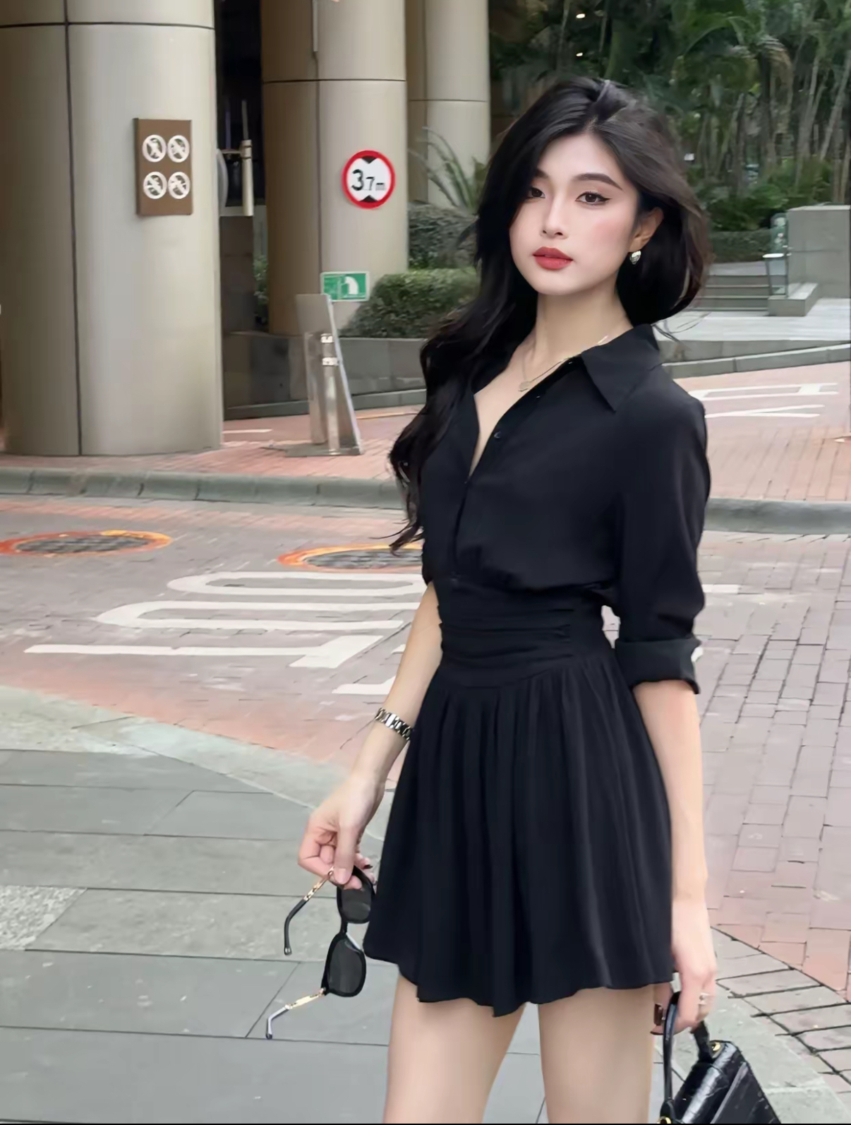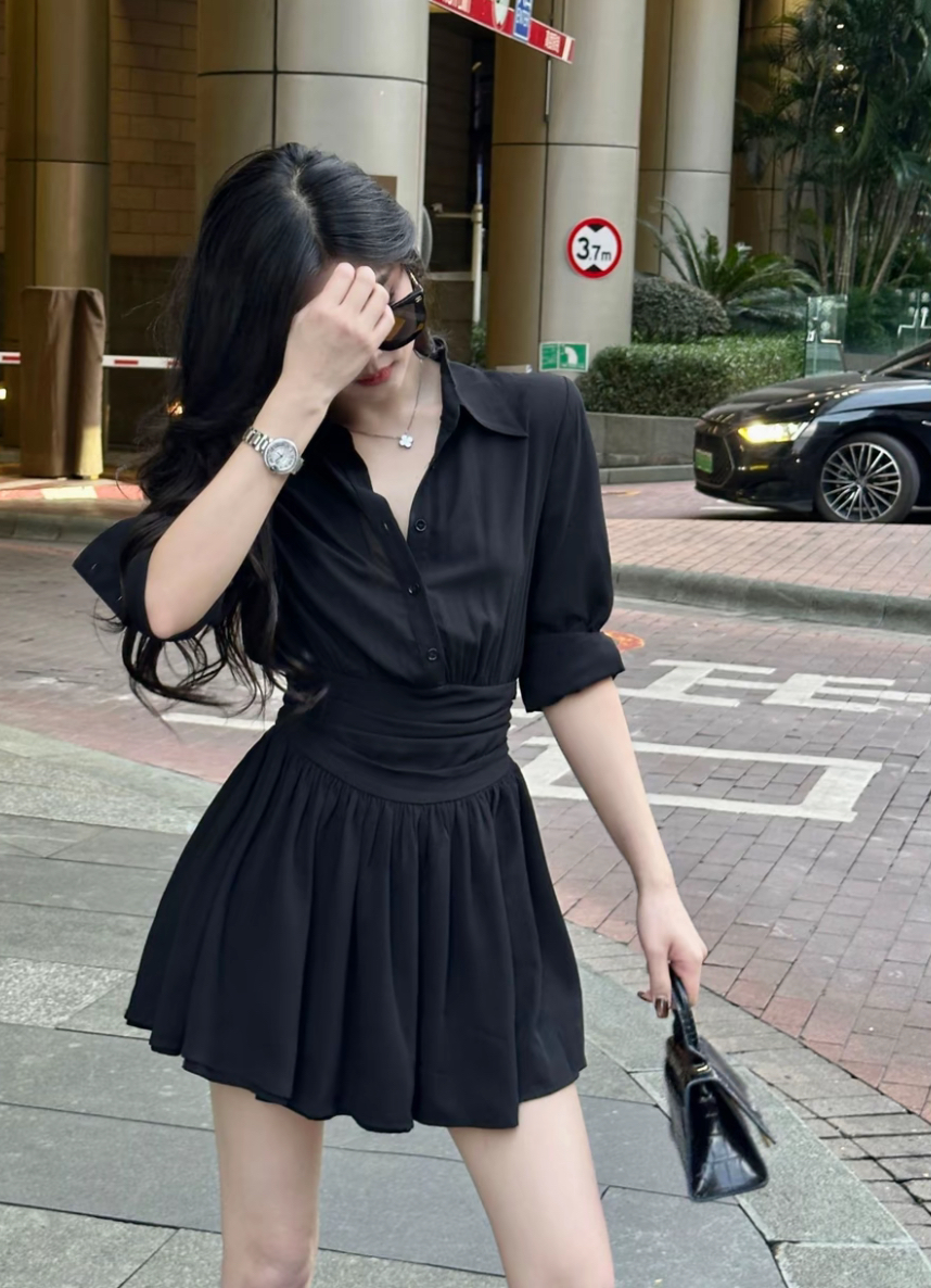 【职场锋芒】气质收腰长袖衬衫连衣裙