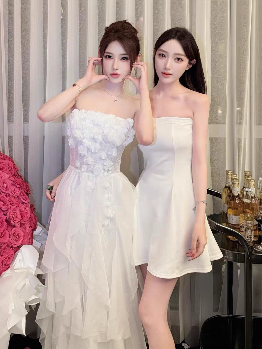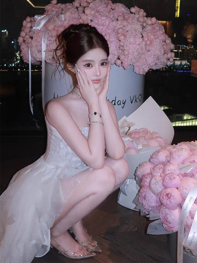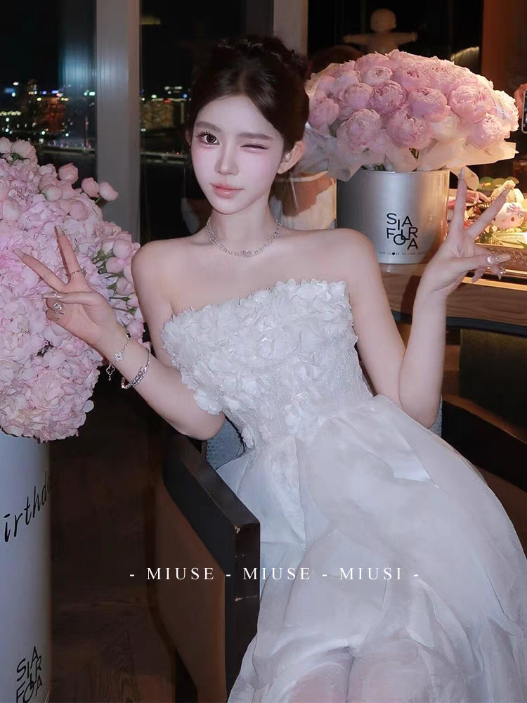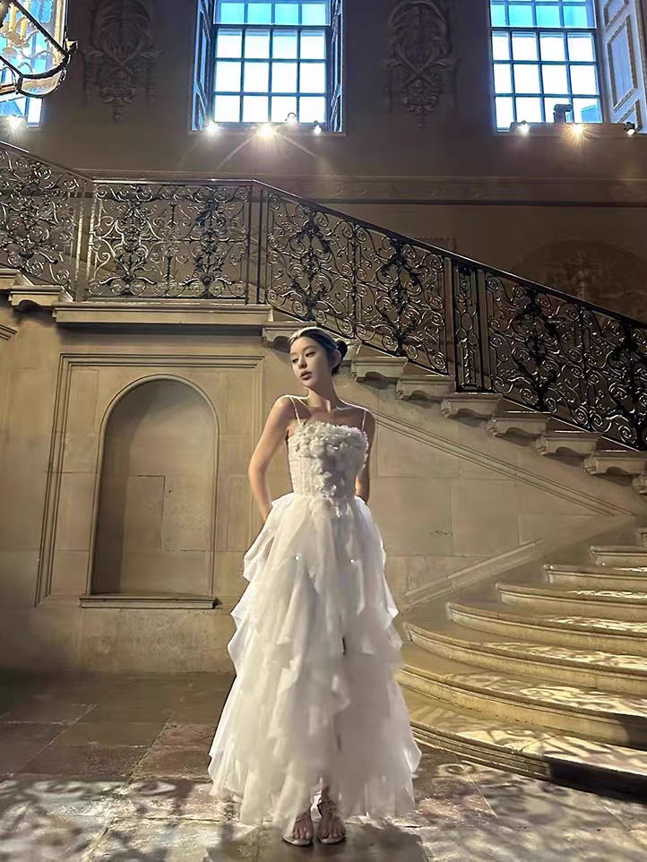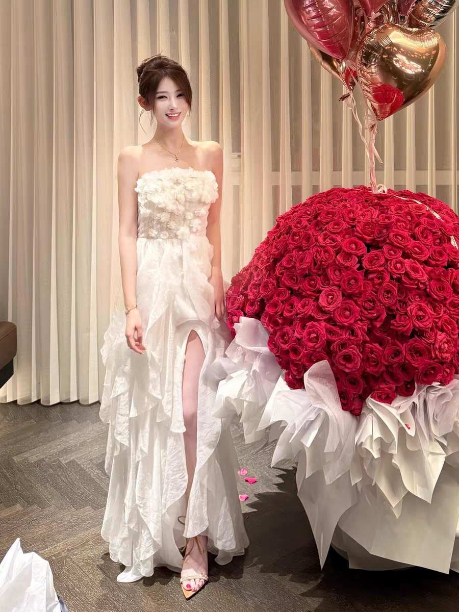 【繁花睡莲】重工礼服裙 15根鱼骨/50朵手缝花/12条荷叶纱边