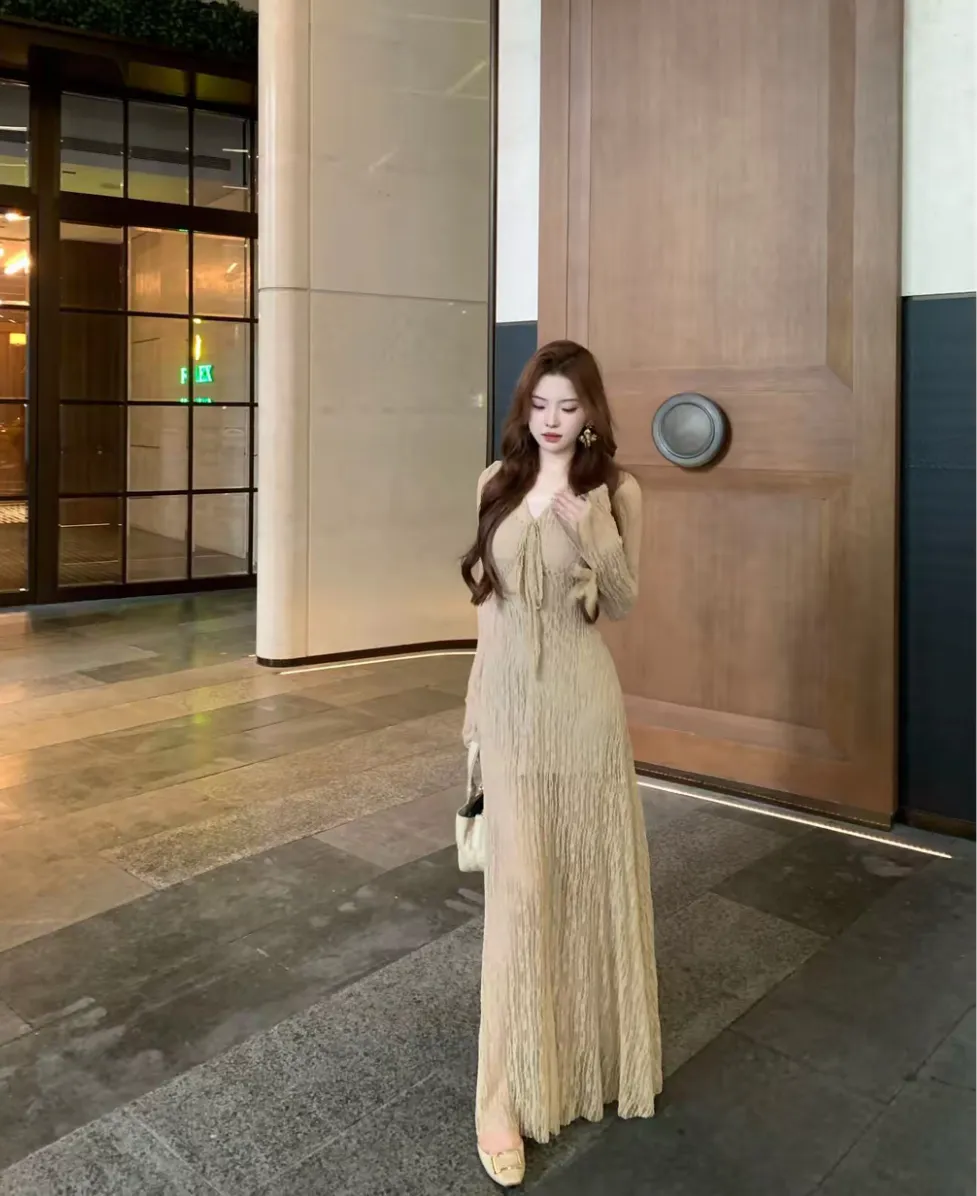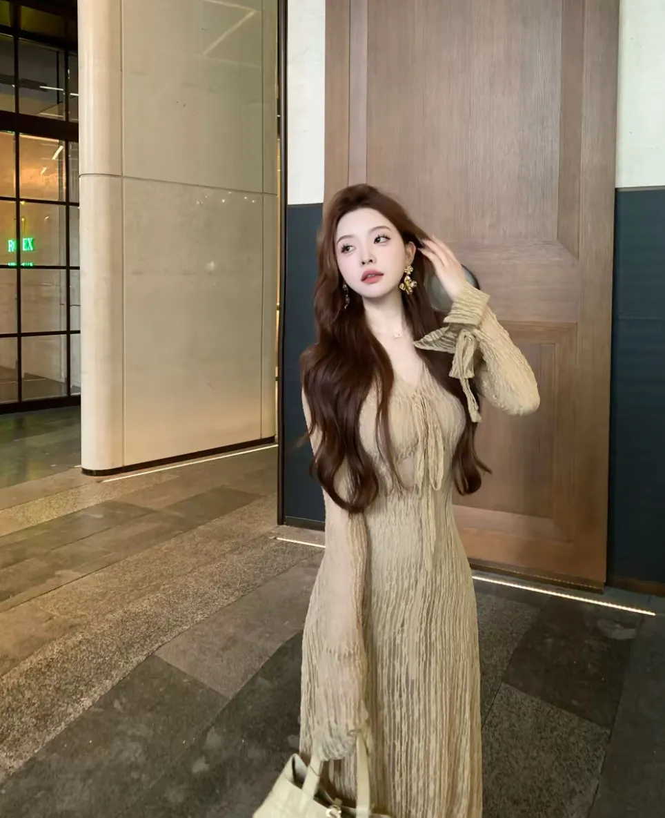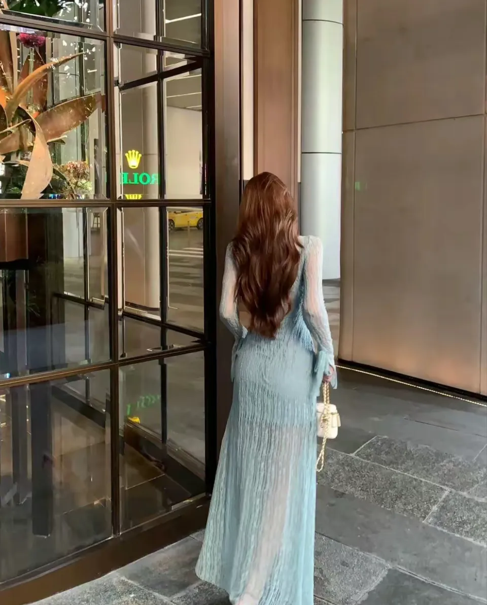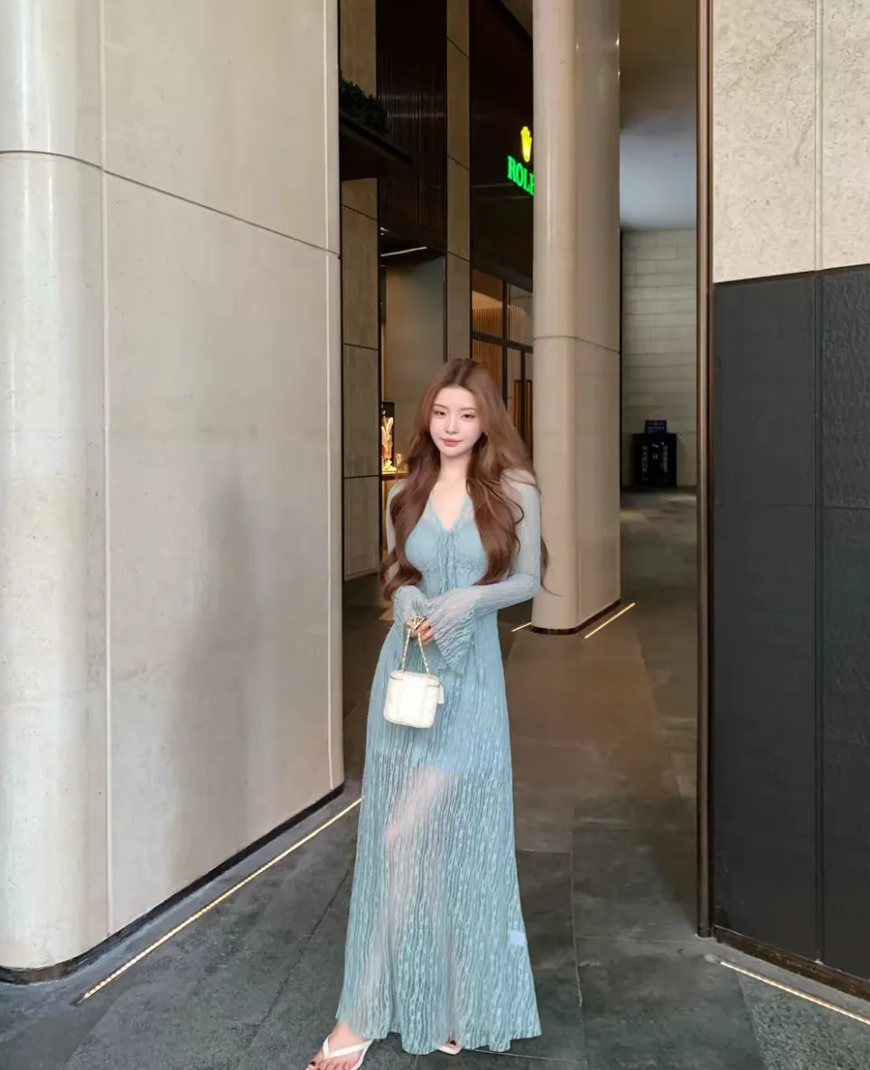 【竹色溪下】设计感蕾丝透感两件套连衣裙