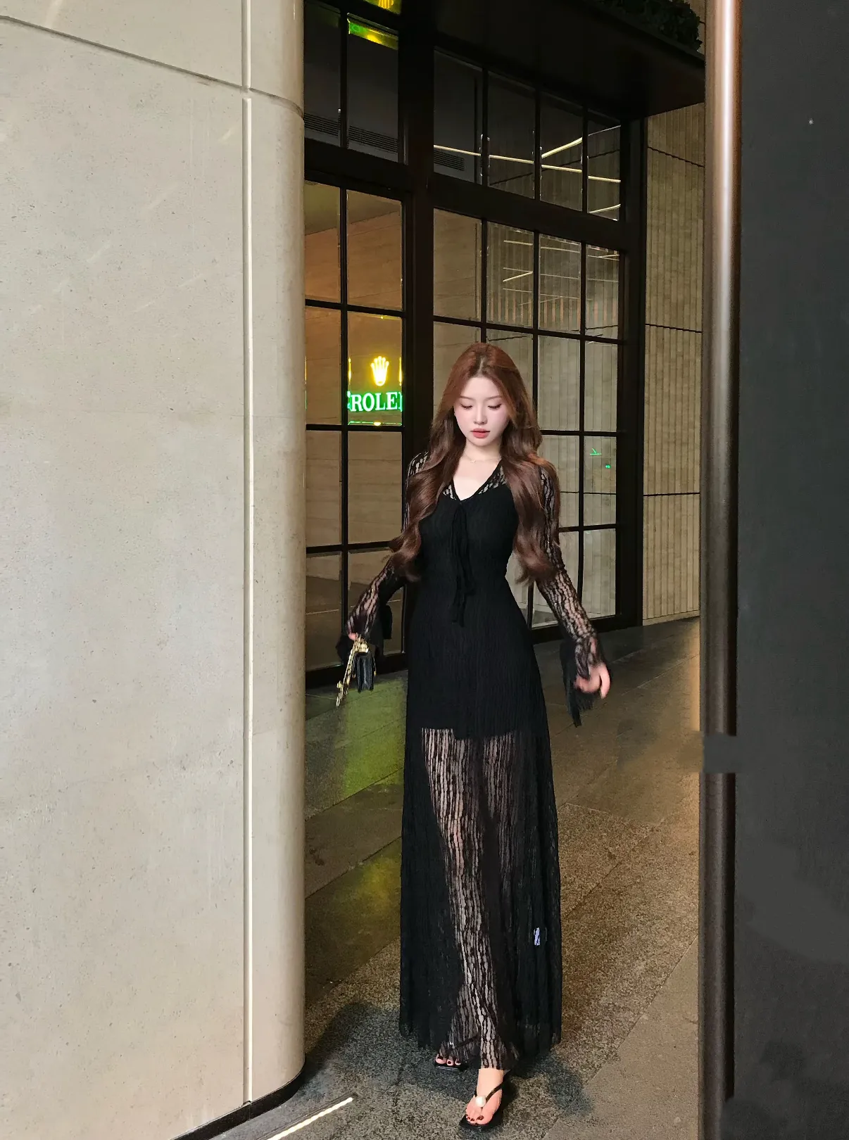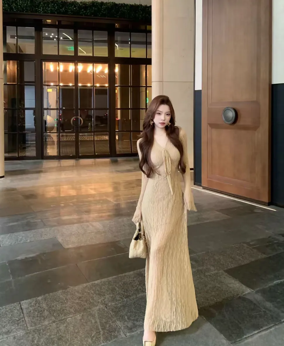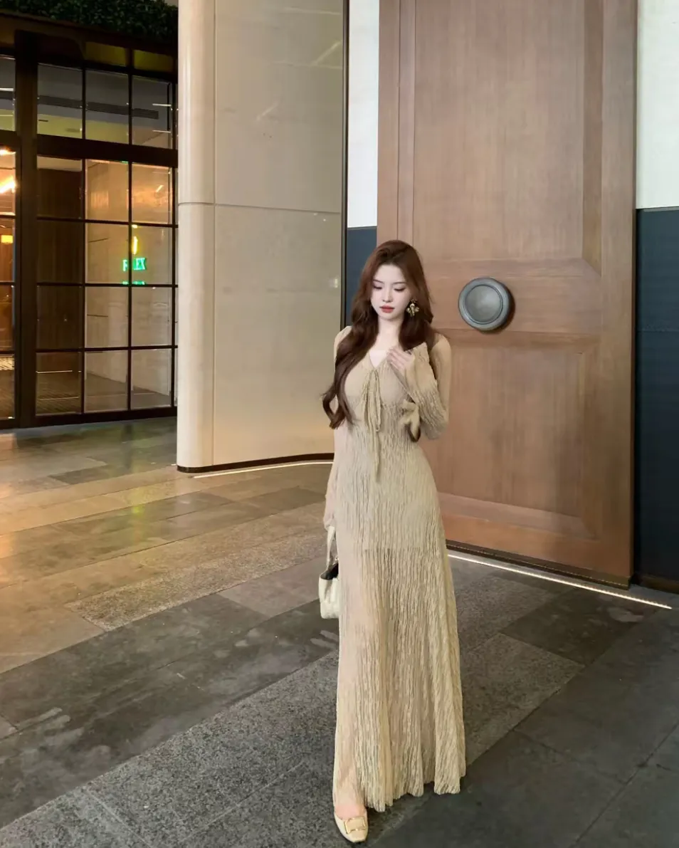 【竹色溪下】设计感蕾丝透感两件套连衣裙