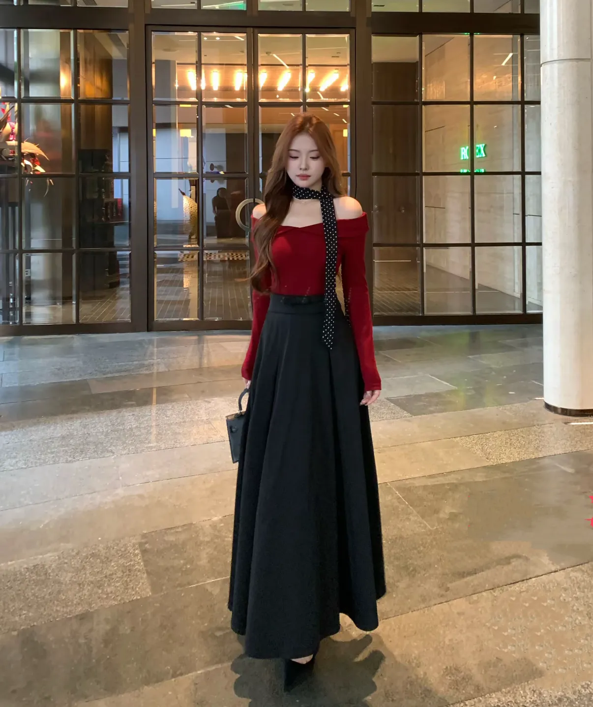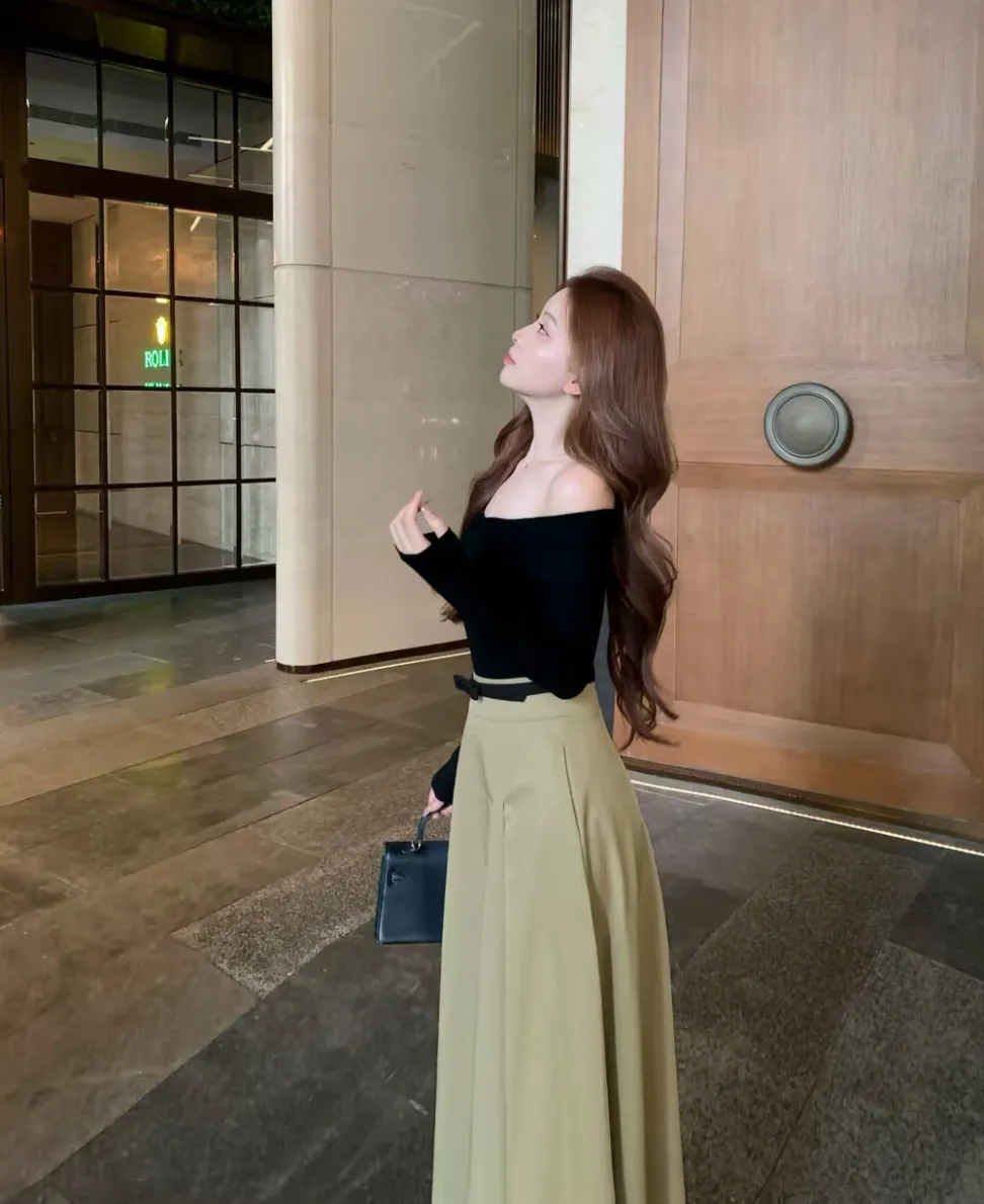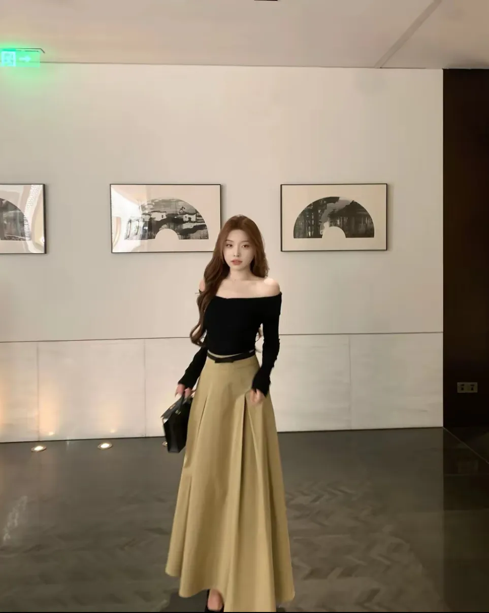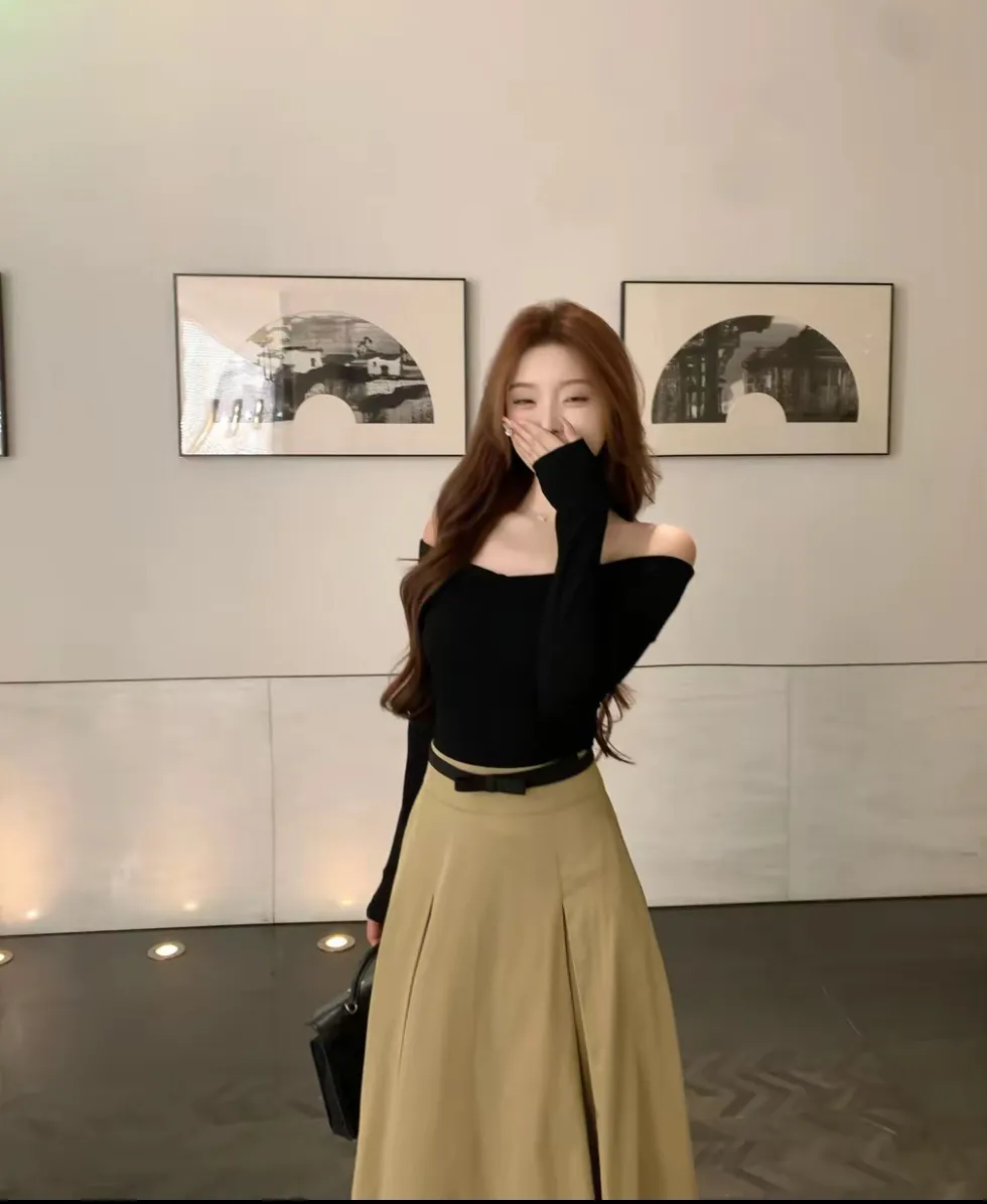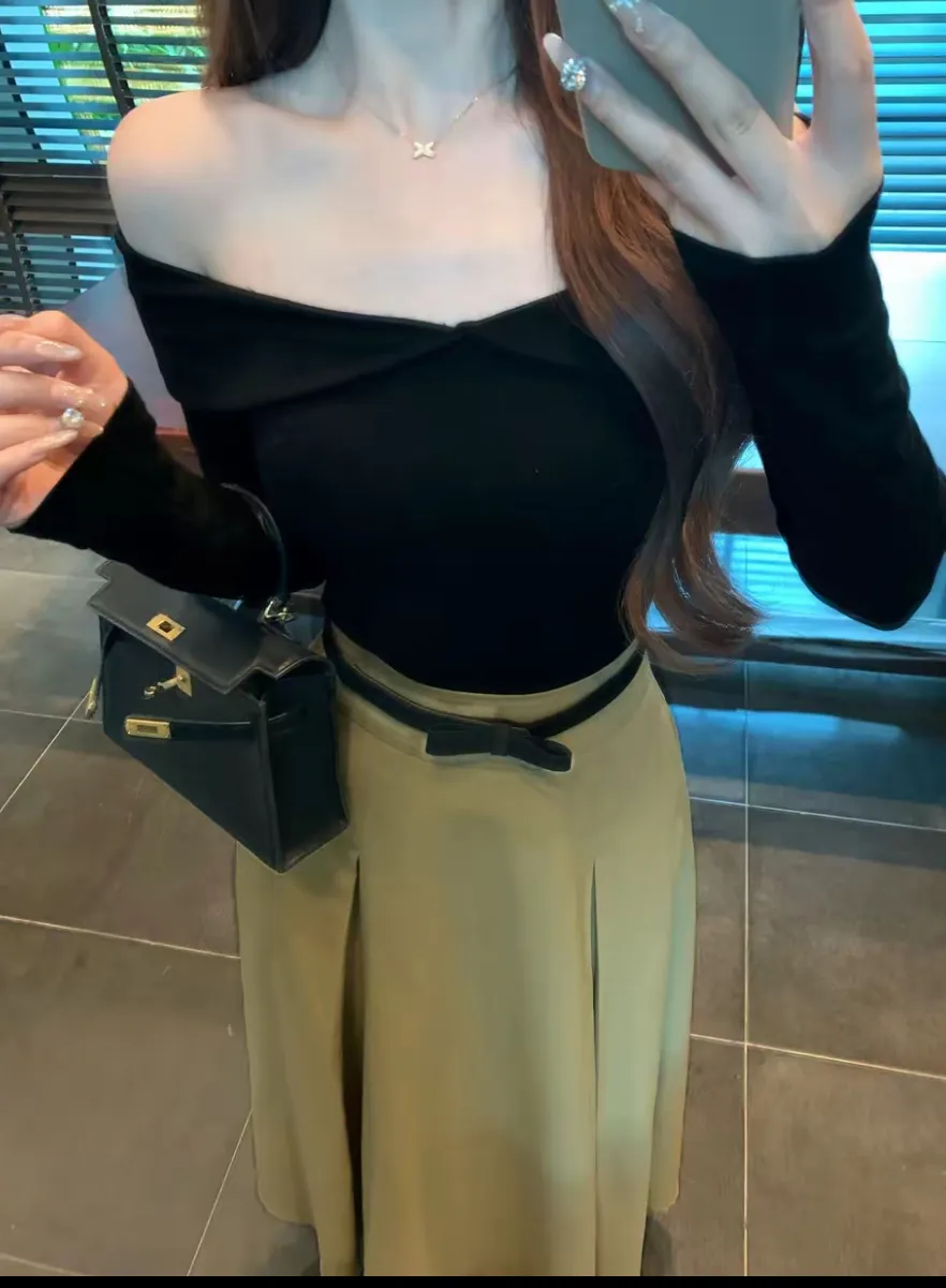 【秋日舞曲】一字肩性感露肩针织衫