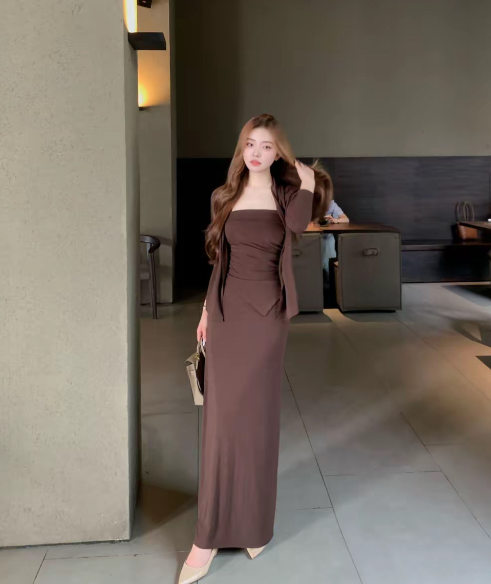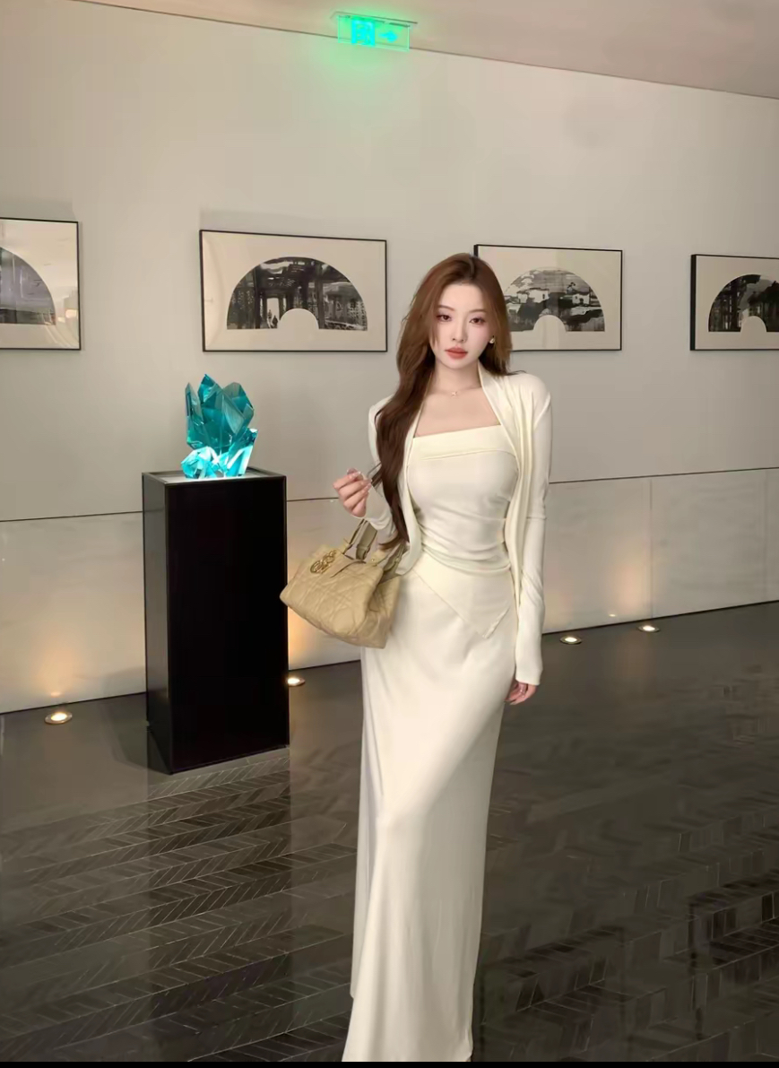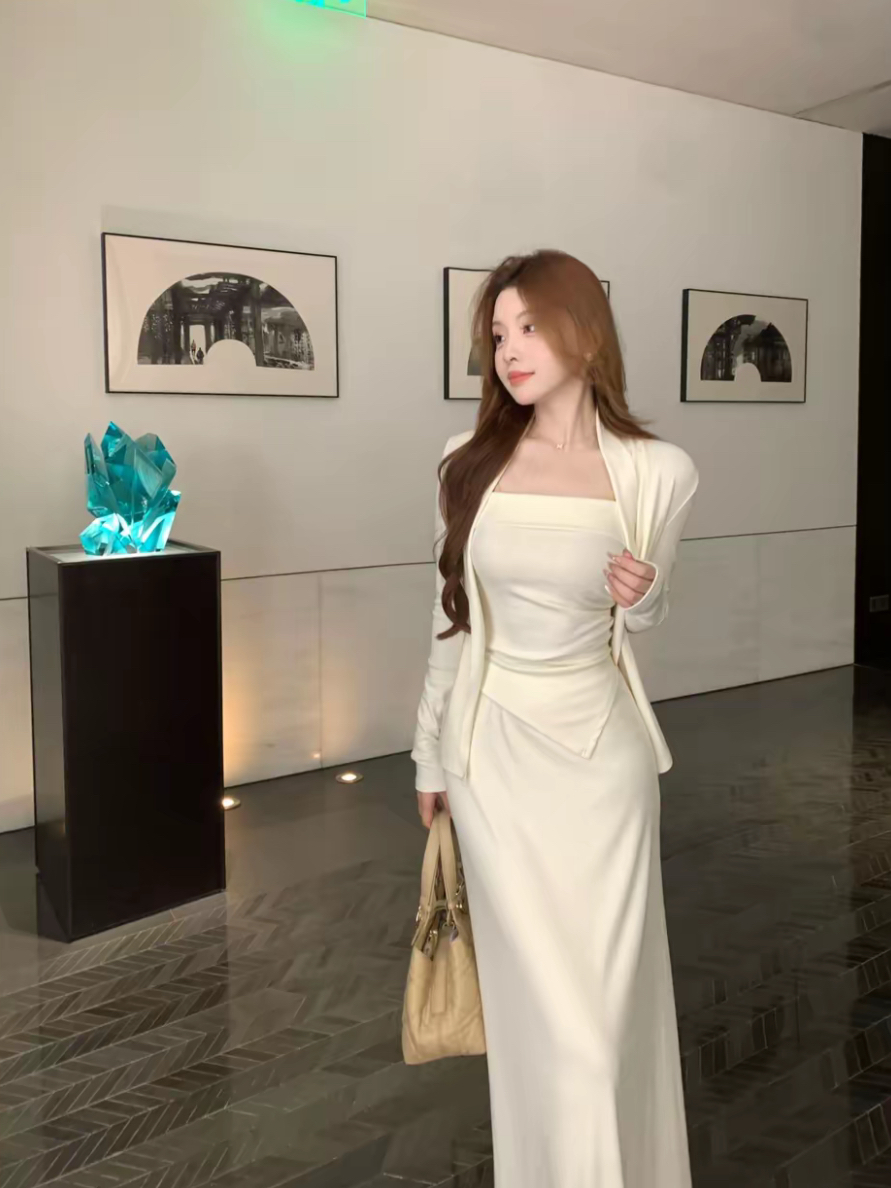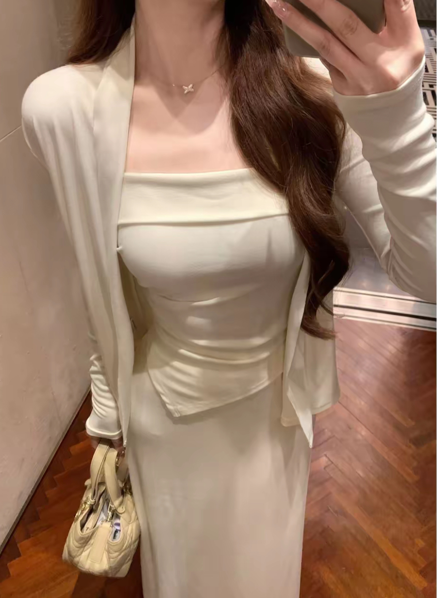 【元气暖阳】针织开衫吊带上衣+半身裙三件套