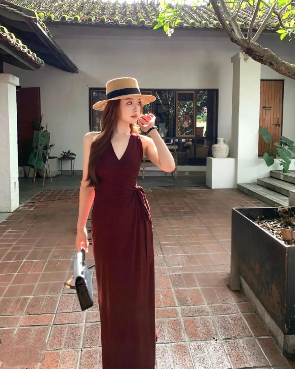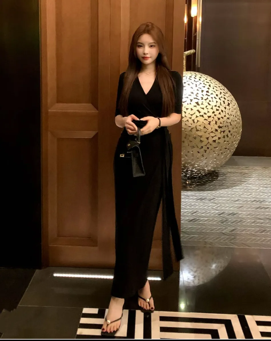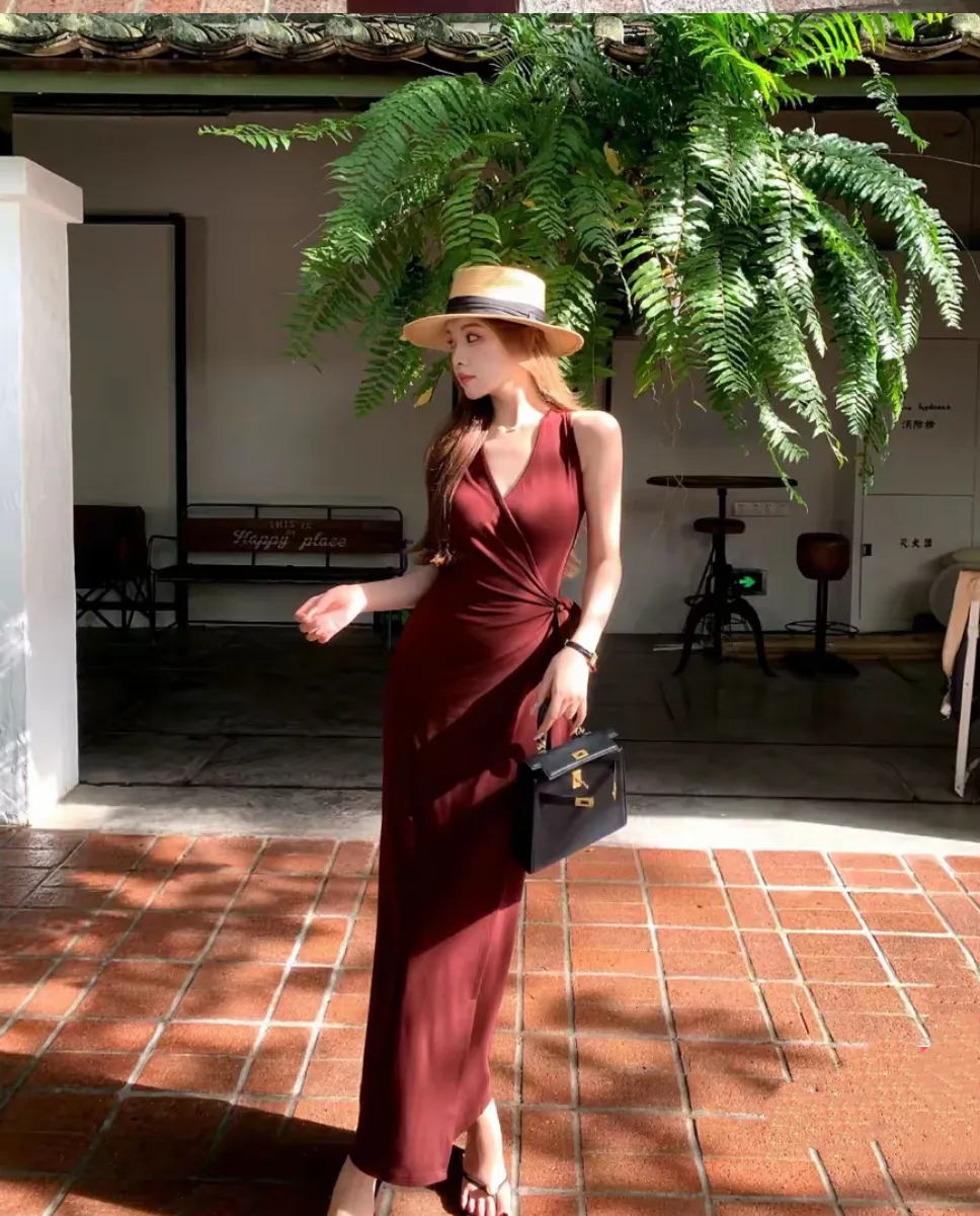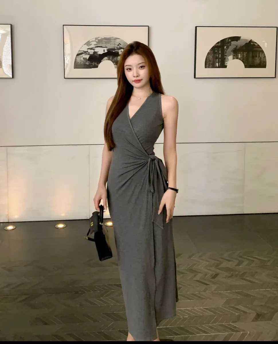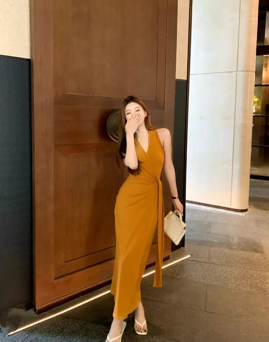 【美丽公式】气质V领开叉无袖包臀连衣裙