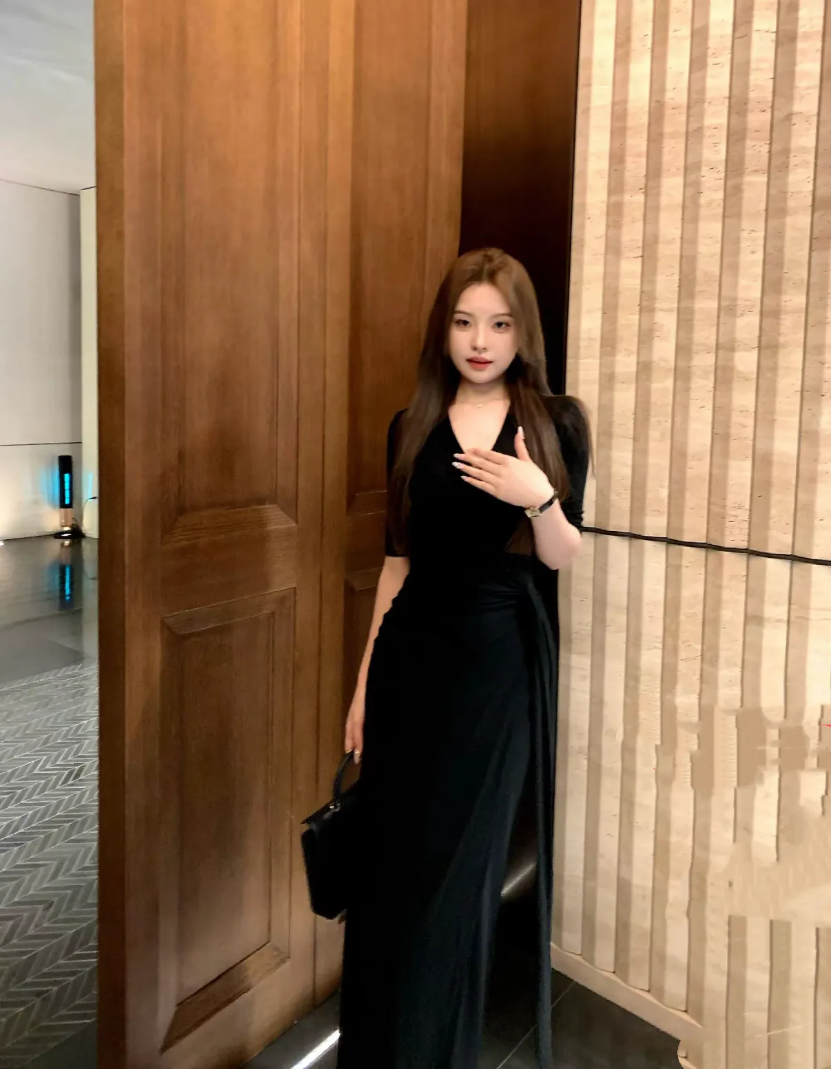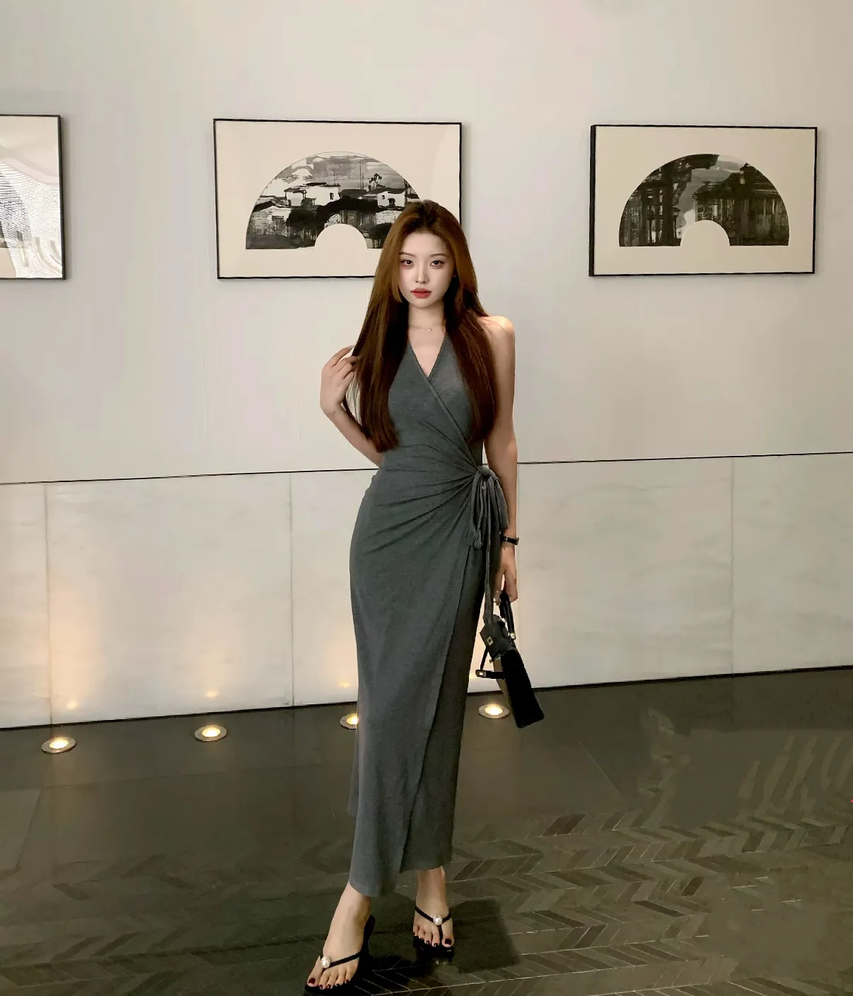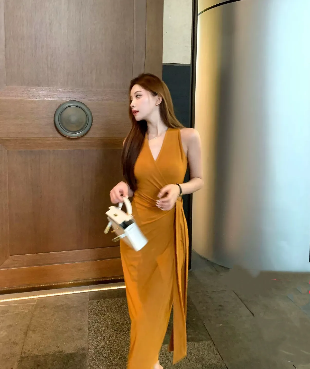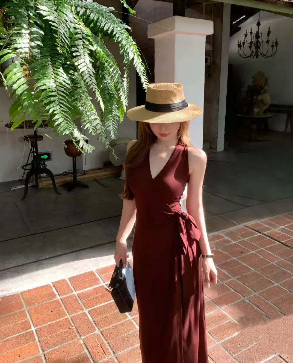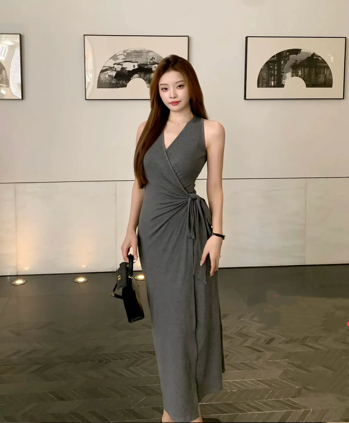 【美丽公式】气质V领开叉无袖包臀连衣裙