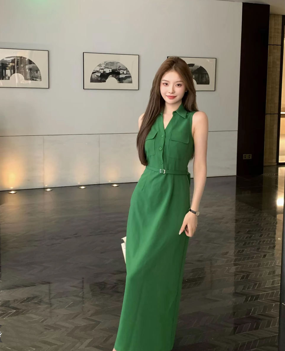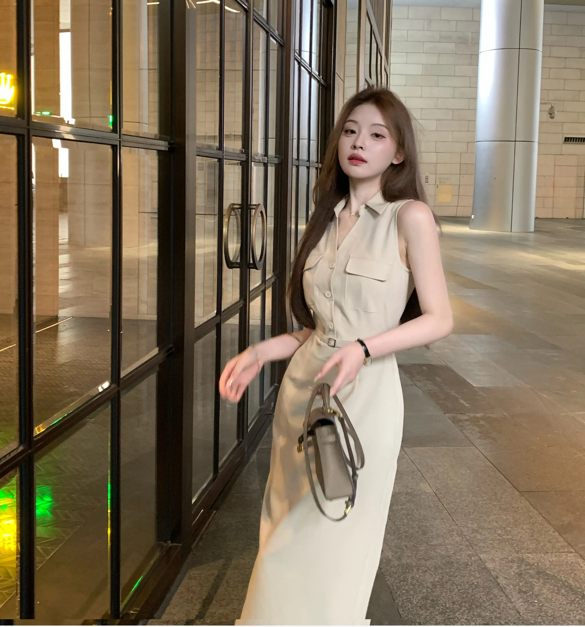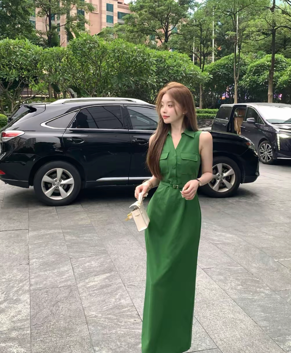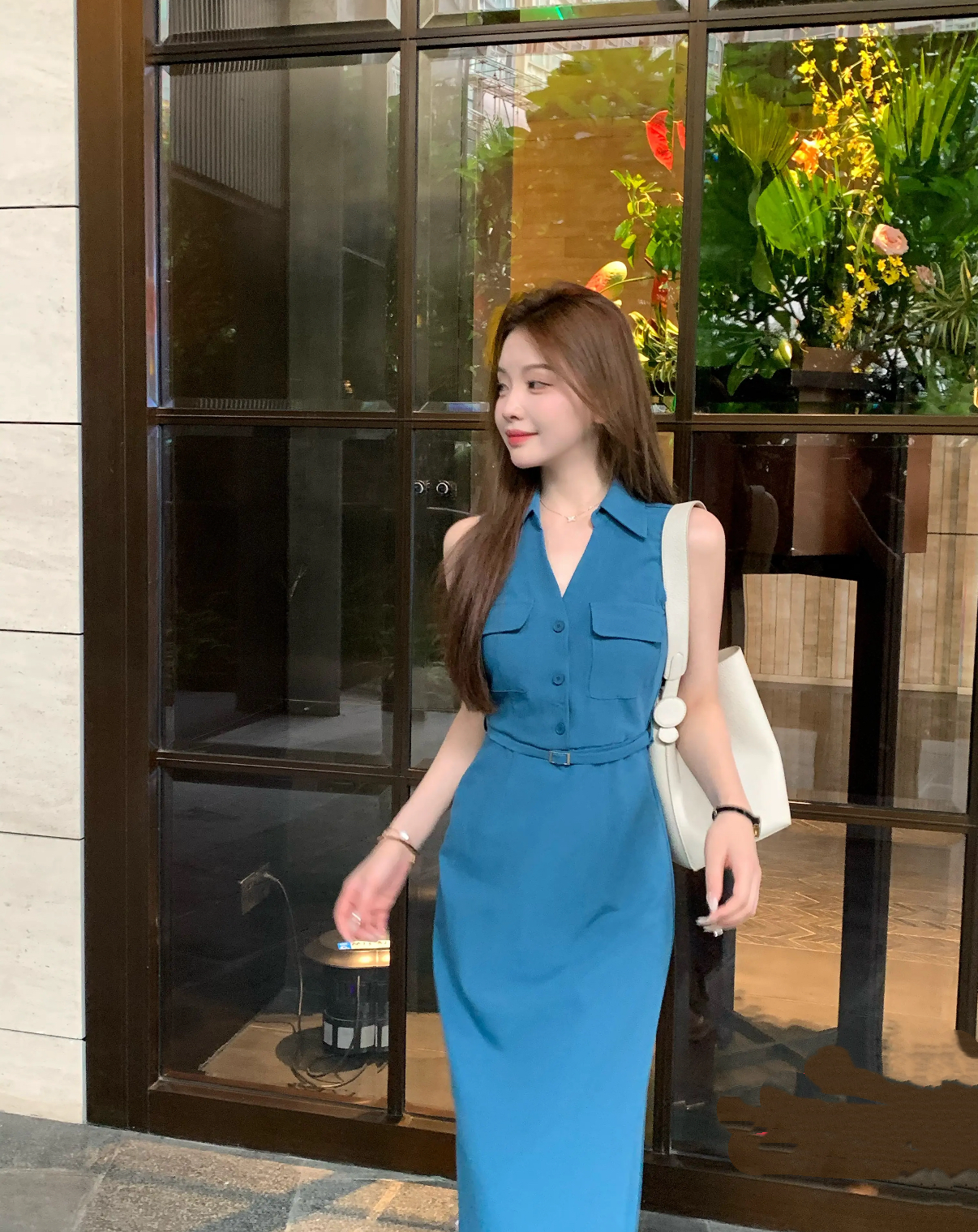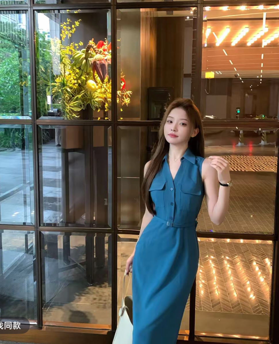【曼谷季风】韩系气质翻领收腰连衣裙(包括腰带)2041
