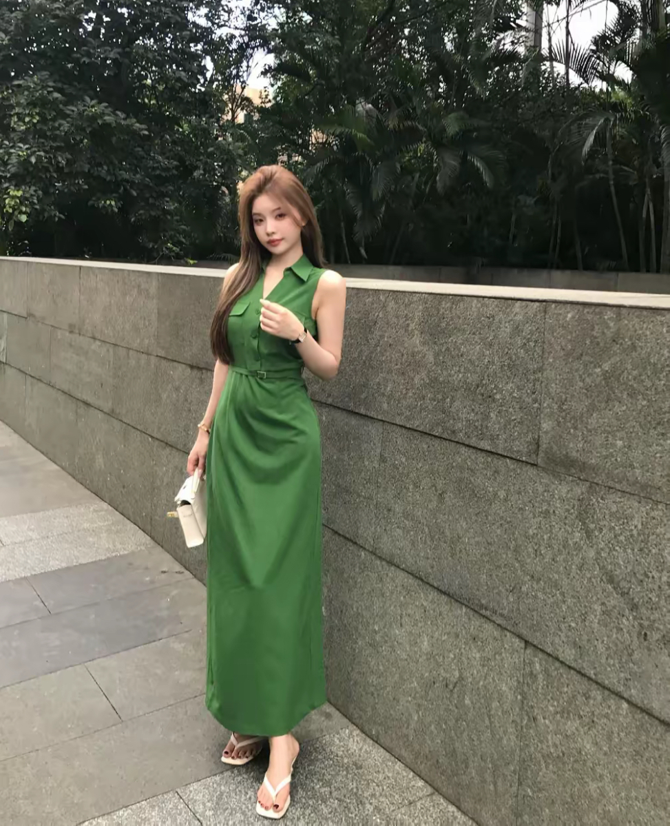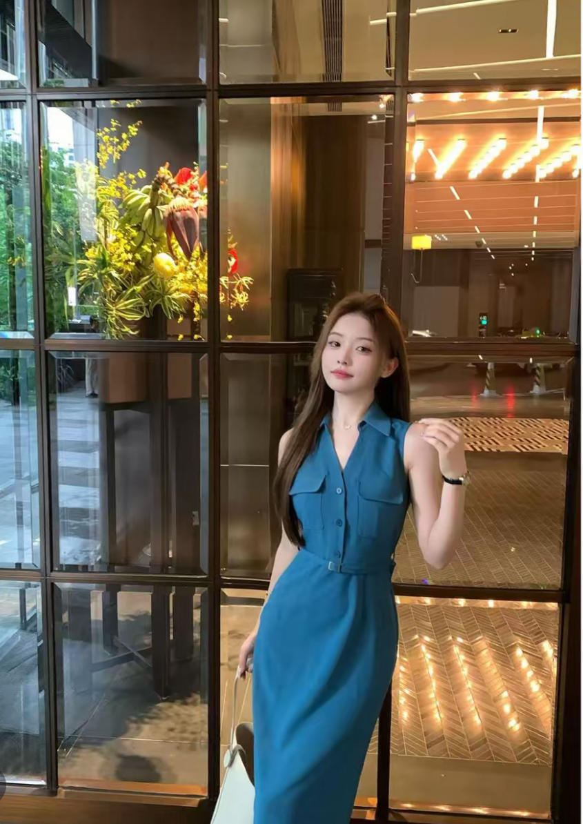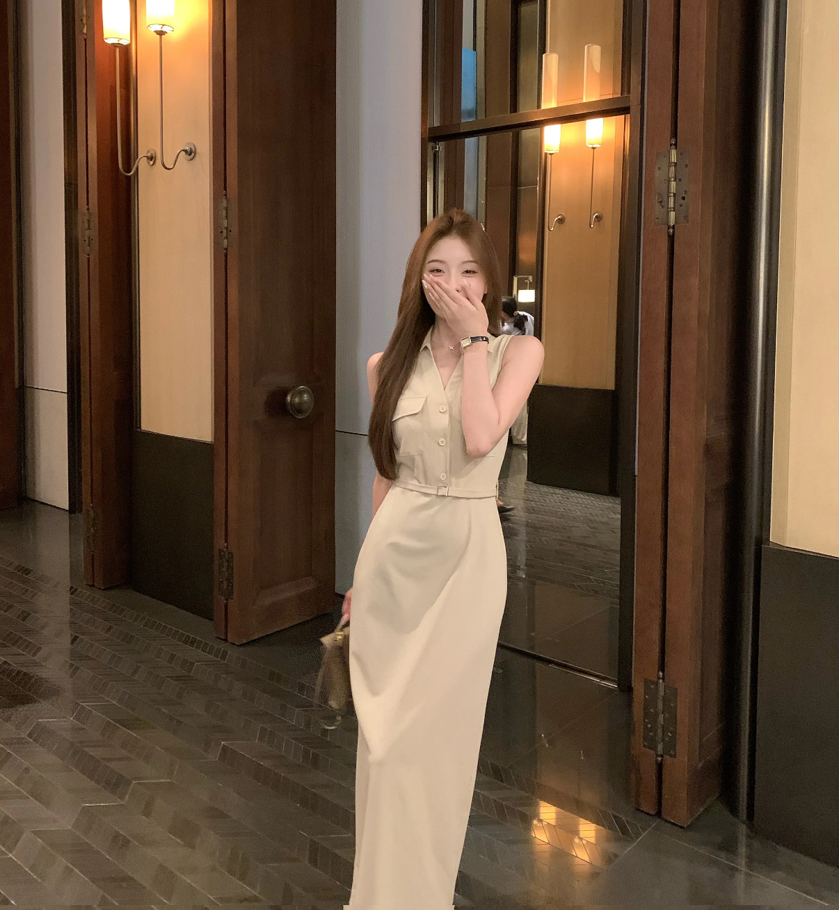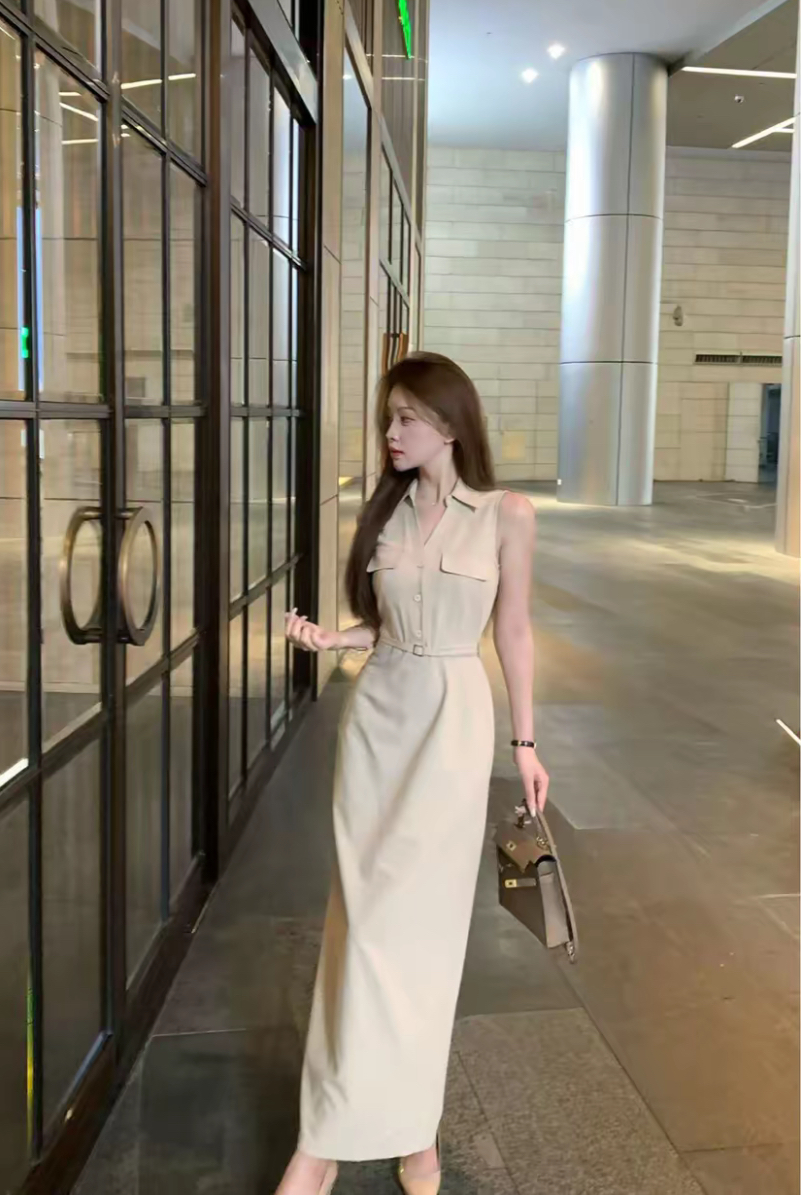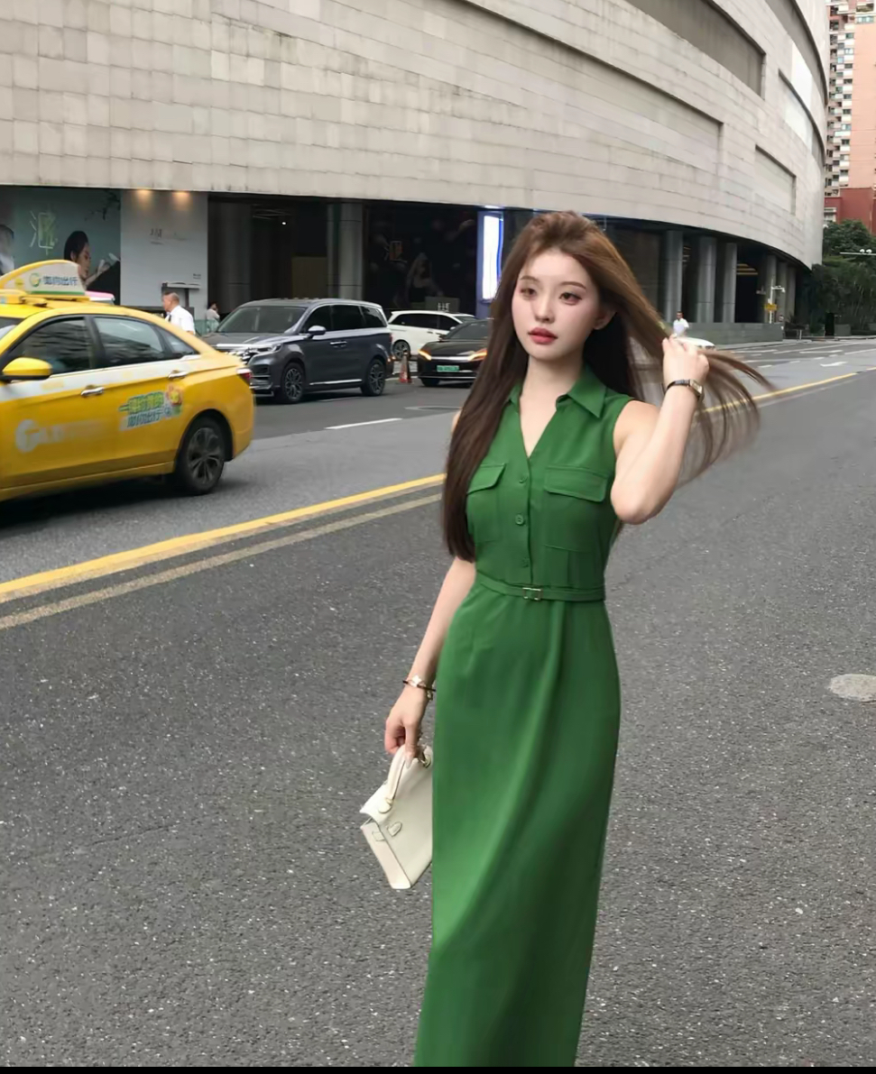 【曼谷季风】韩系气质翻领收腰连衣裙(包括腰带)2041