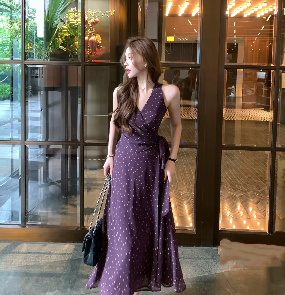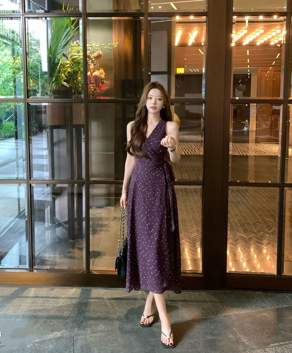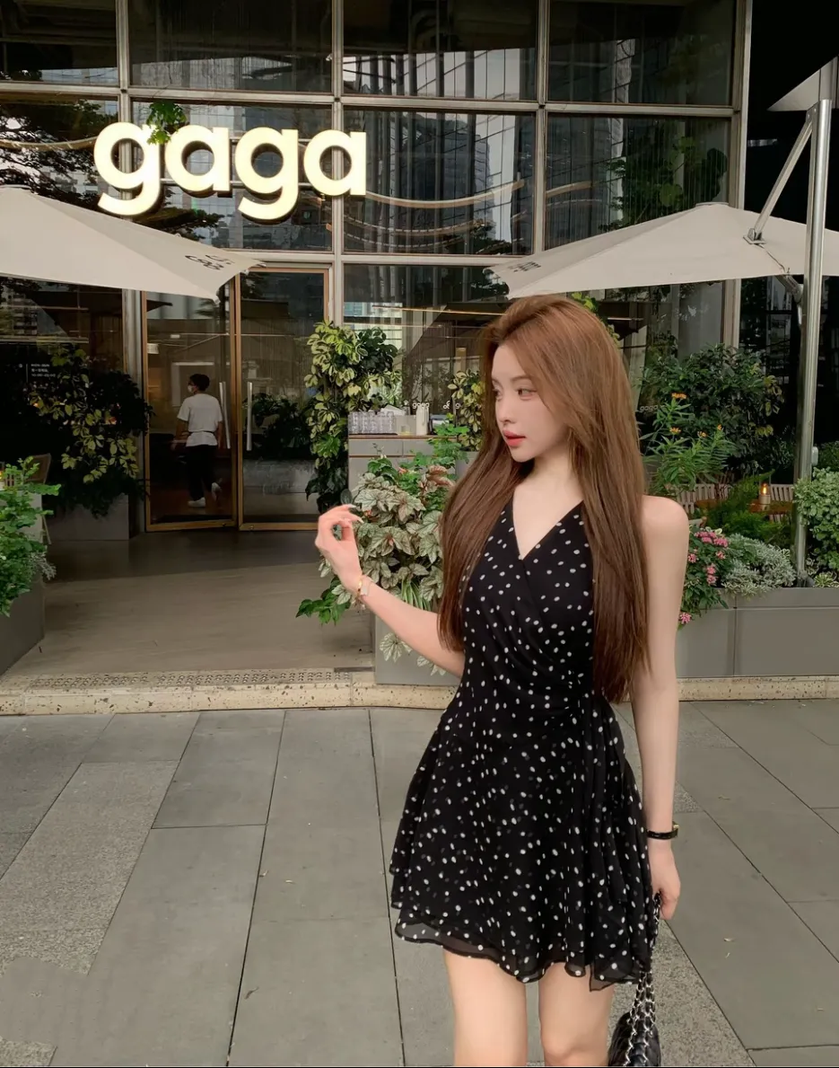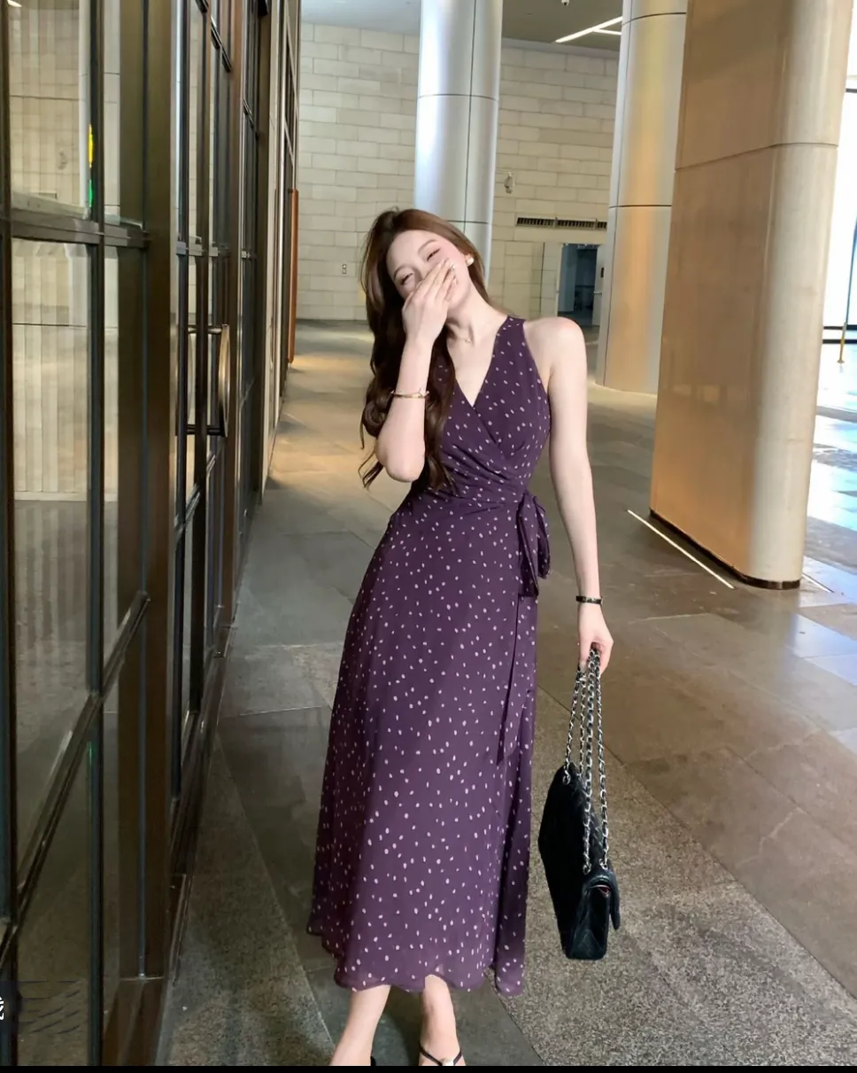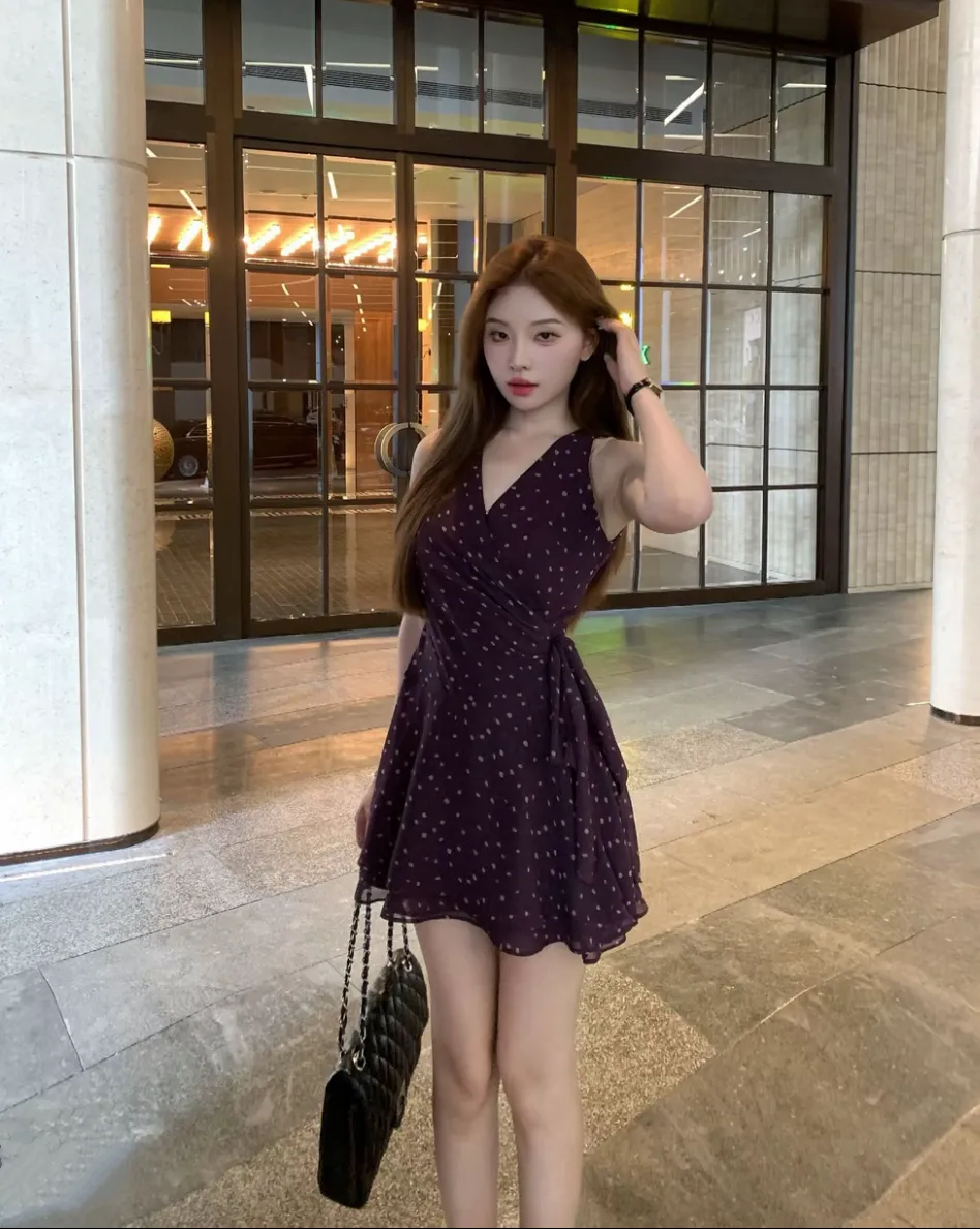 【绮丽回忆】雪纺一片式波点V领无袖连衣裙