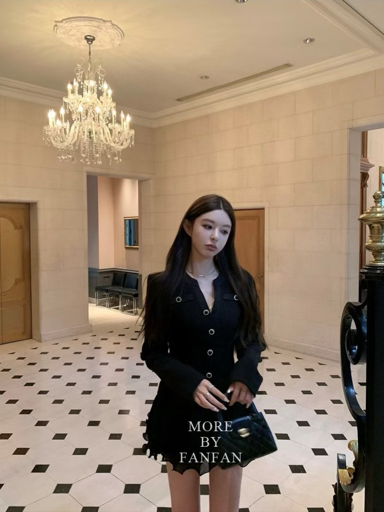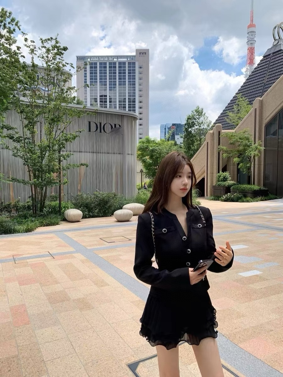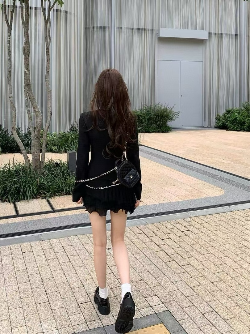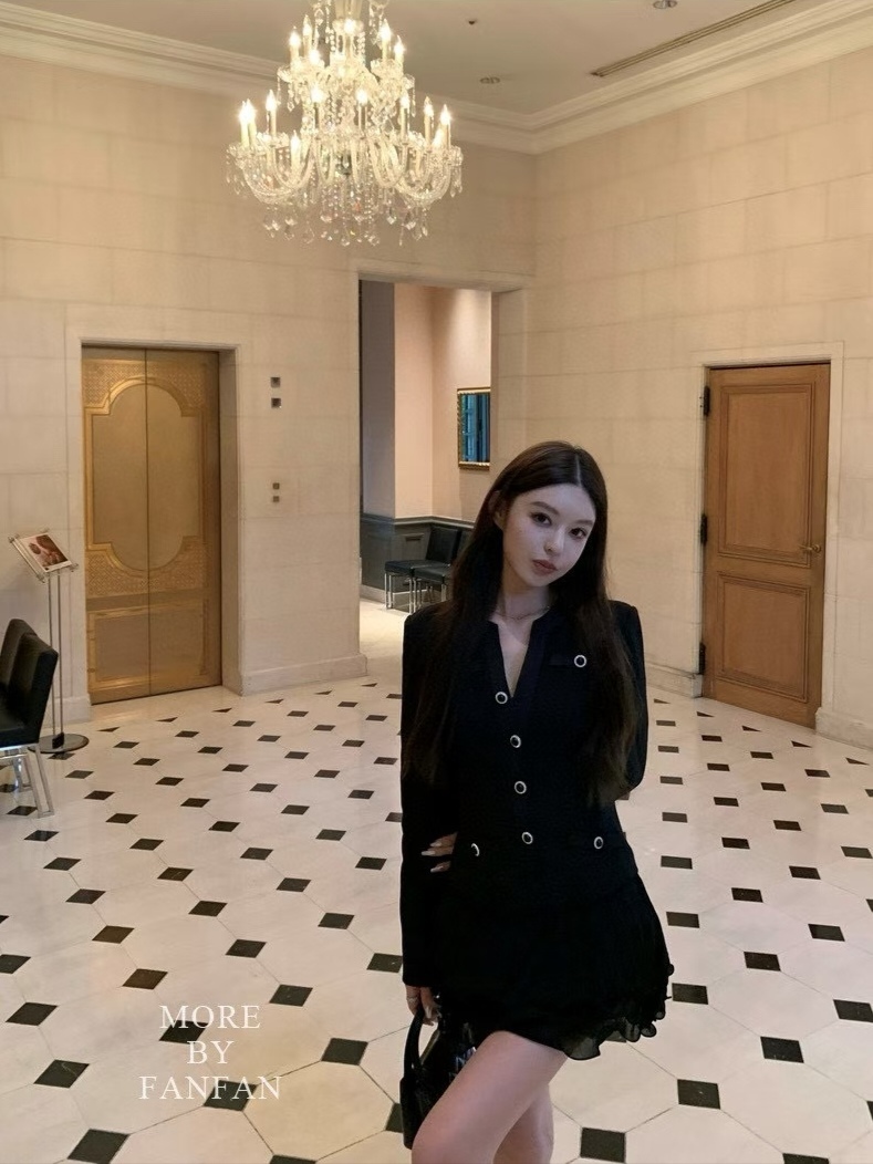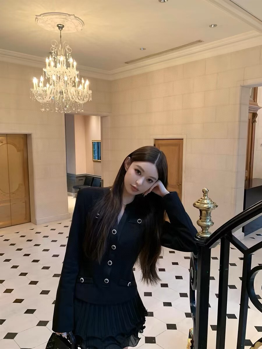【黑松露蛋糕】优雅显贵收腰香风上衣+压褶密拷花边蛋糕半身裙套装