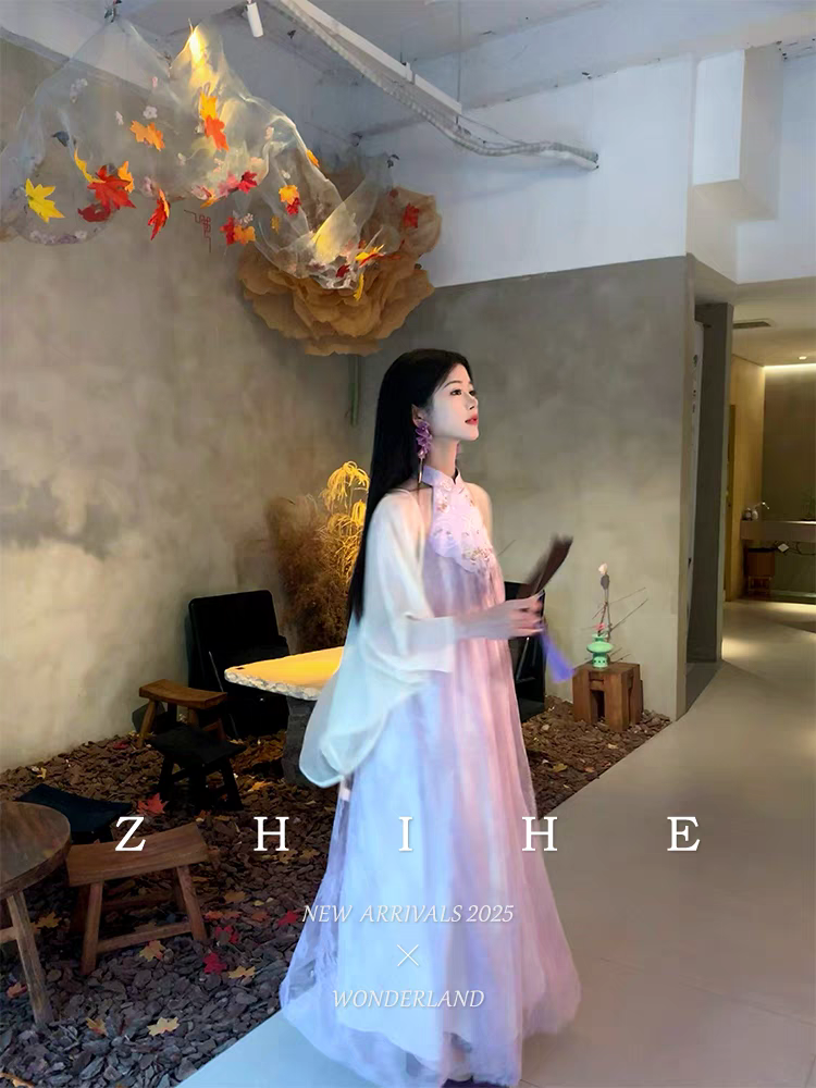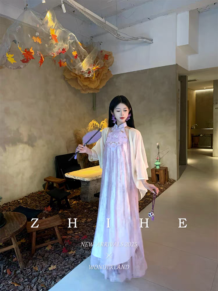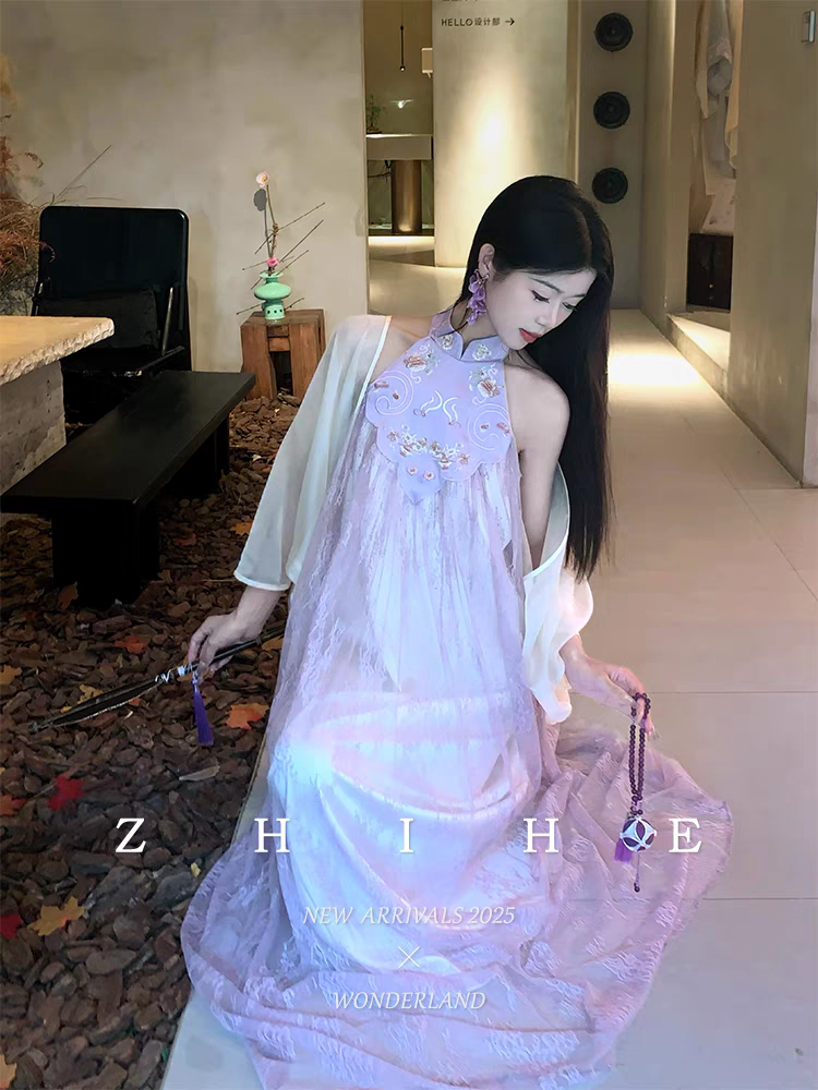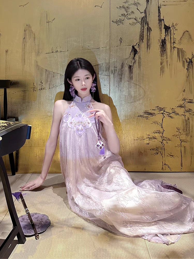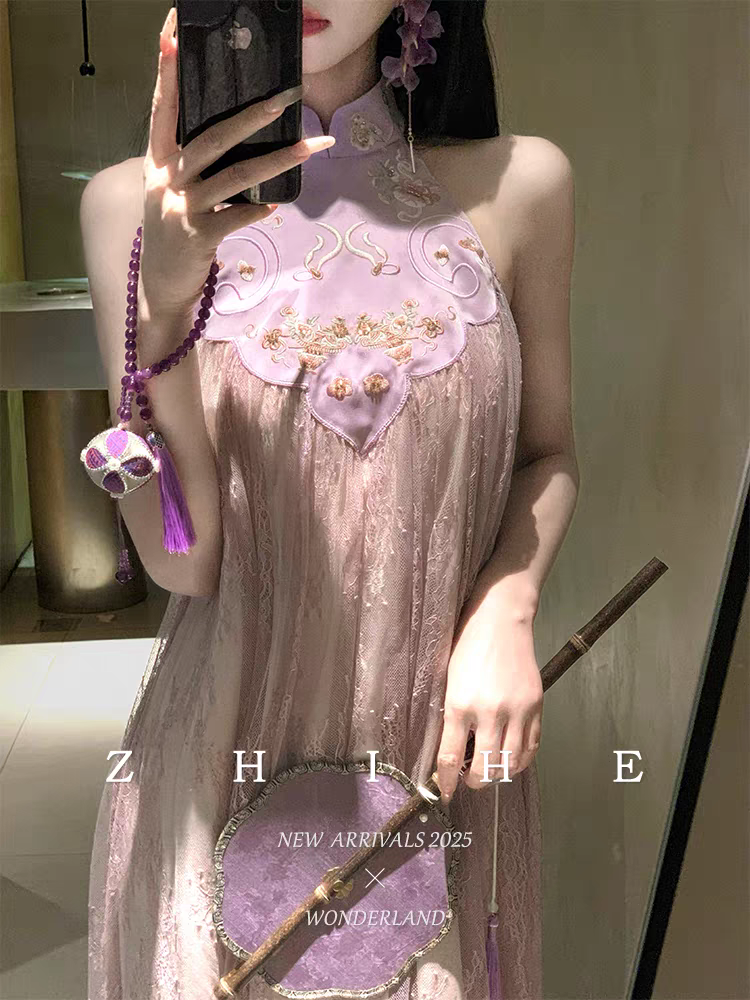 【露华浓】静奢新中式原创刺绣蕾丝挂脖连衣裙