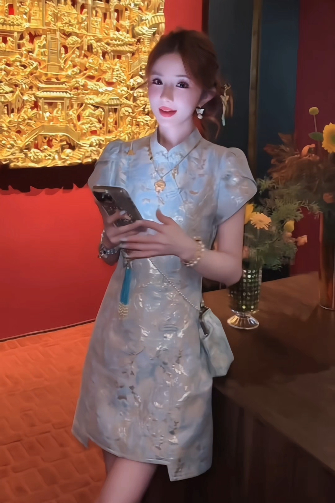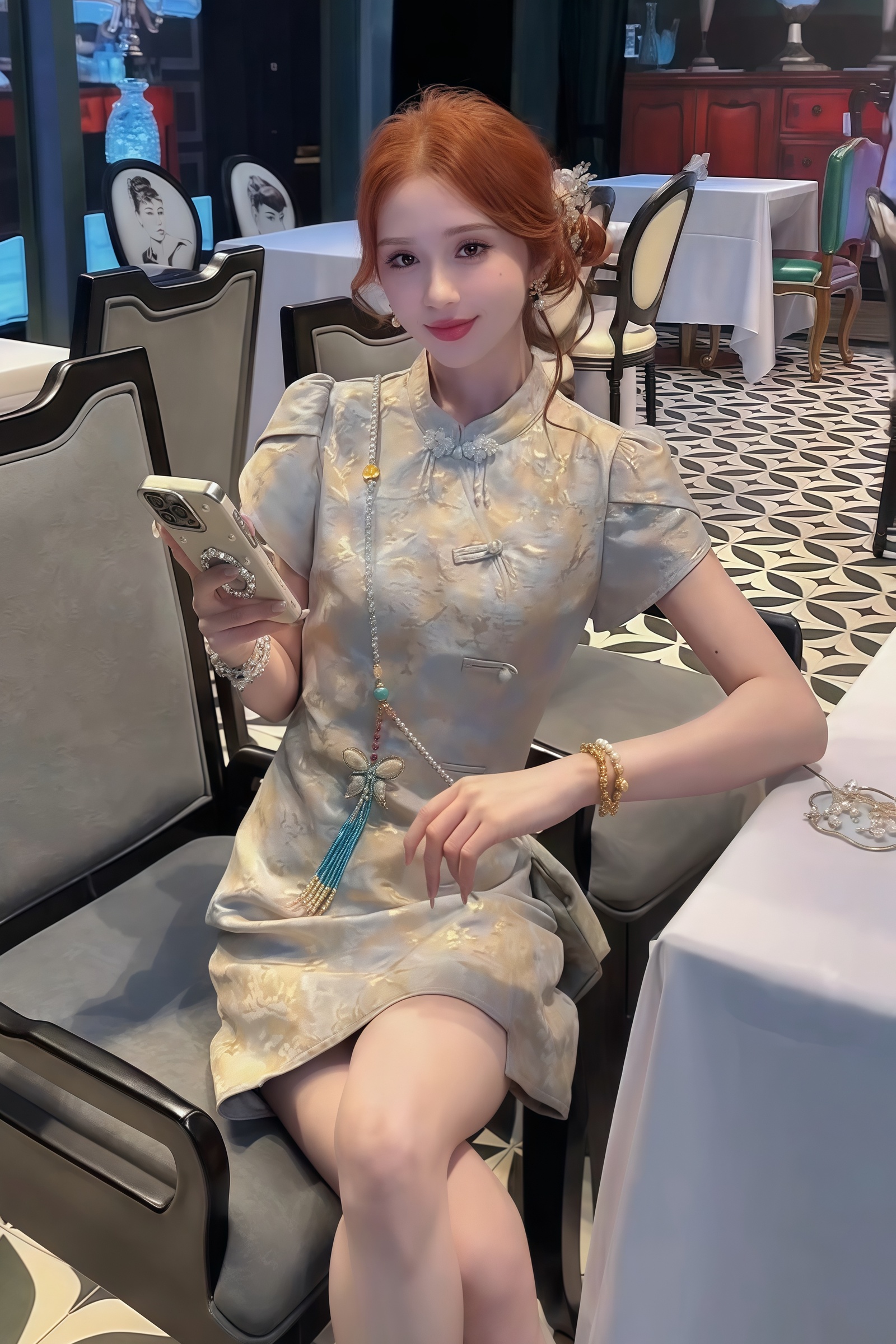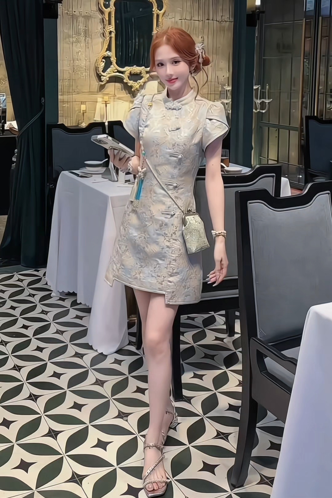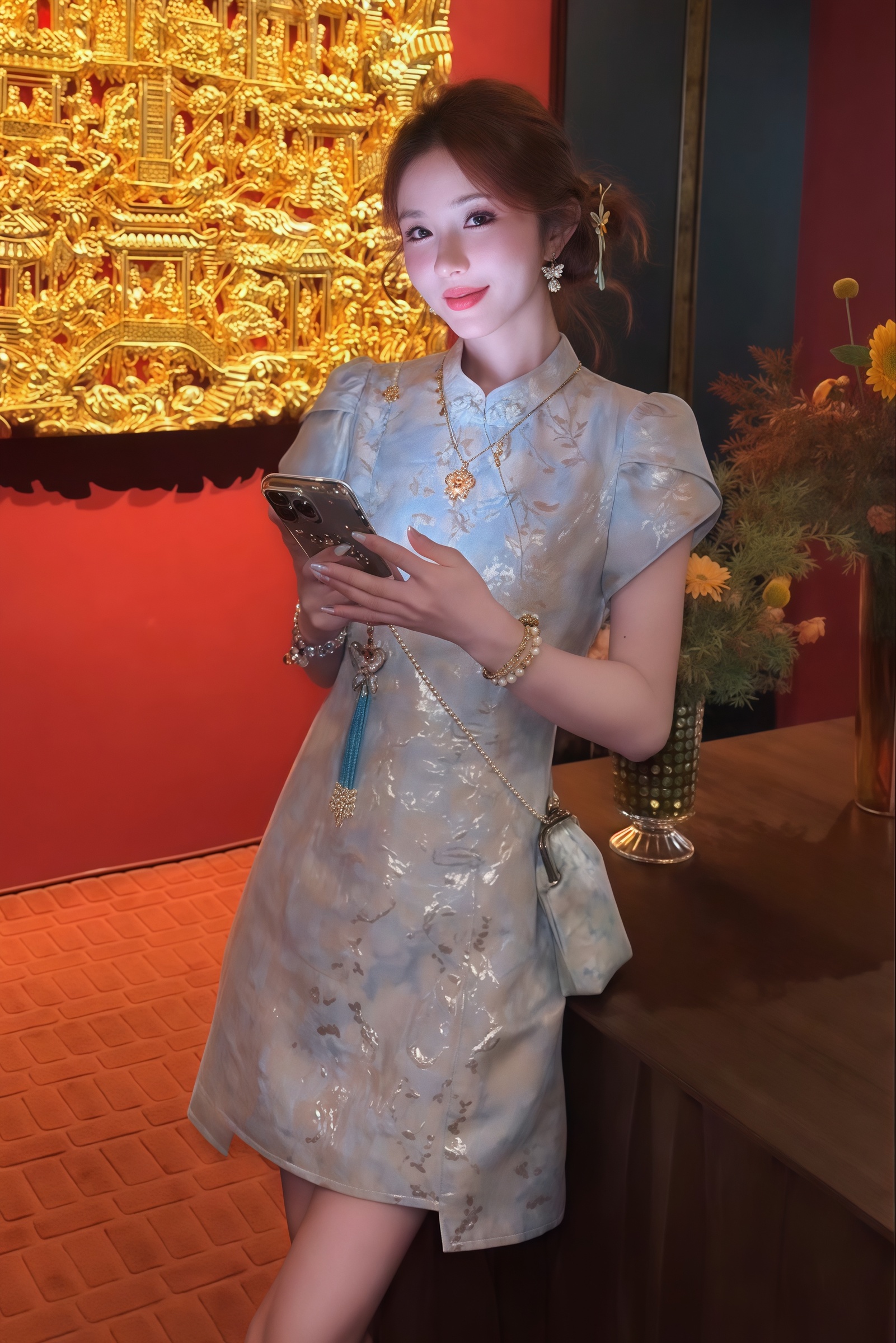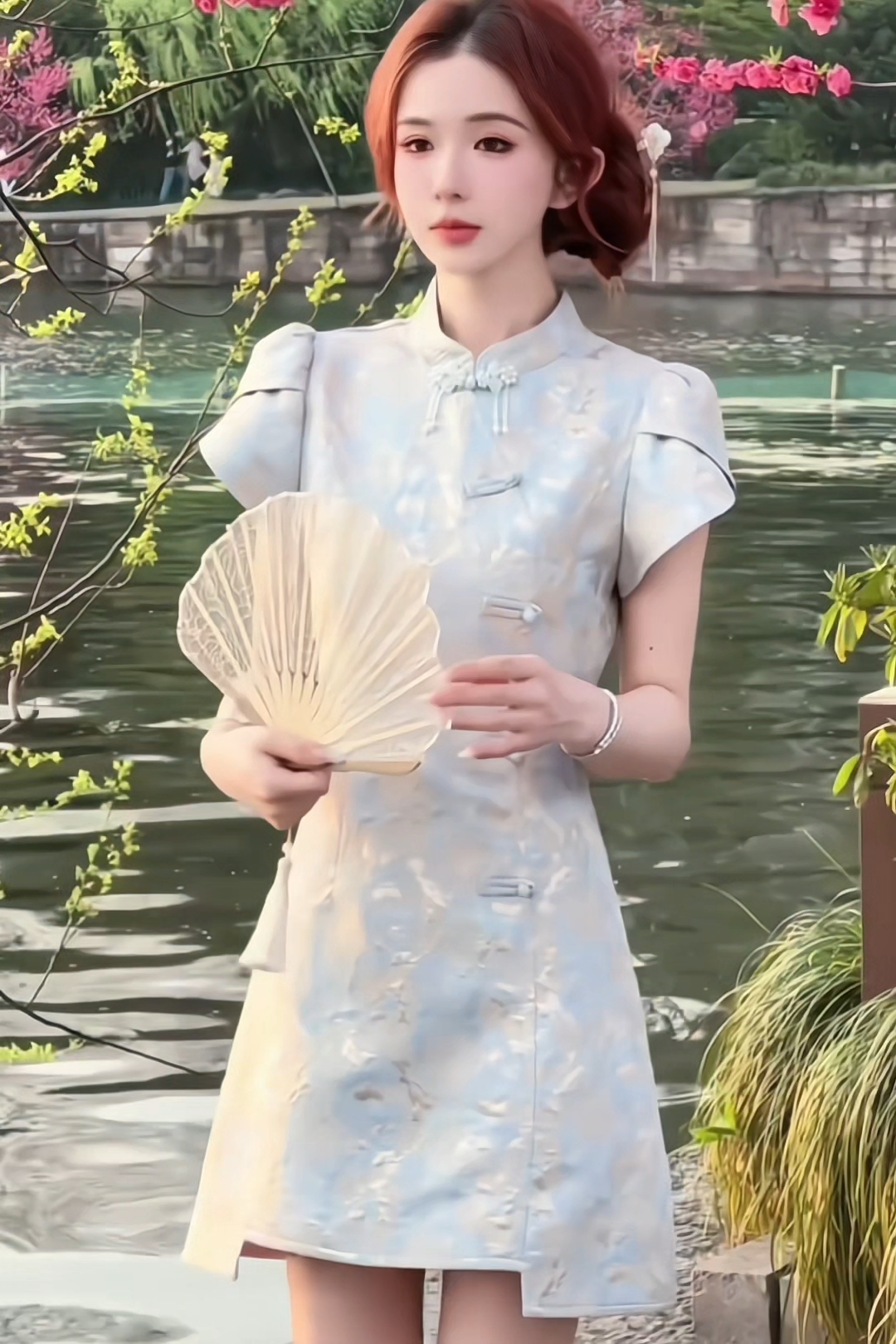 【满庭芳】提花重工盘扣新中式改良旗袍连衣裙