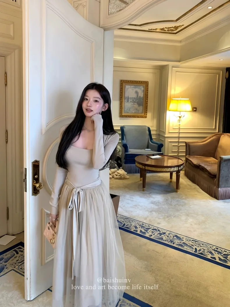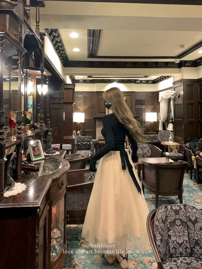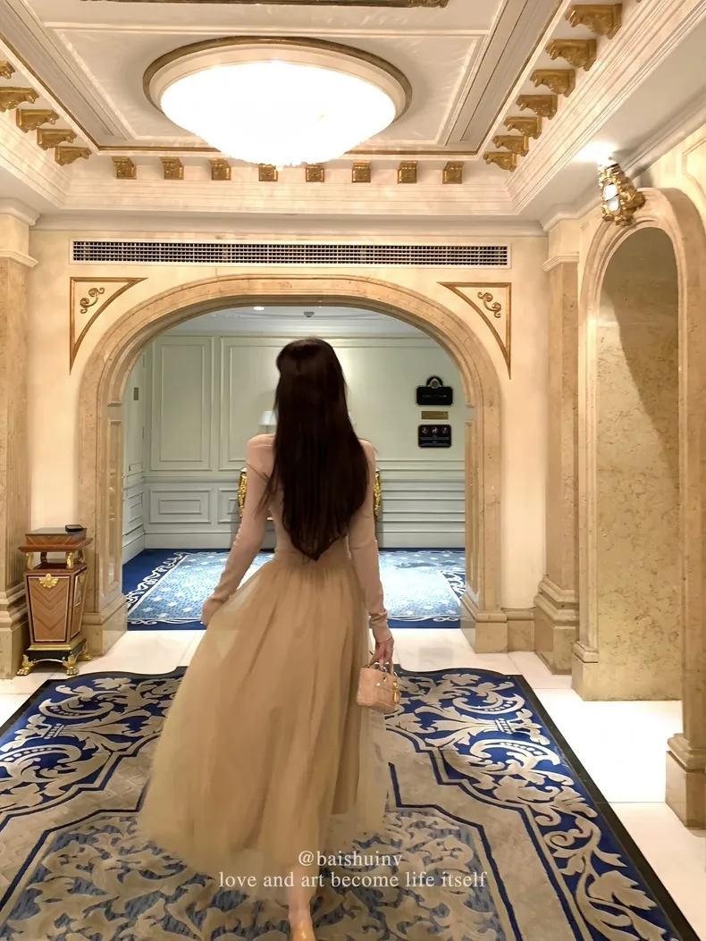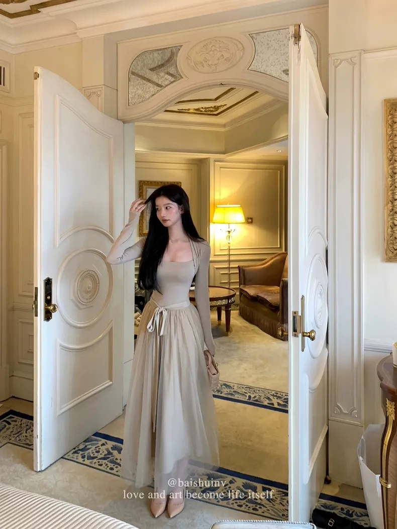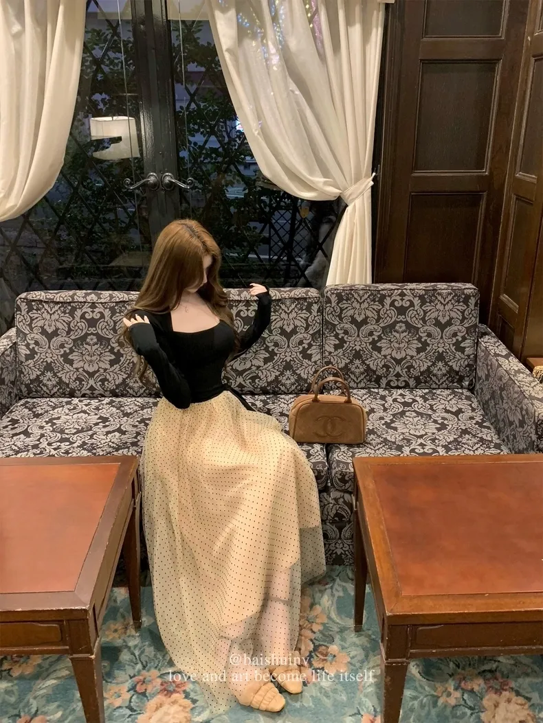 【芭蕾艺术生】坎肩领拼接网纱连衣裙
