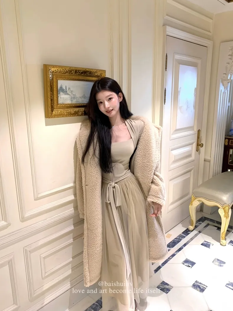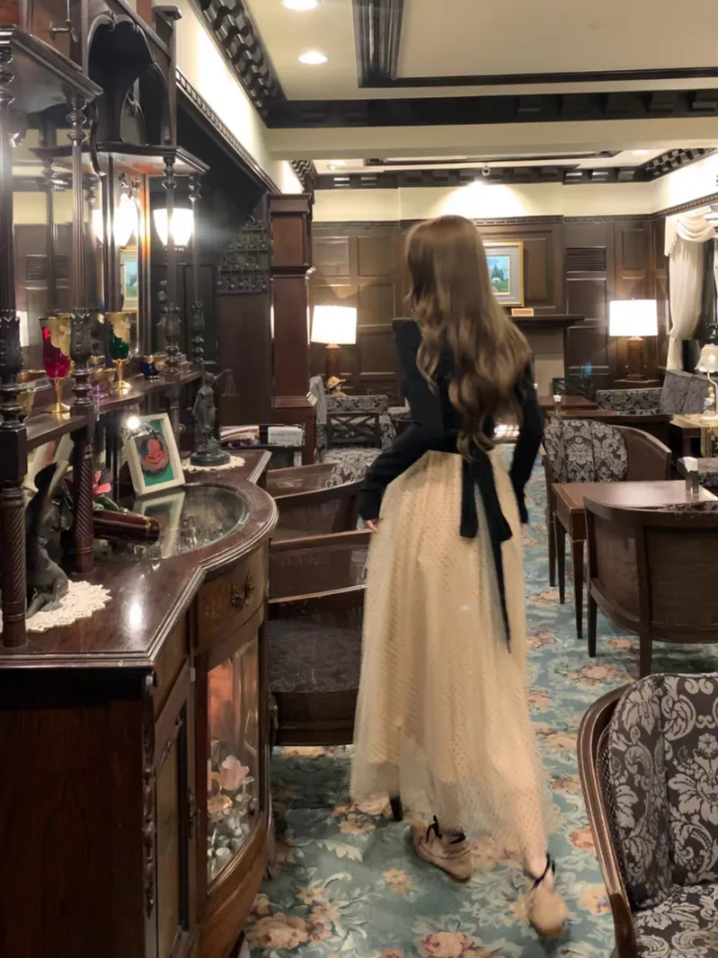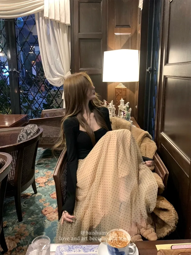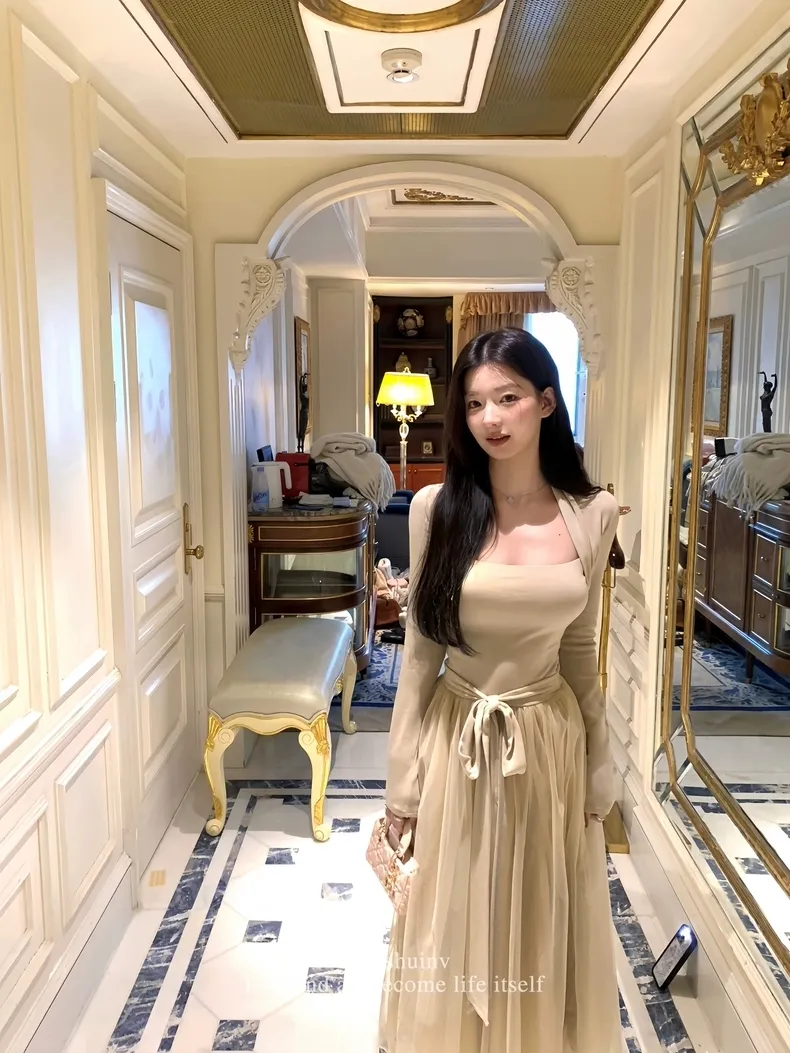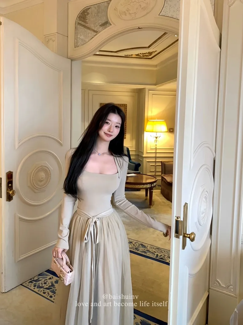 【芭蕾艺术生】坎肩领拼接网纱连衣裙