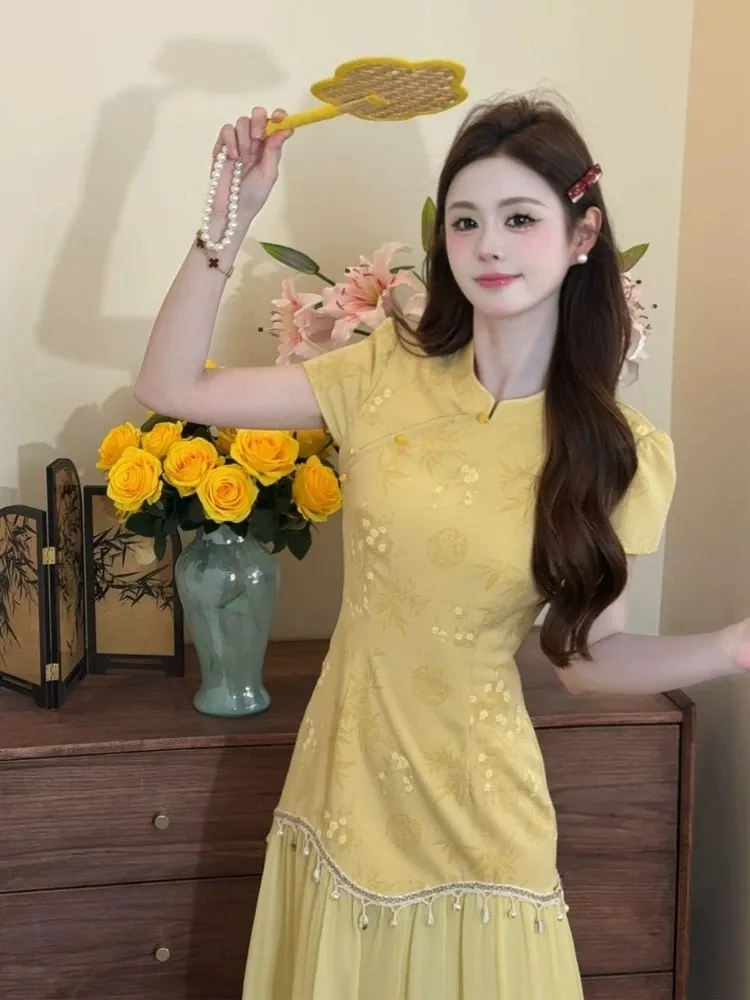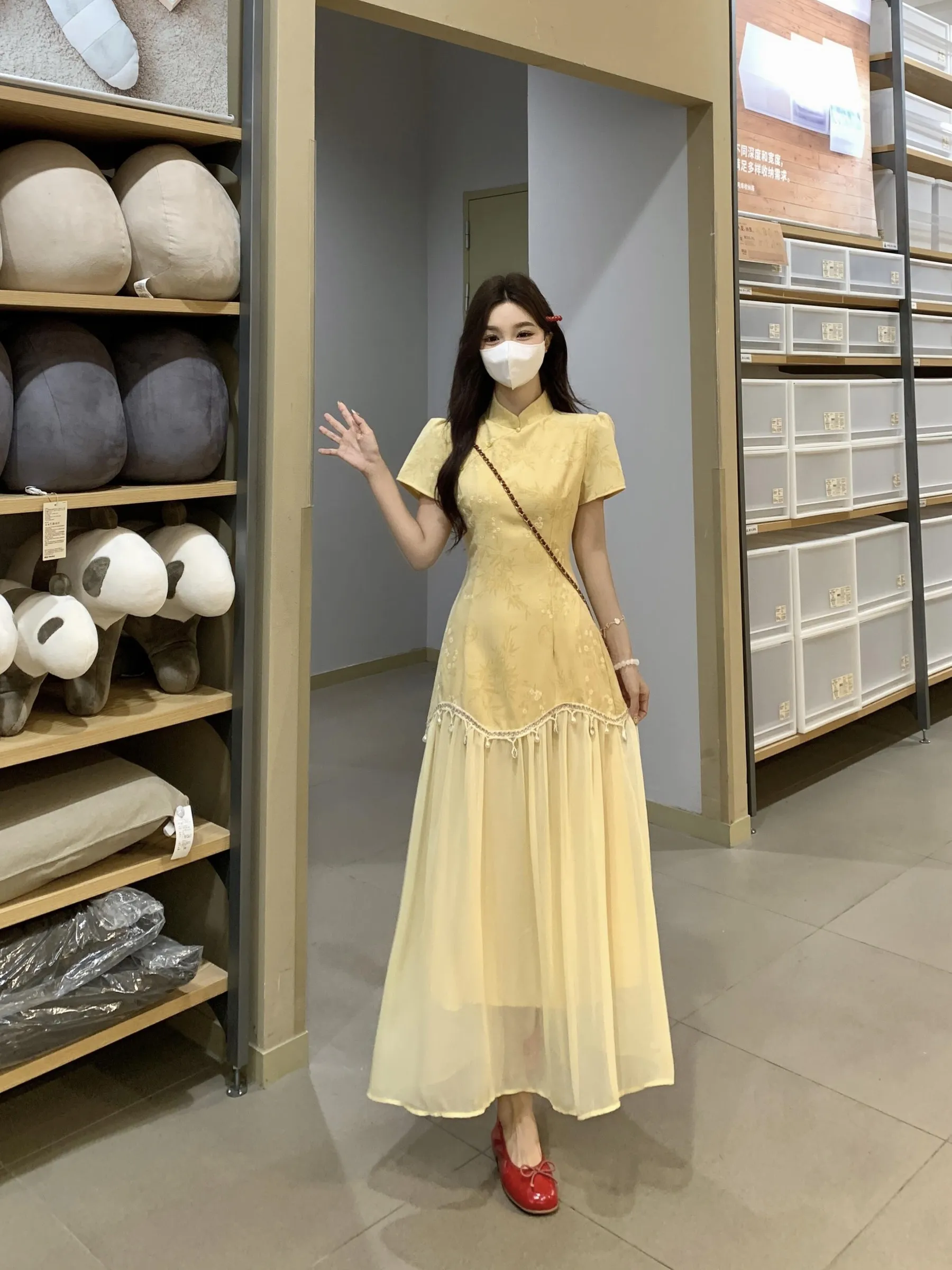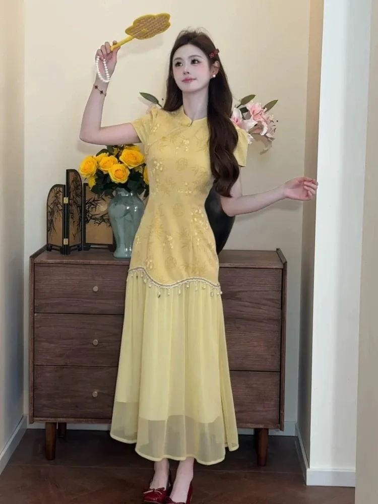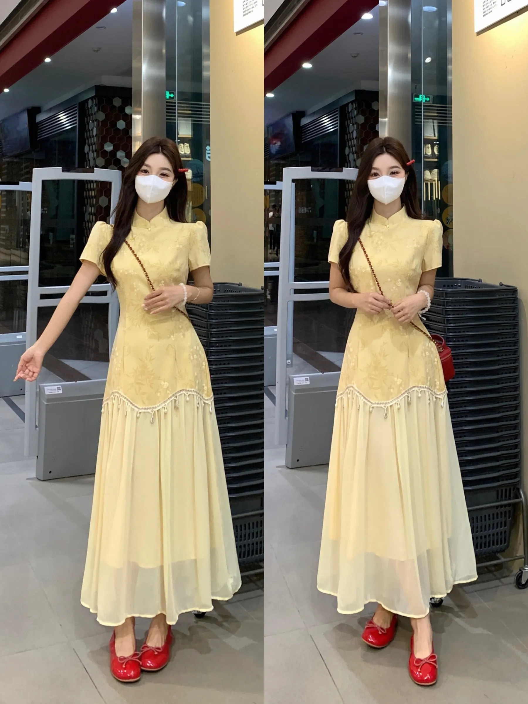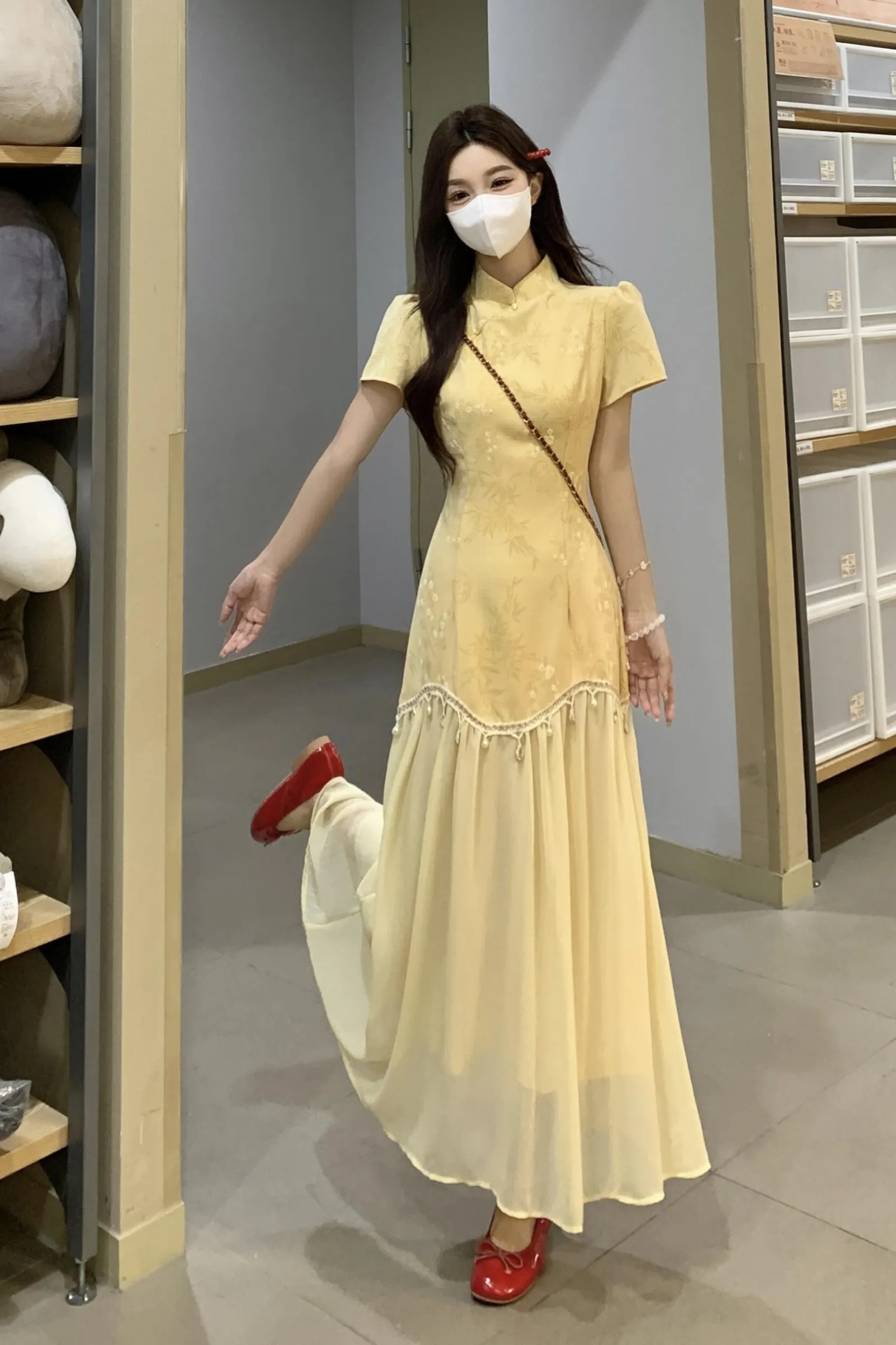【书梨辞】假两件新中式改良旗袍雪纺流苏连衣裙