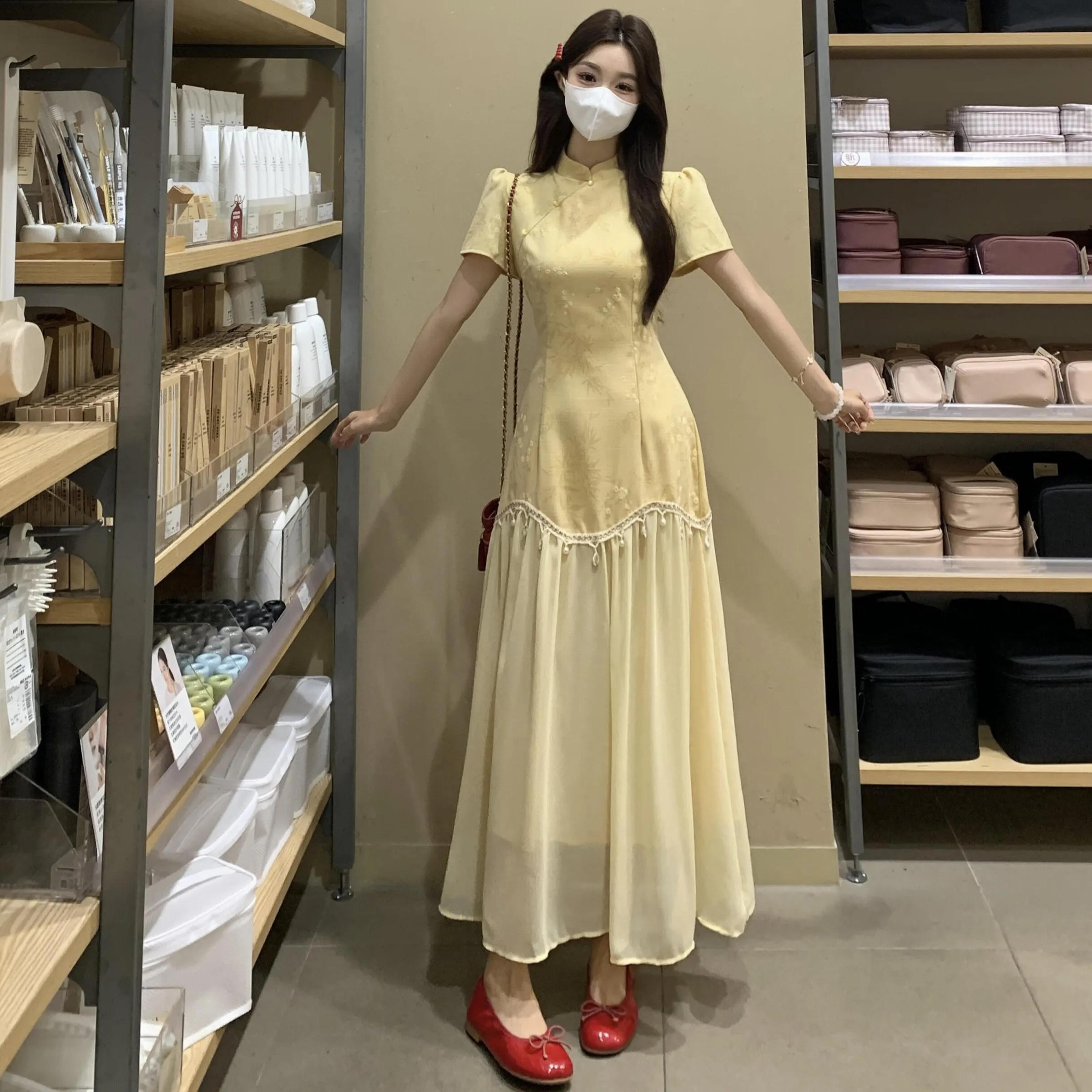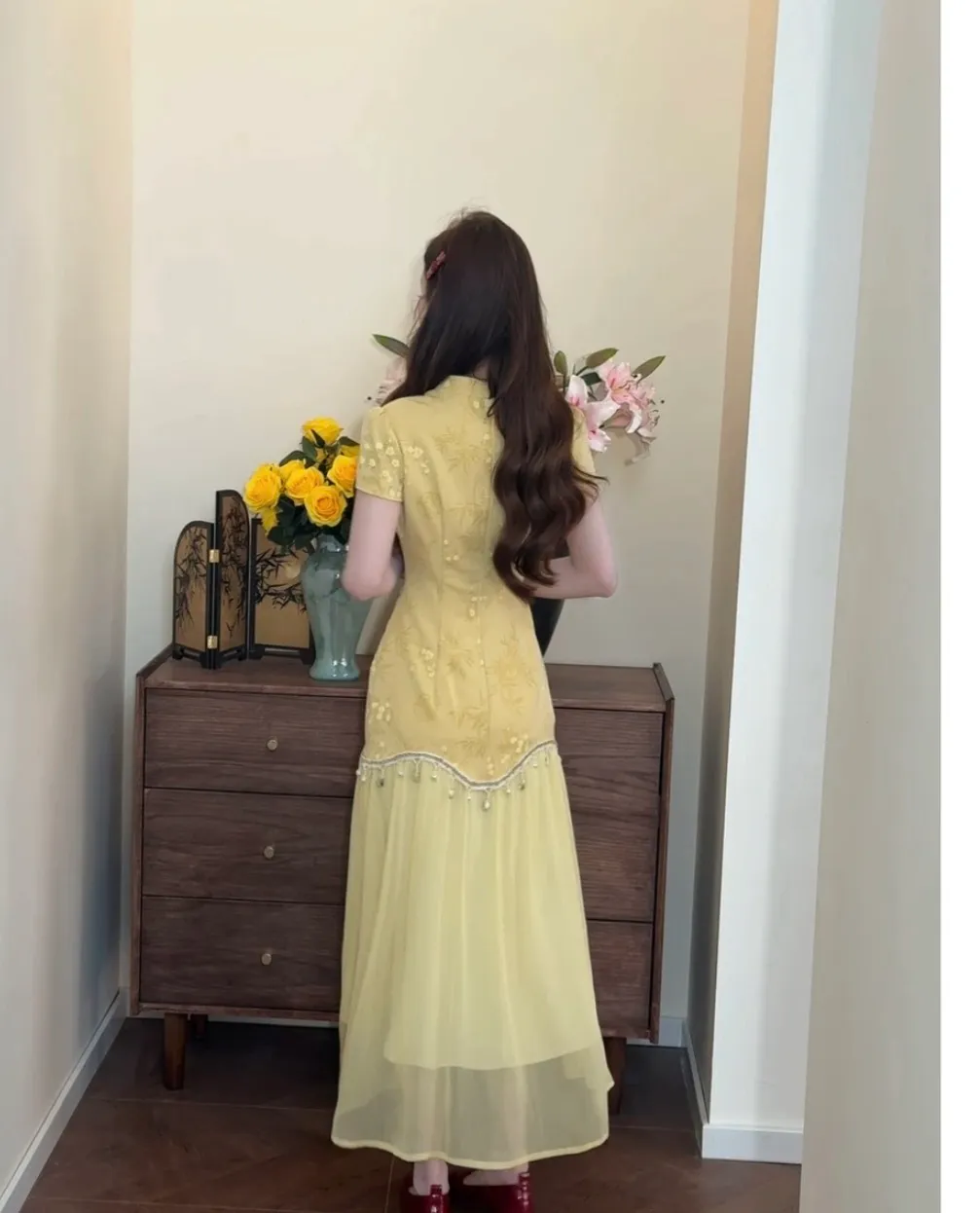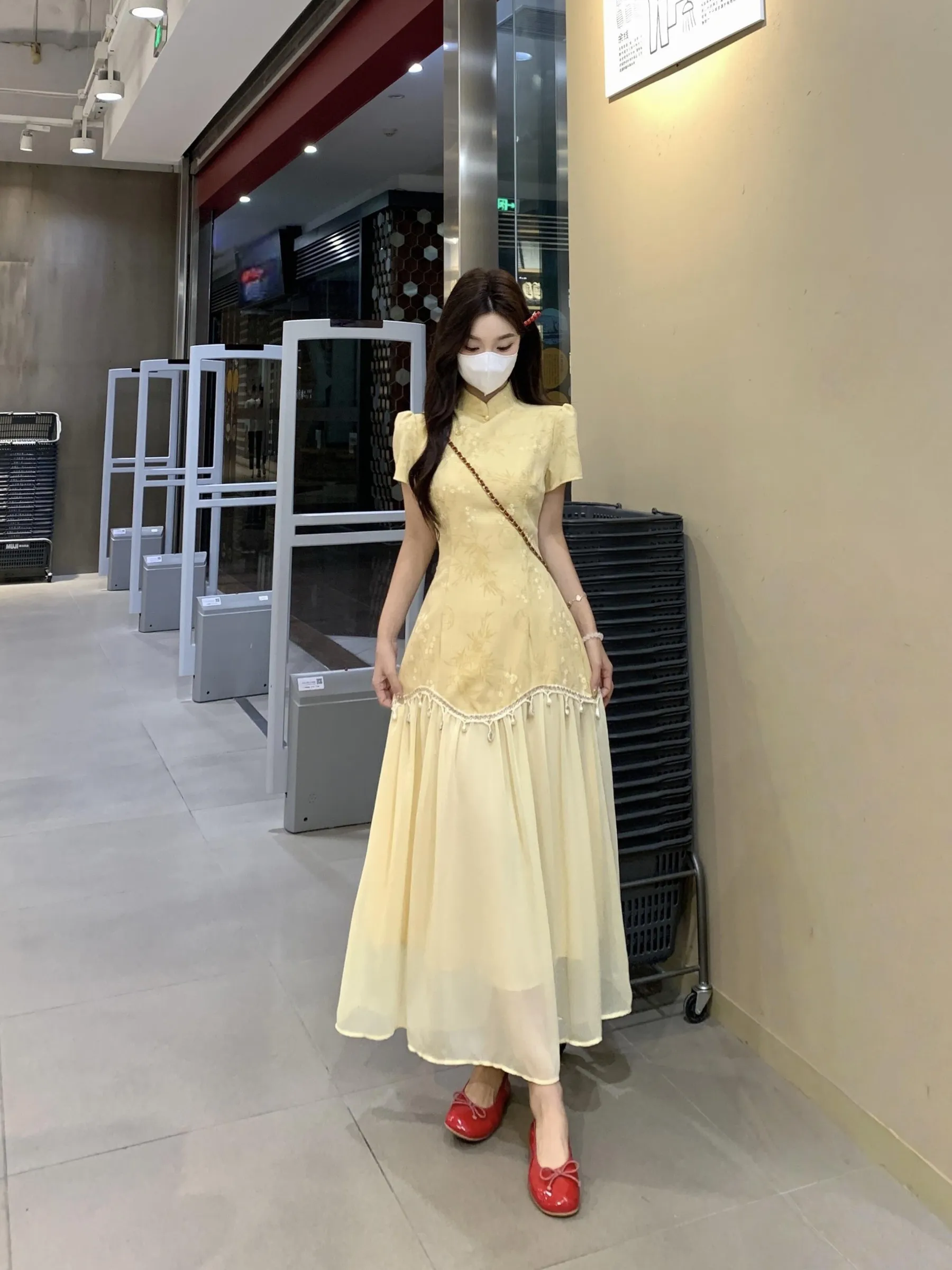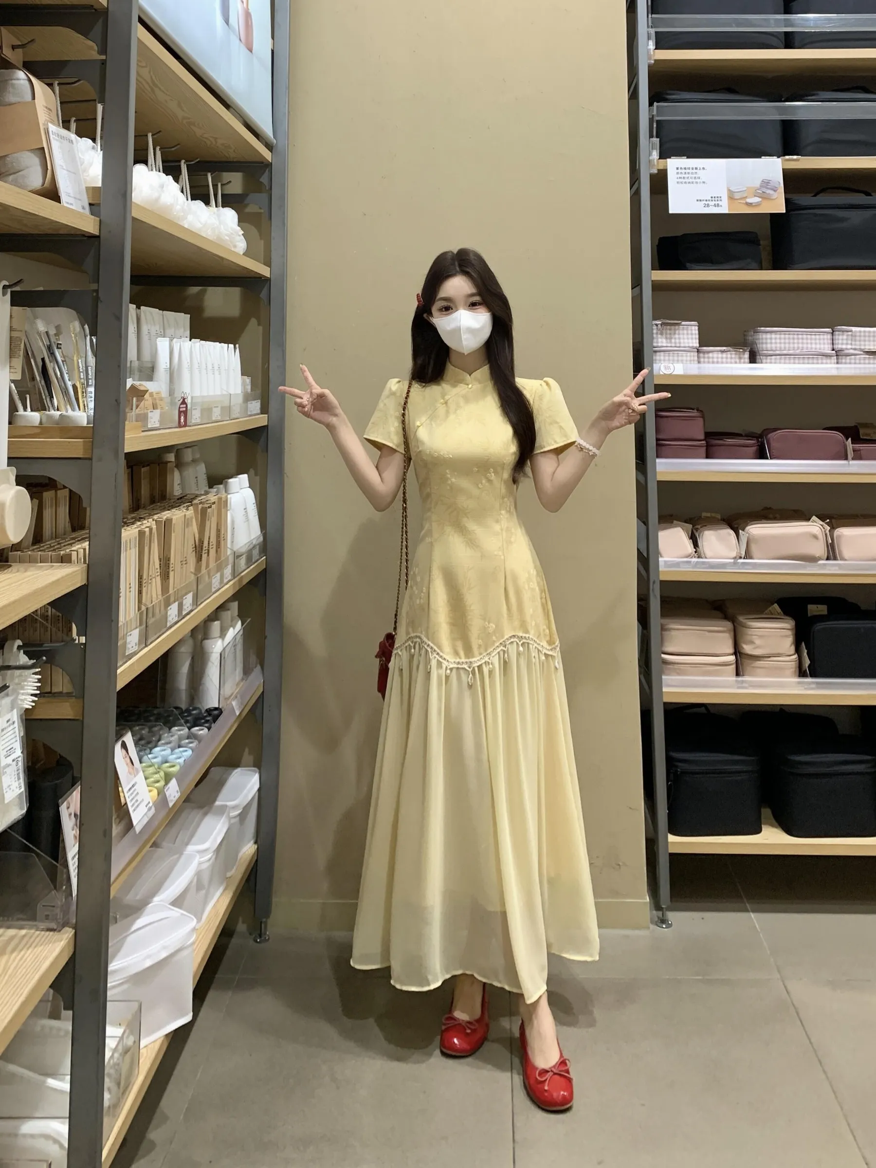 【书梨辞】假两件新中式改良旗袍雪纺流苏连衣裙