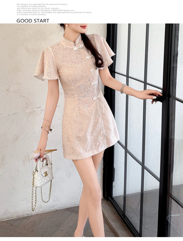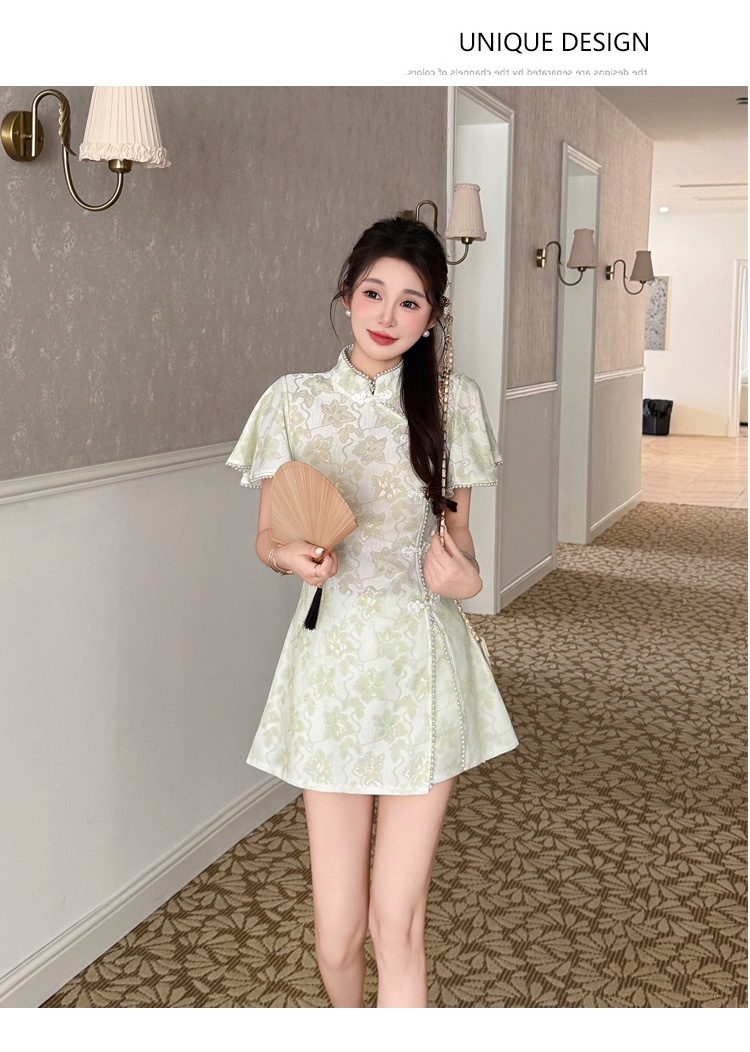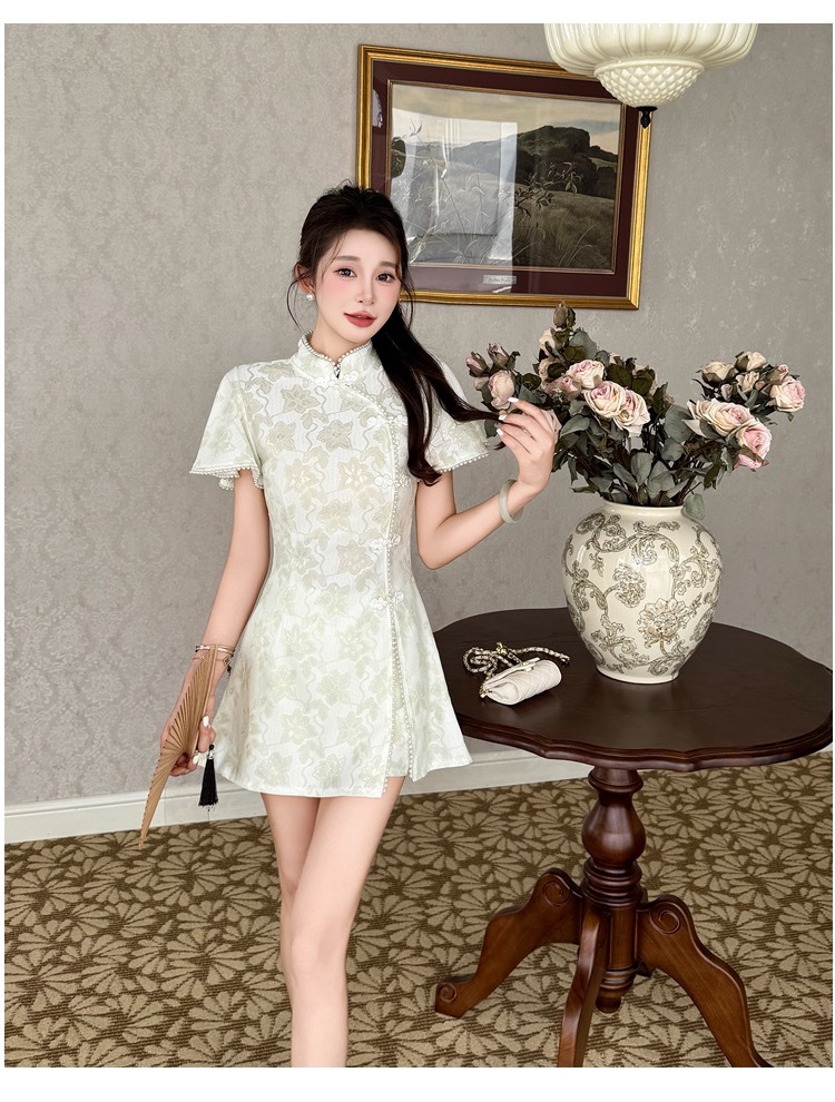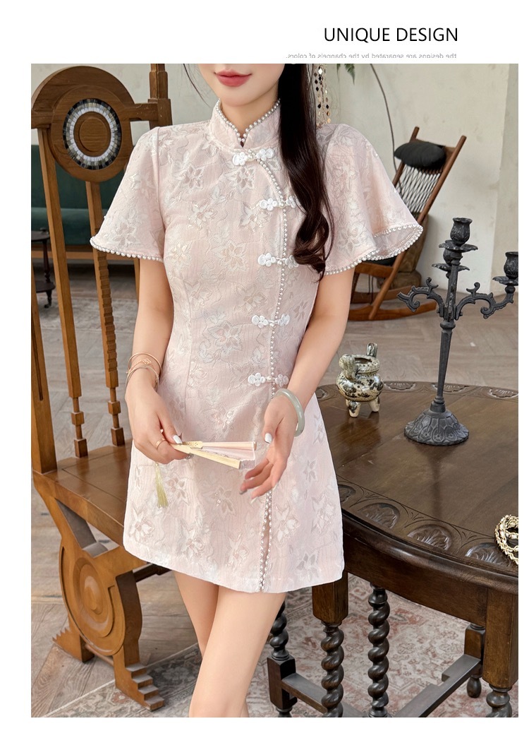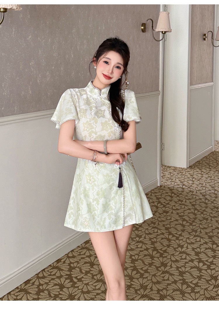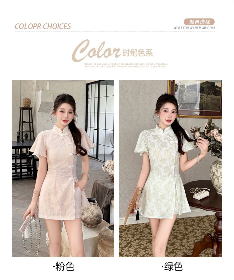 【红尘锦梦】提花立领盘扣开叉上衣+短裤两件套