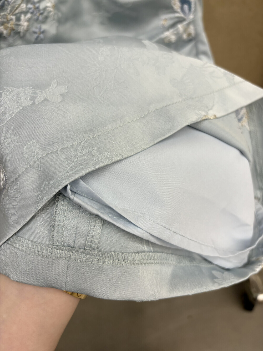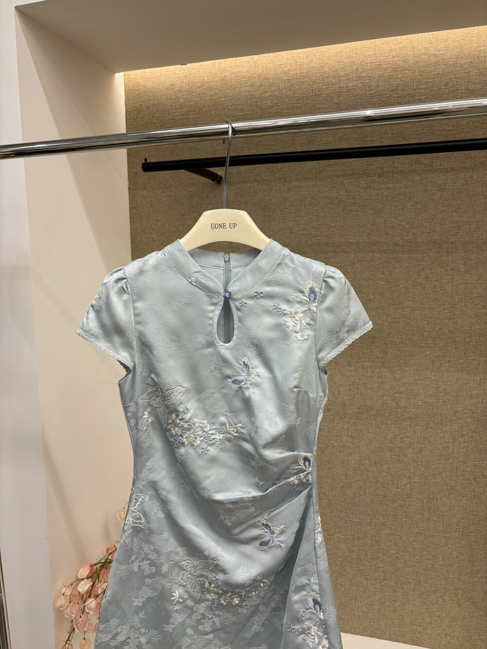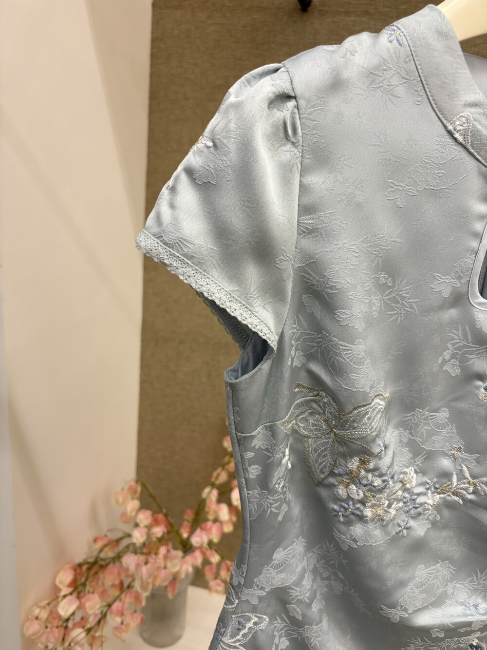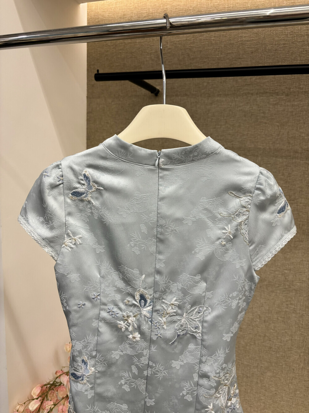 【蝶舞流芳】新中式立领重工蝴蝶刺绣提花A字短裙