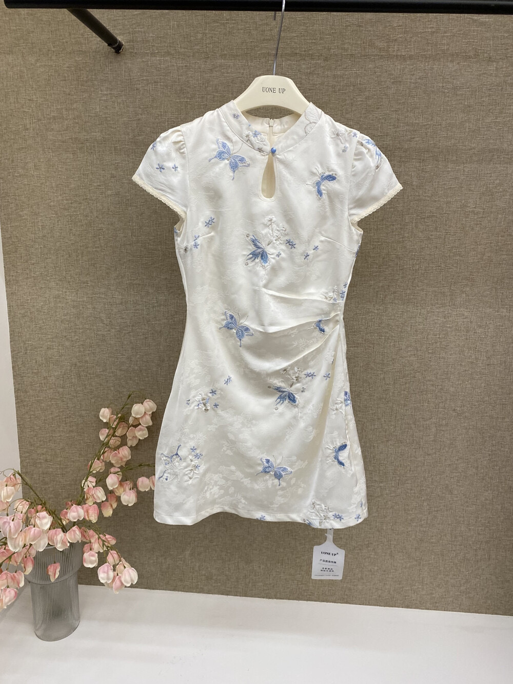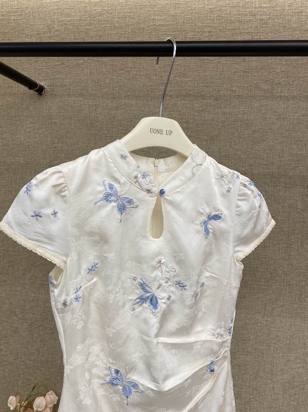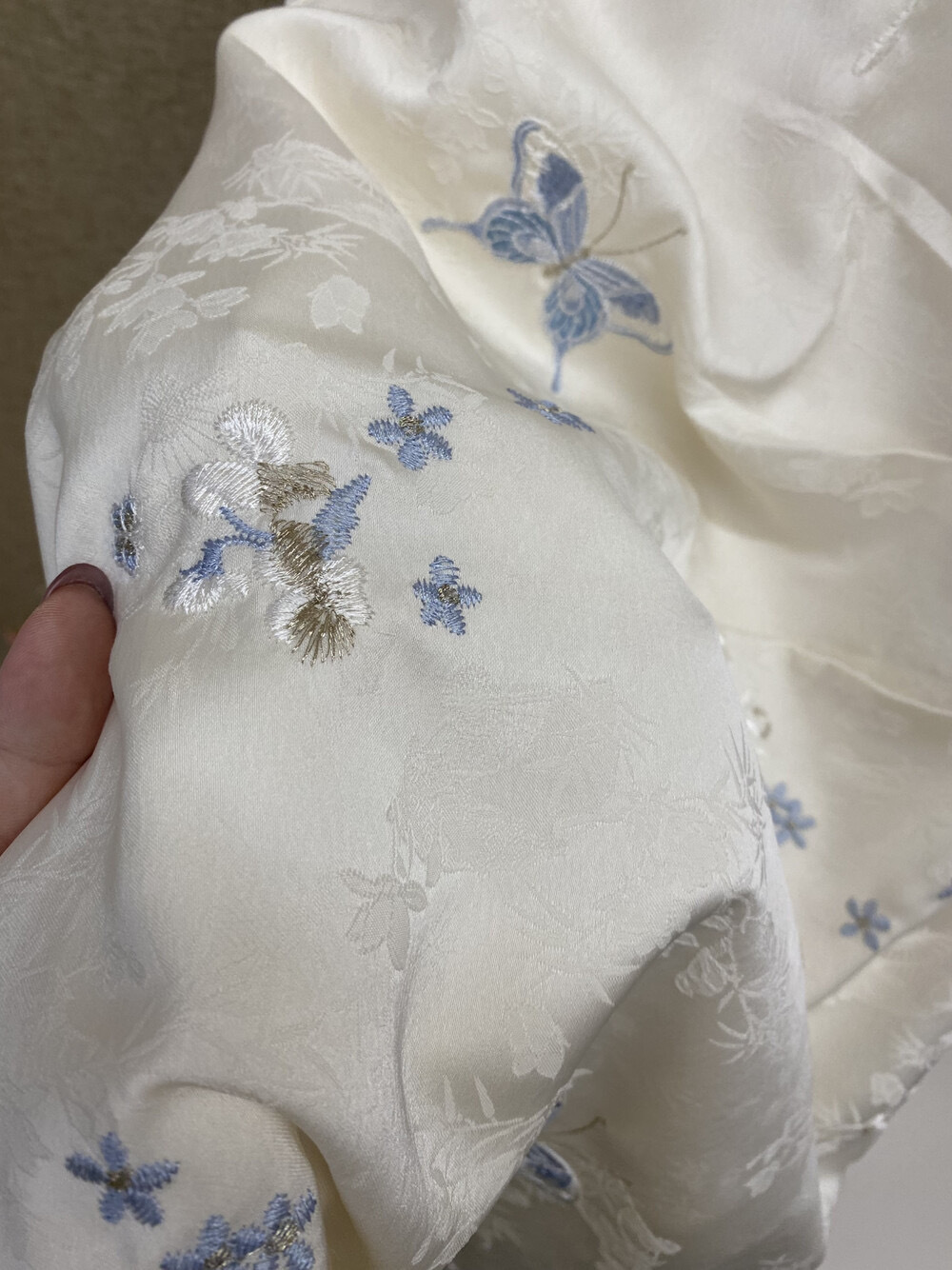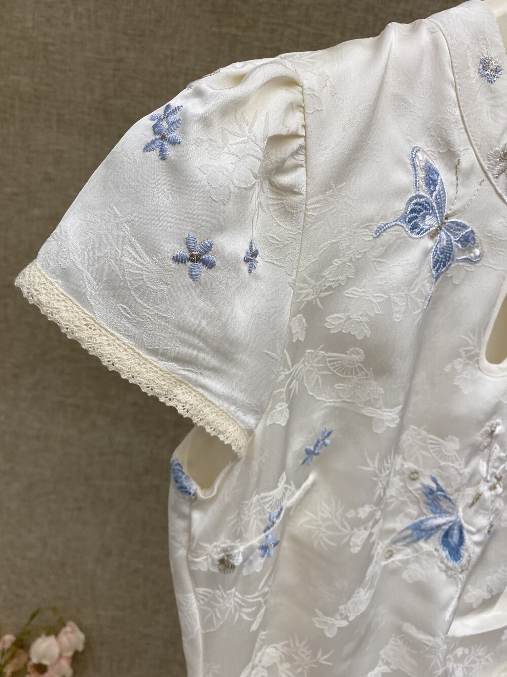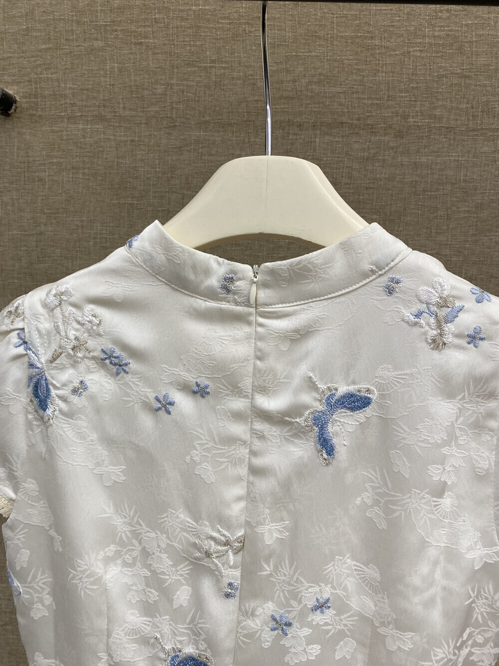 【月光佳人】新中式立领重工蝴蝶刺绣提花A字短裙