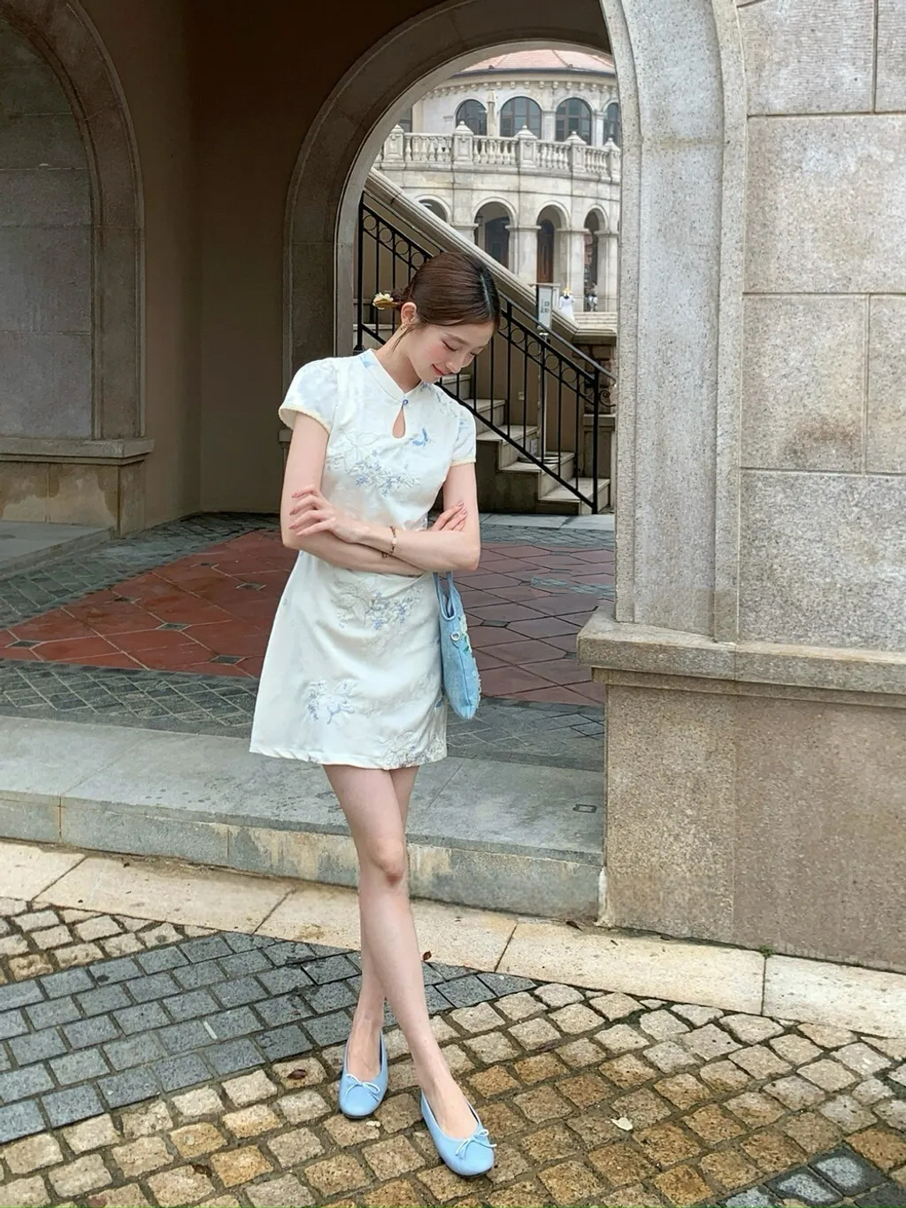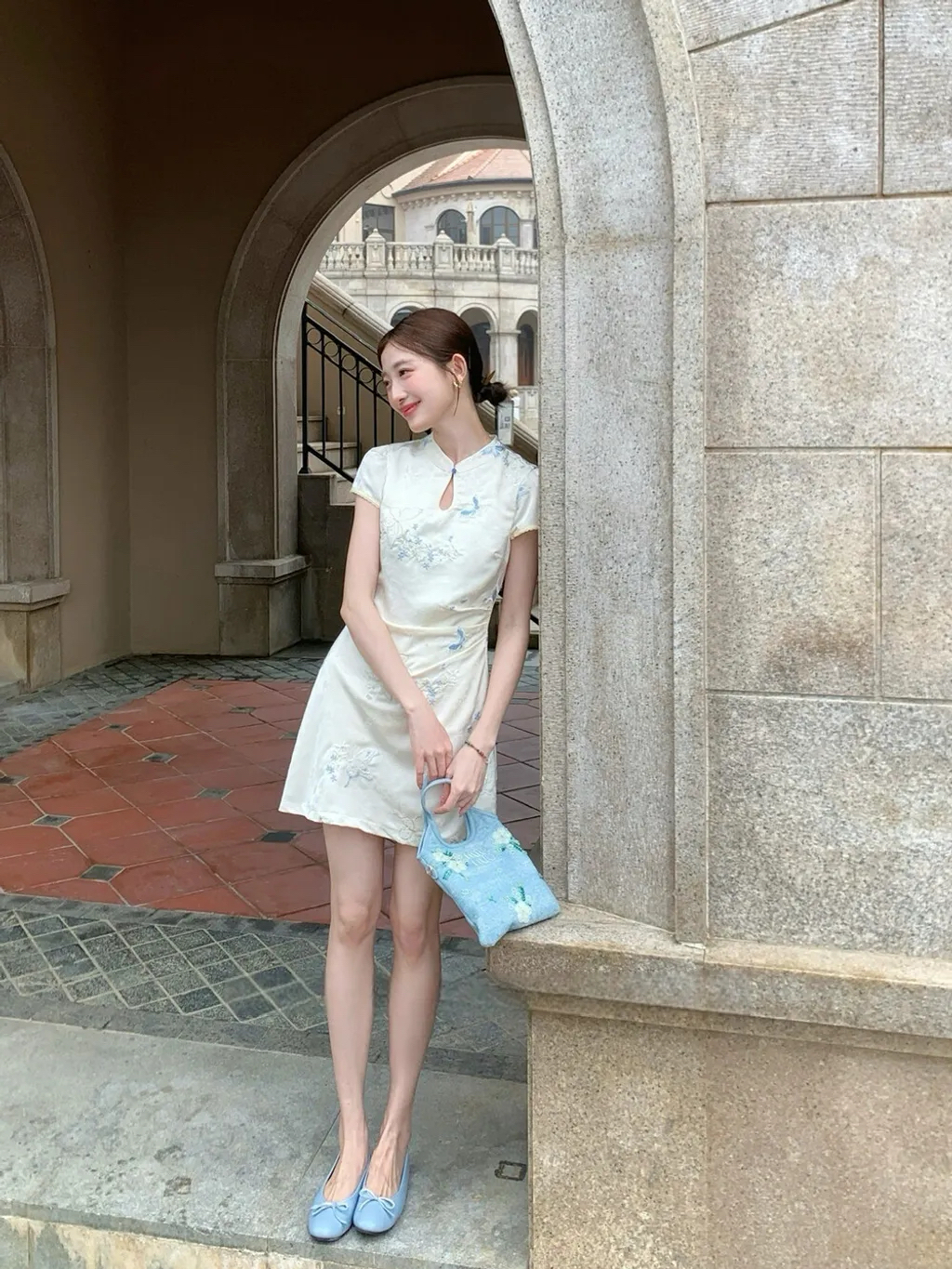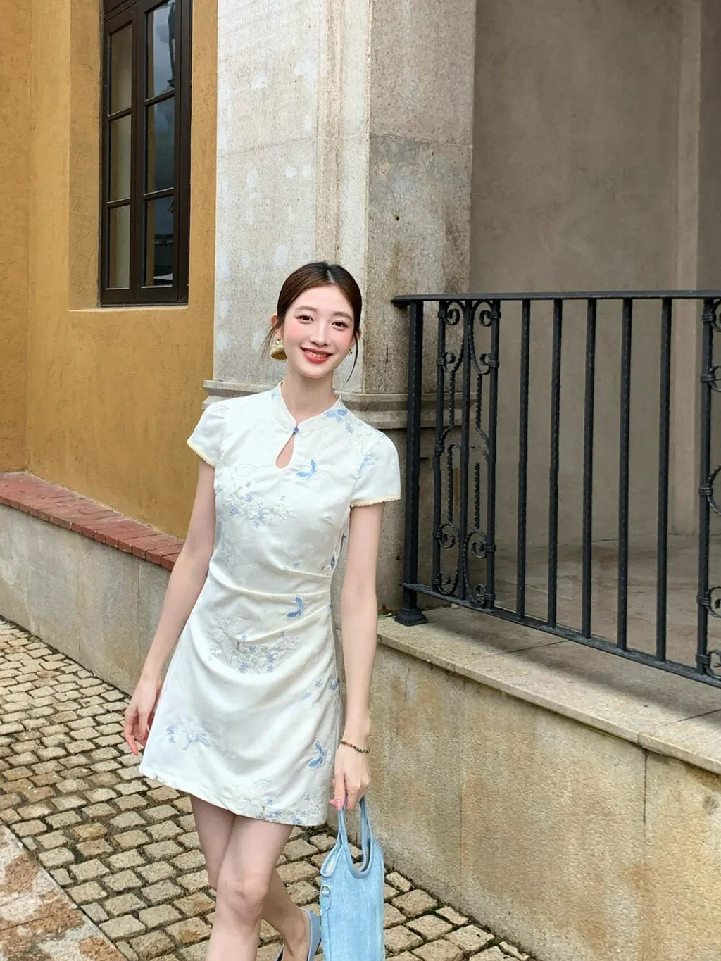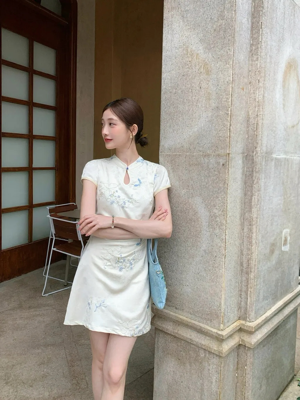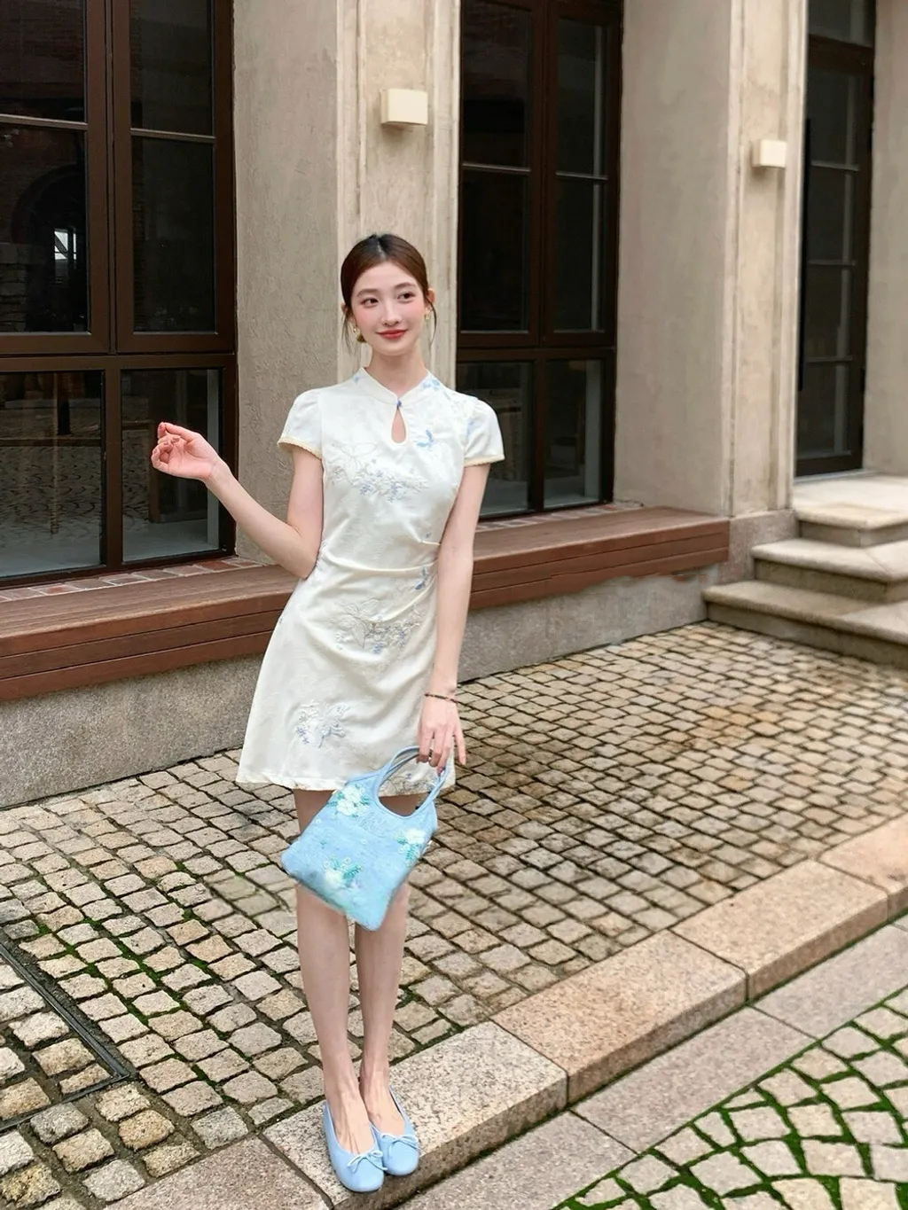 【月光佳人】新中式立领重工蝴蝶刺绣提花A字短裙