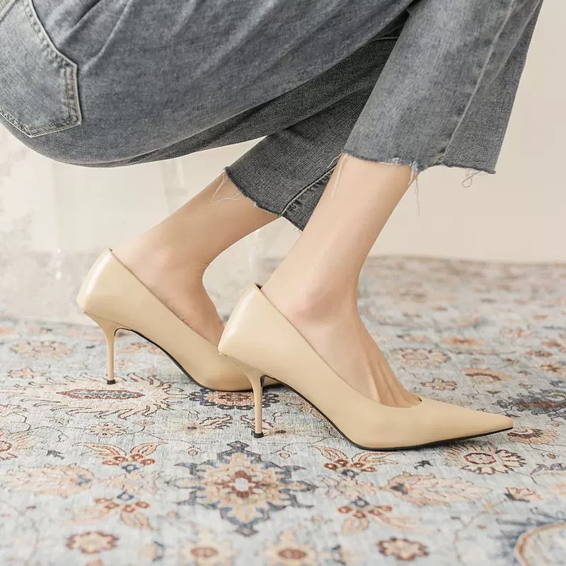 高跟鞋女2023年新款绿色细跟尖头浅口时装鞋设计感OL职业通勤单鞋