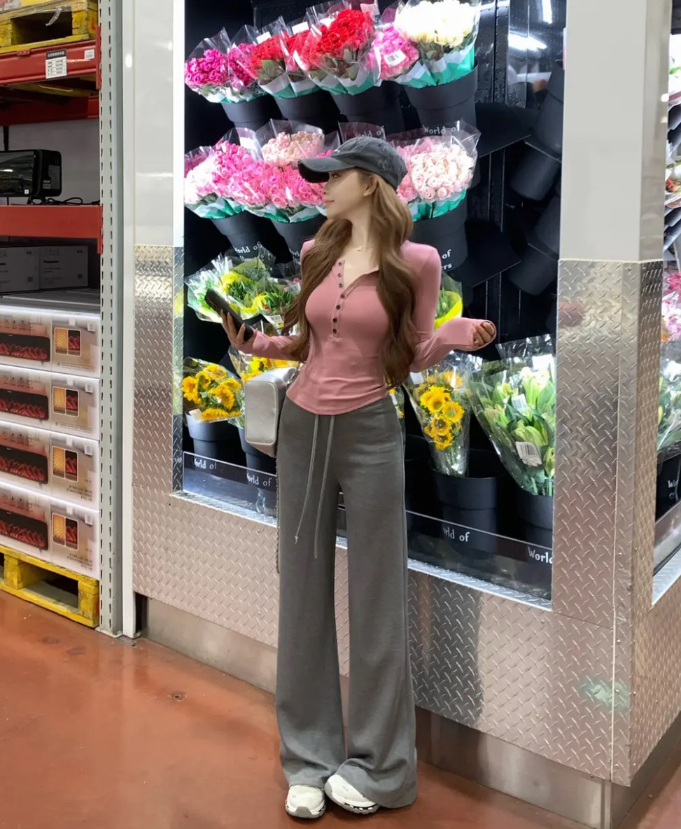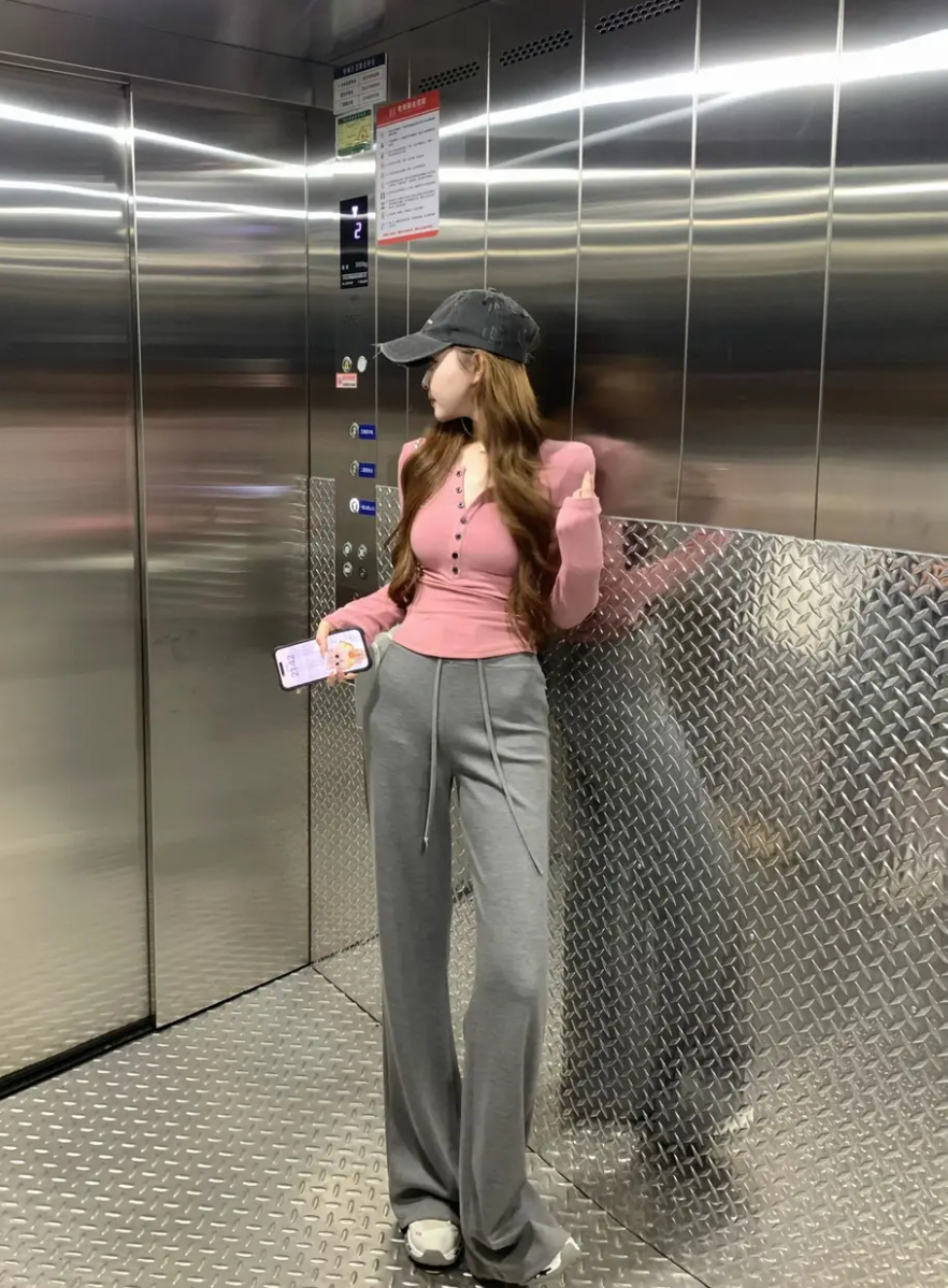 【长腿担当】慵懒风休闲松紧腰抽绳显瘦直筒裤