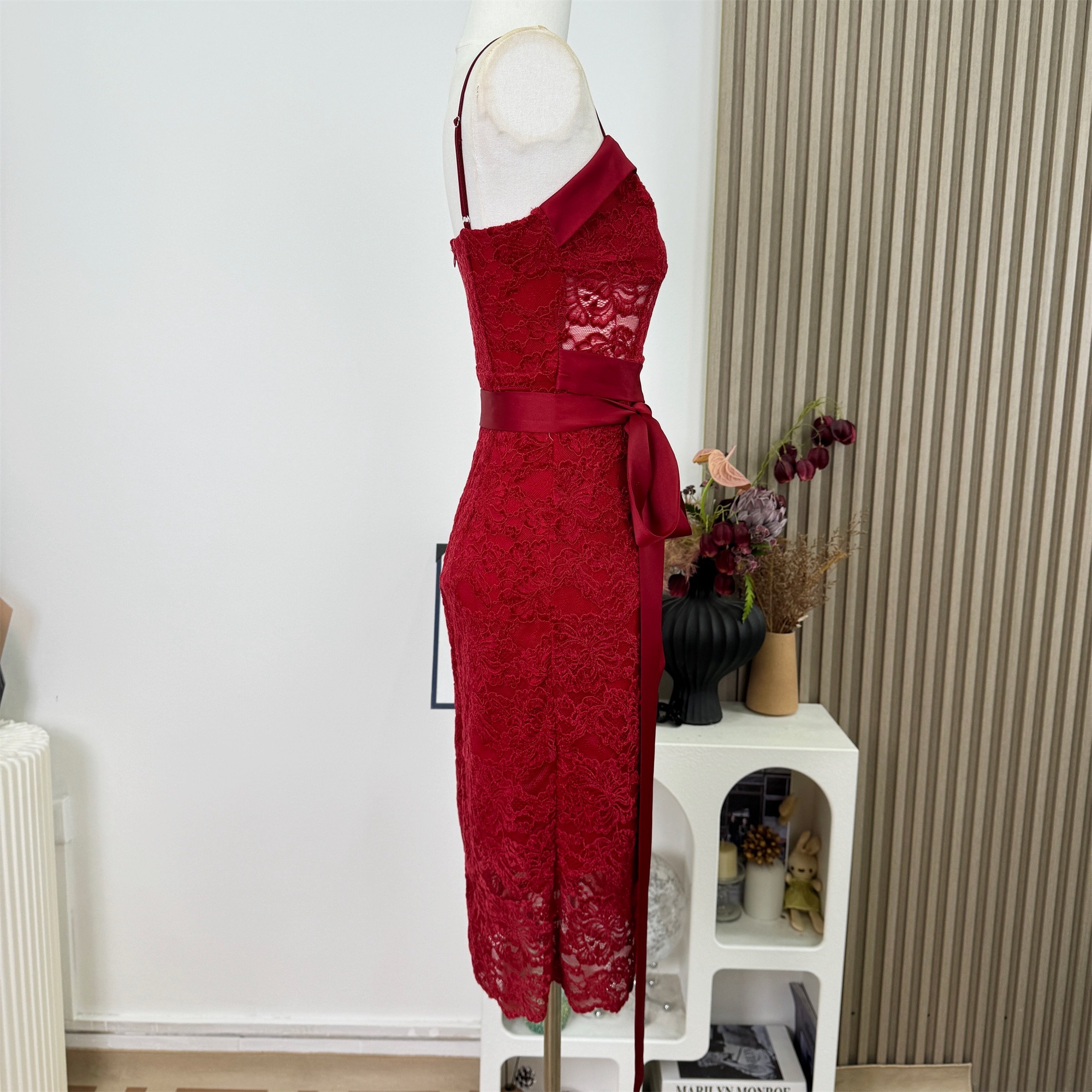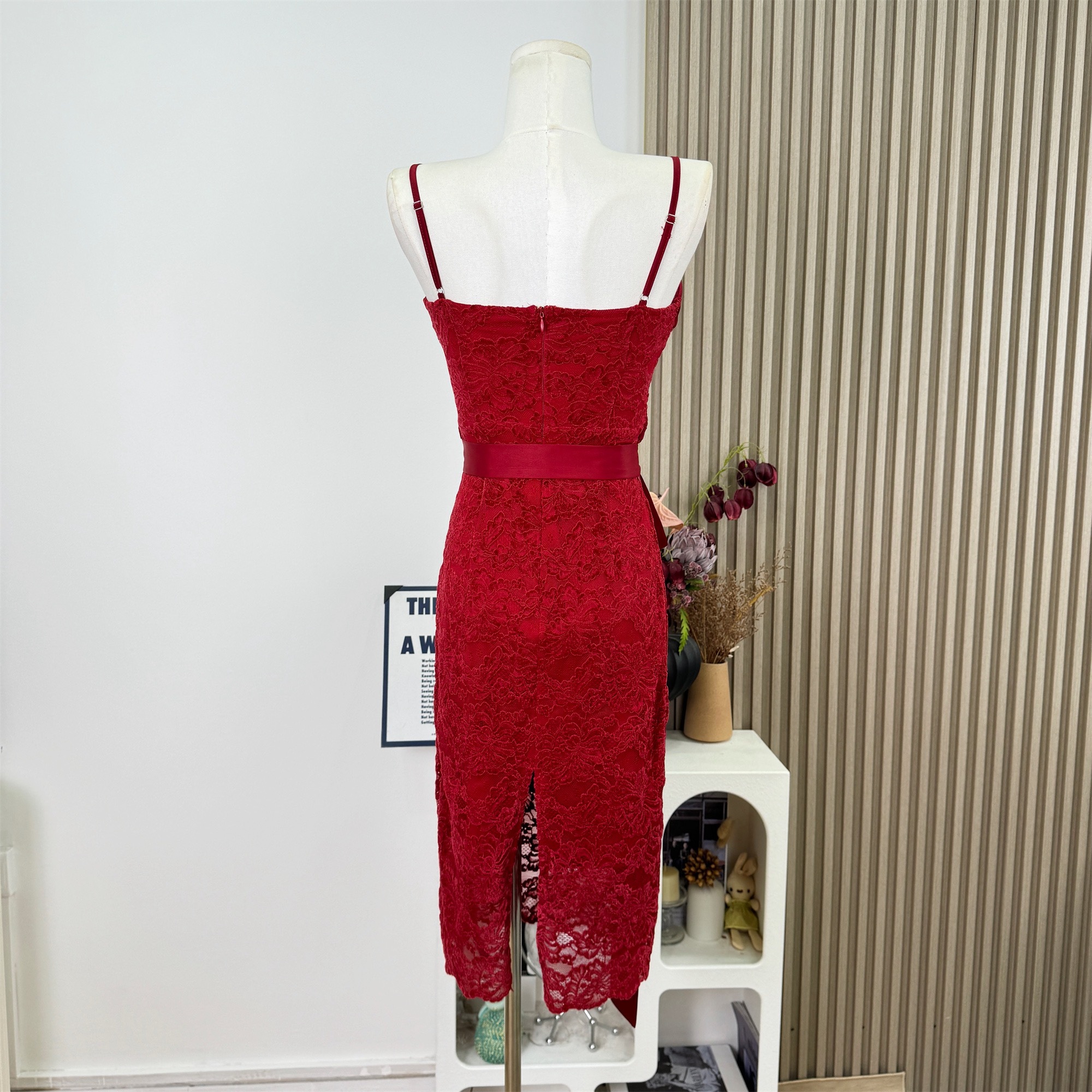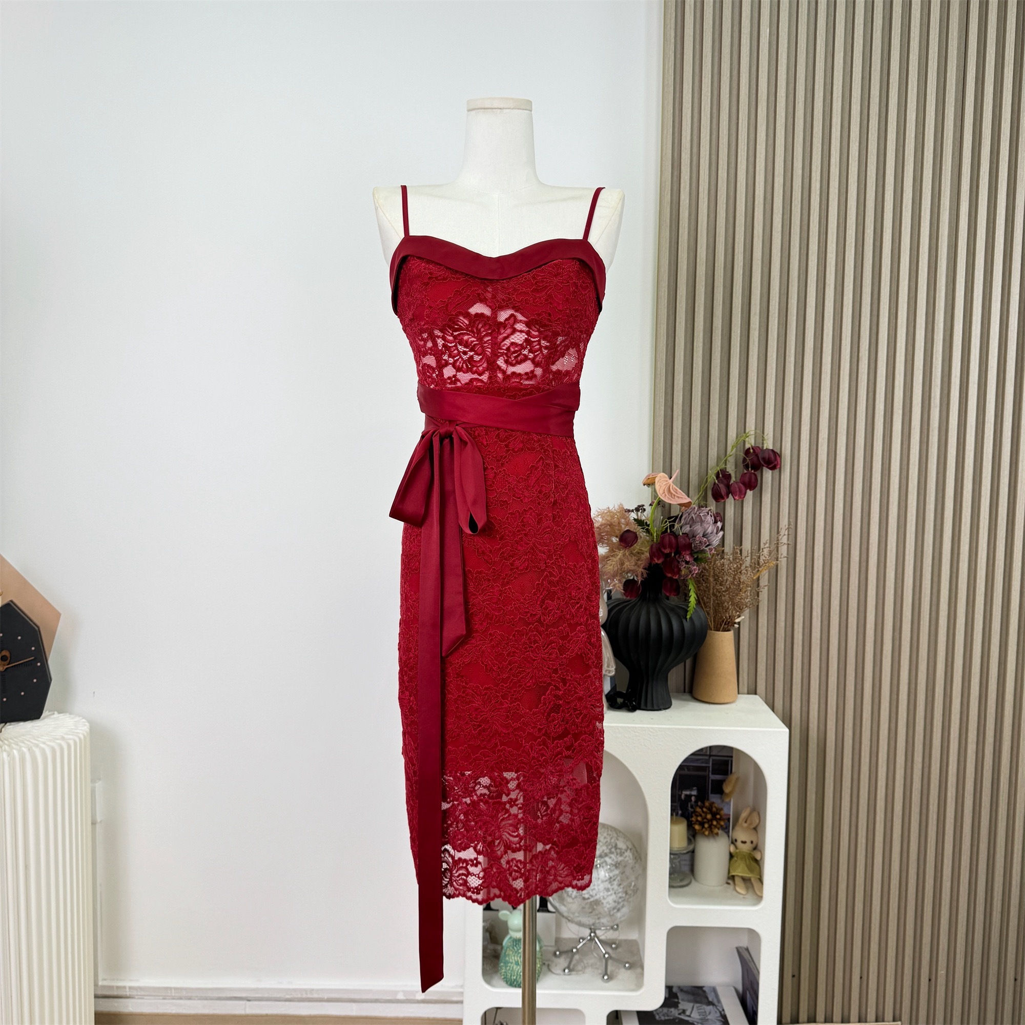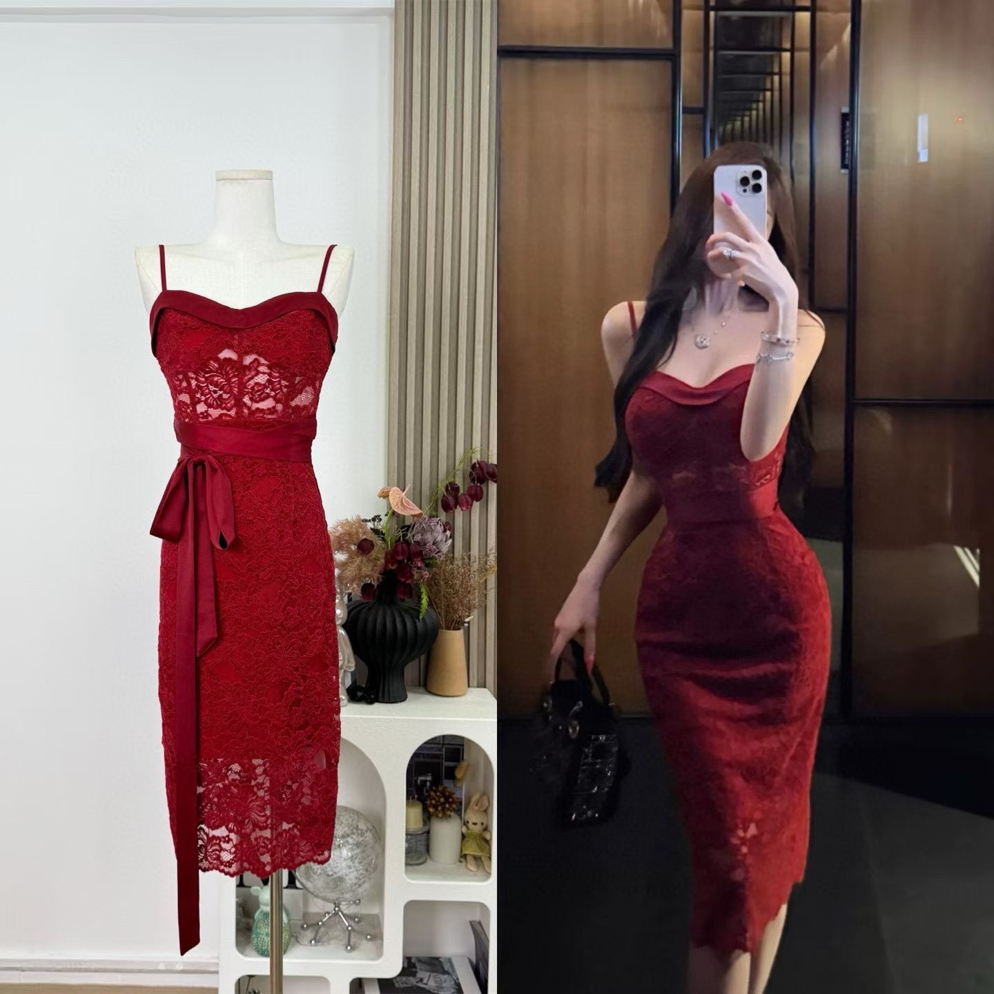 【 红玫瑰】女人味红色蕾丝性感纯欲吊带连衣长裙