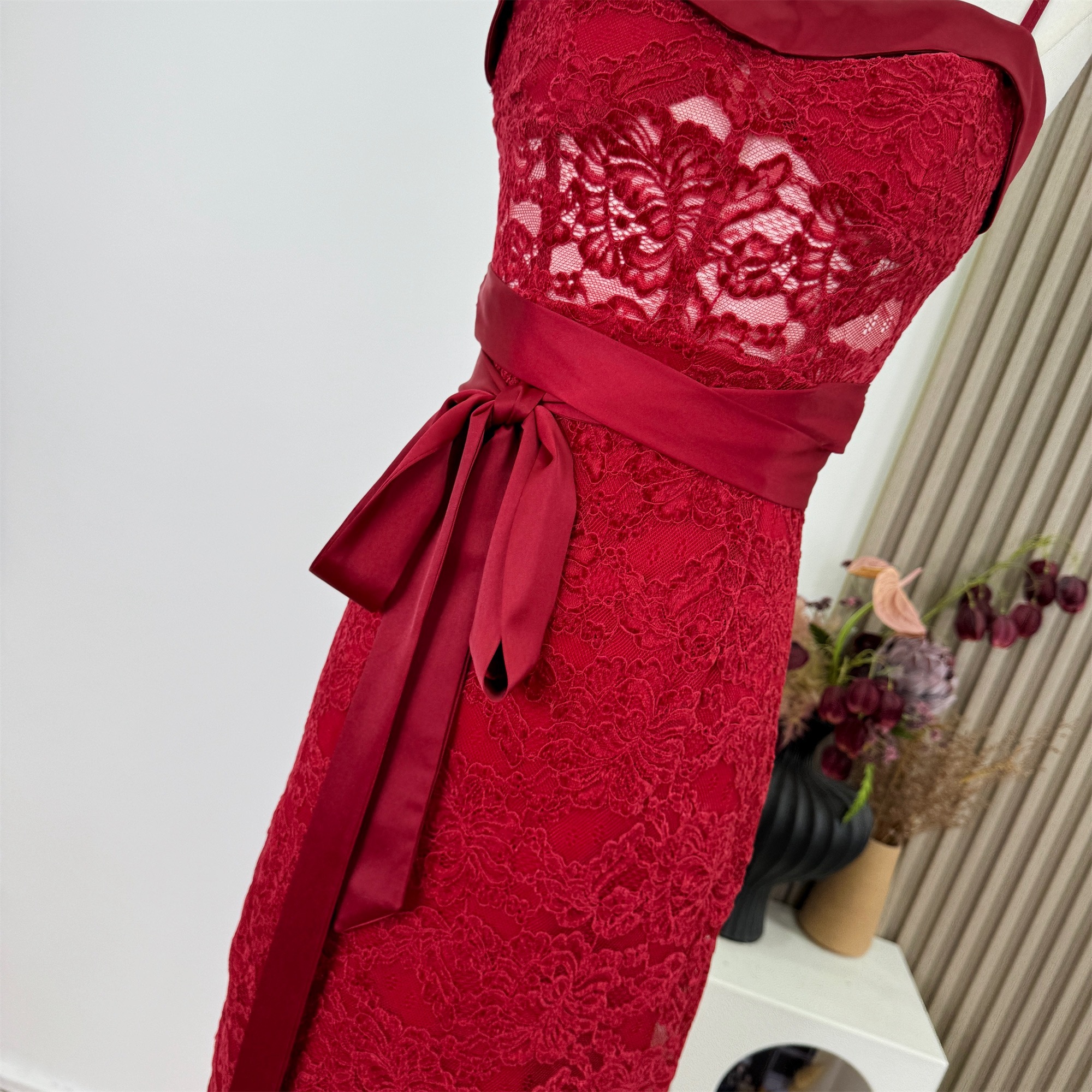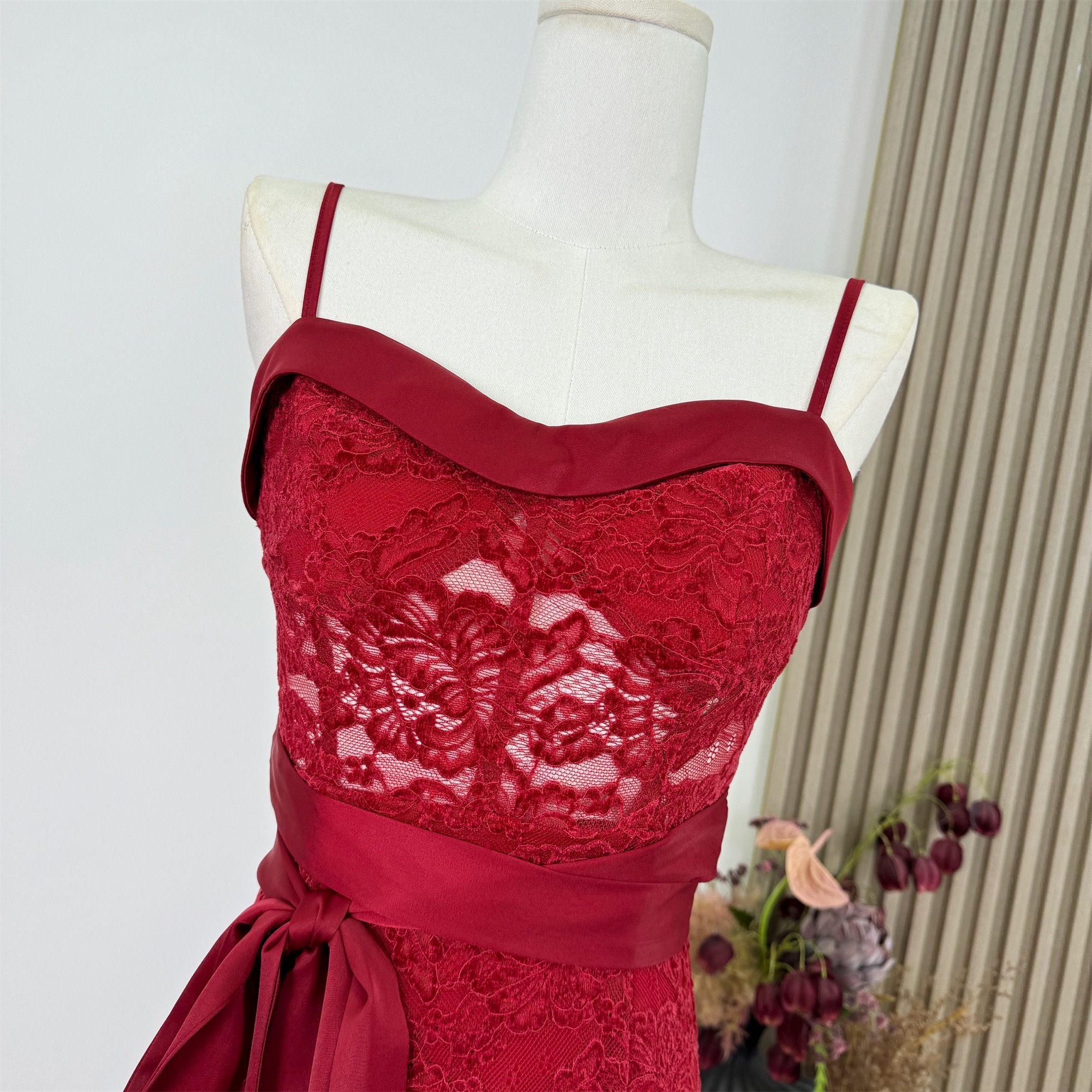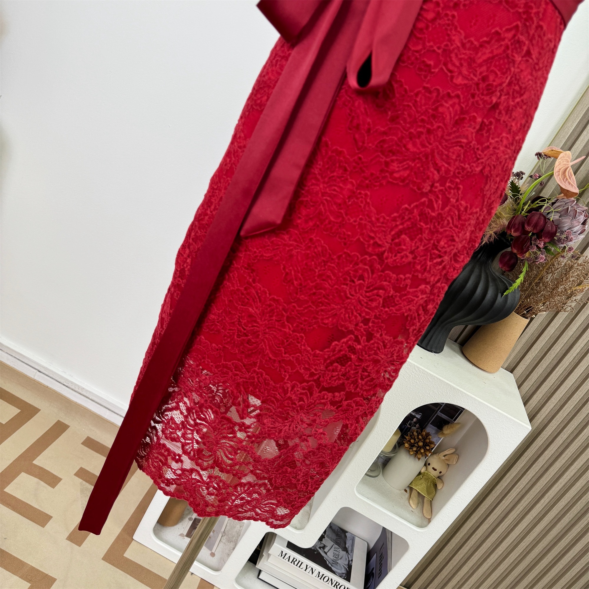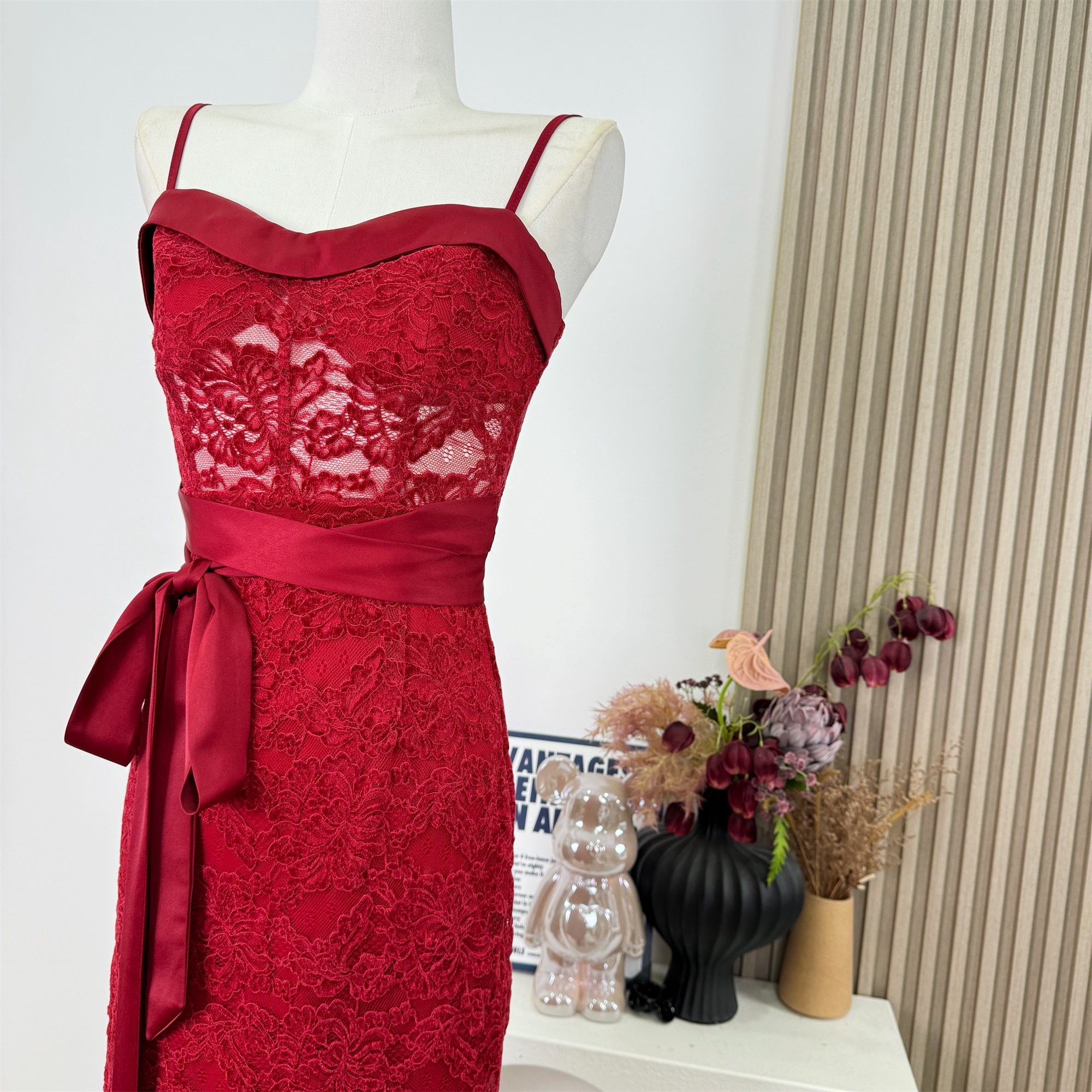 【 红玫瑰】女人味红色蕾丝性感纯欲吊带连衣长裙