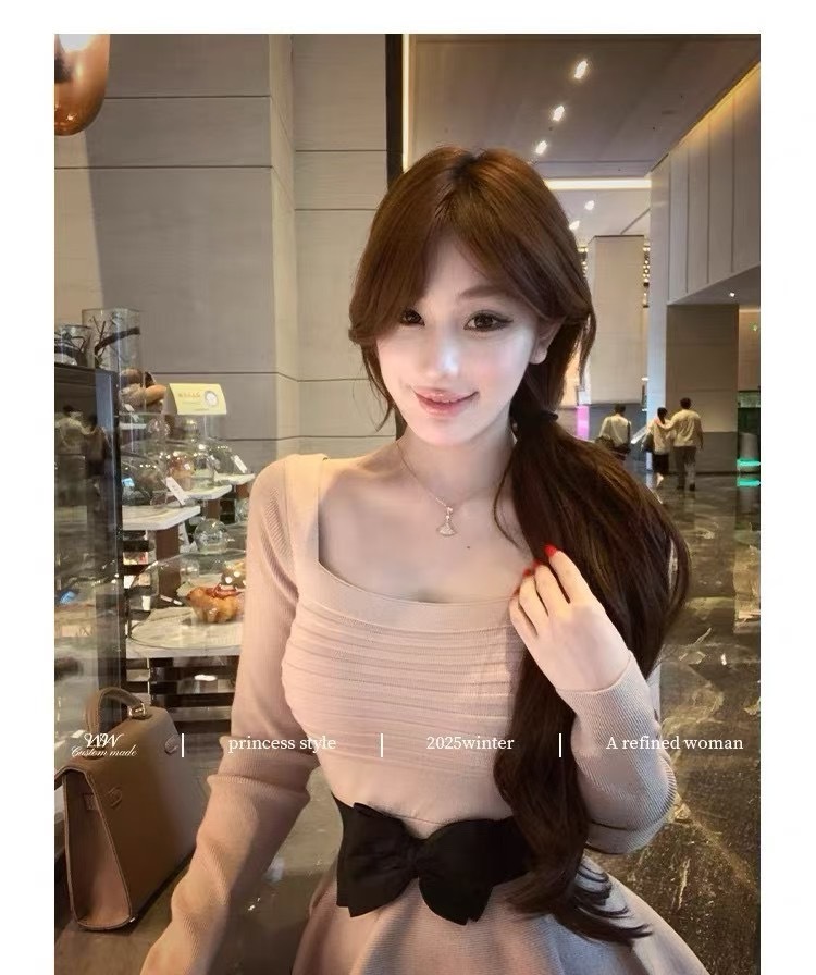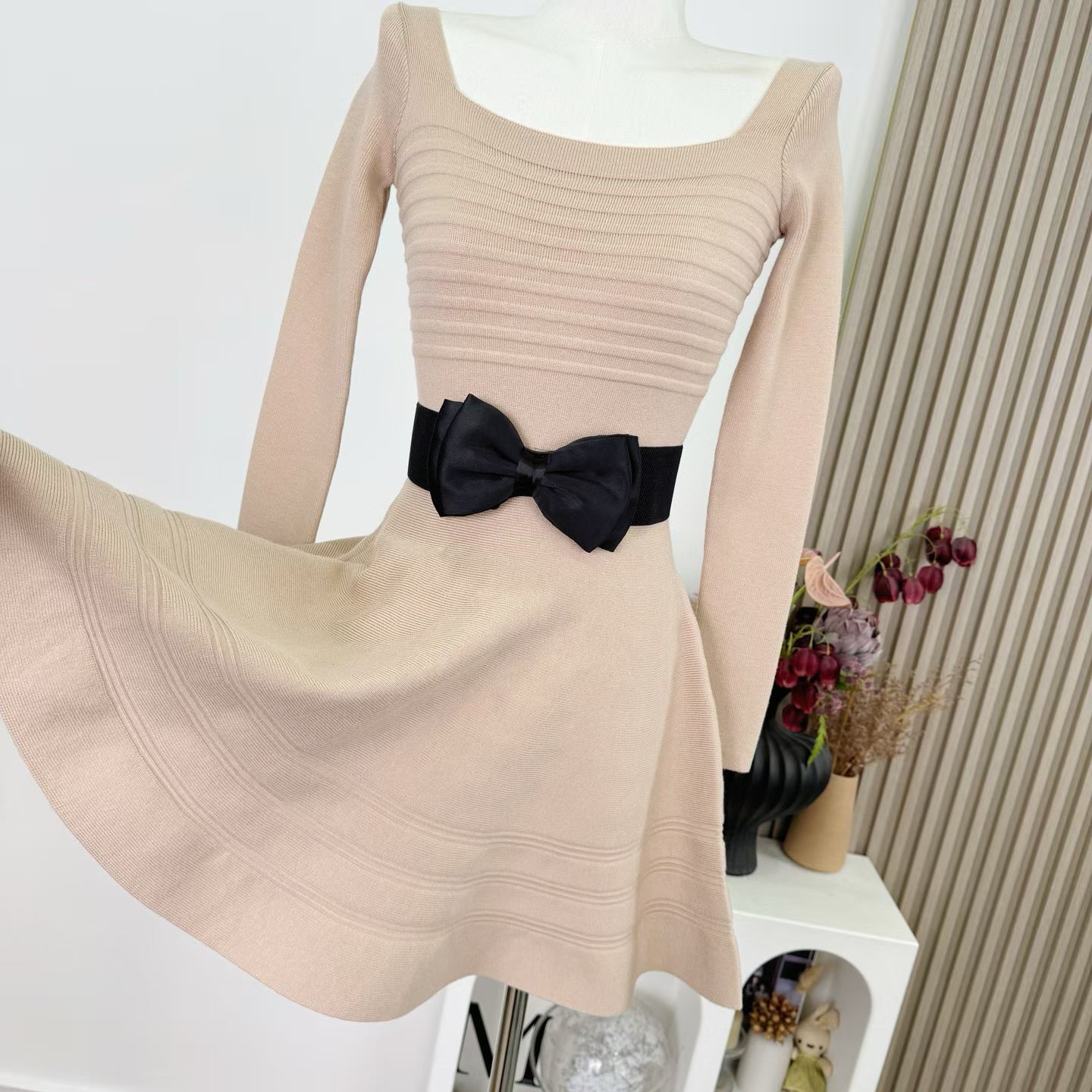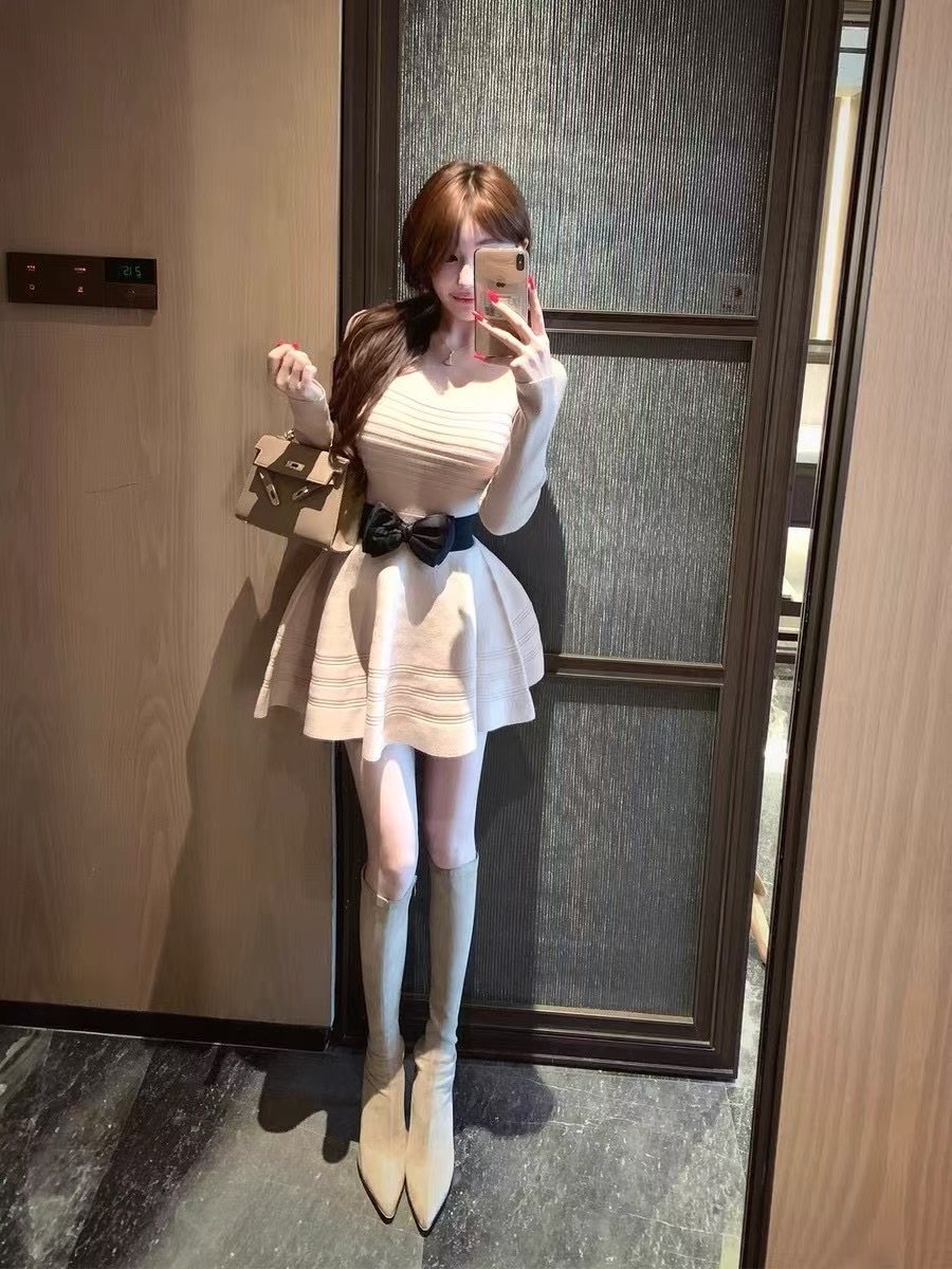 【私有温柔】百搭针织网红休闲小众连衣裙(包括腰带)