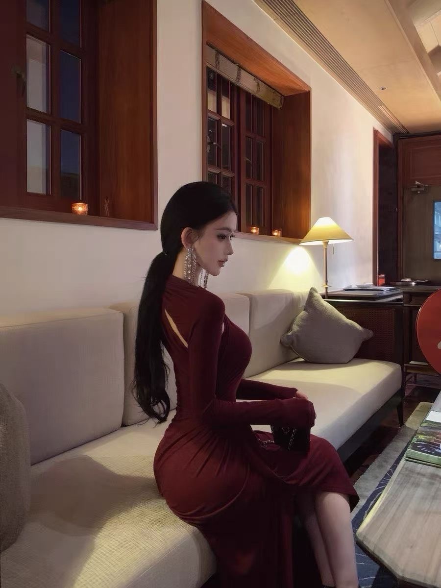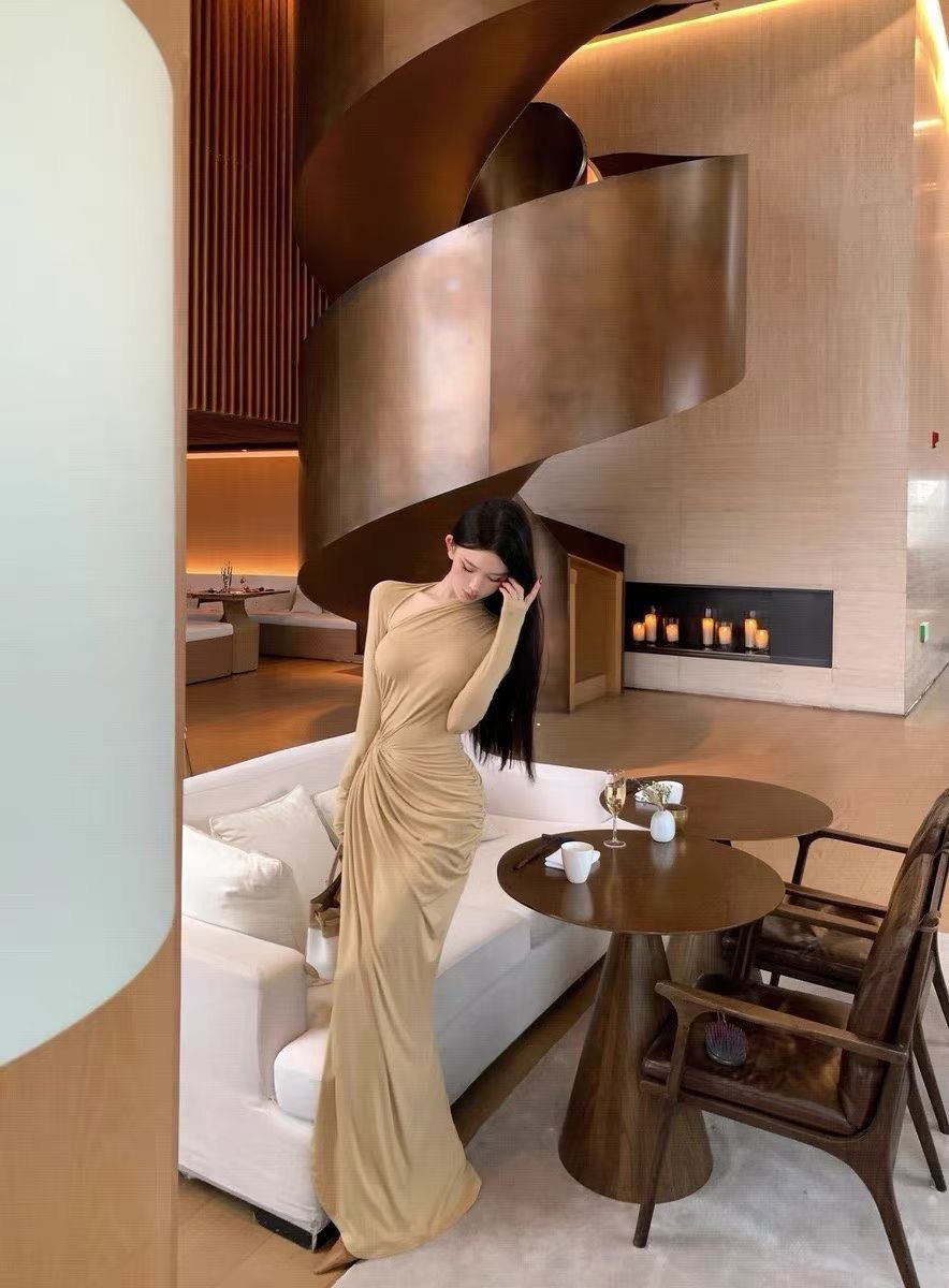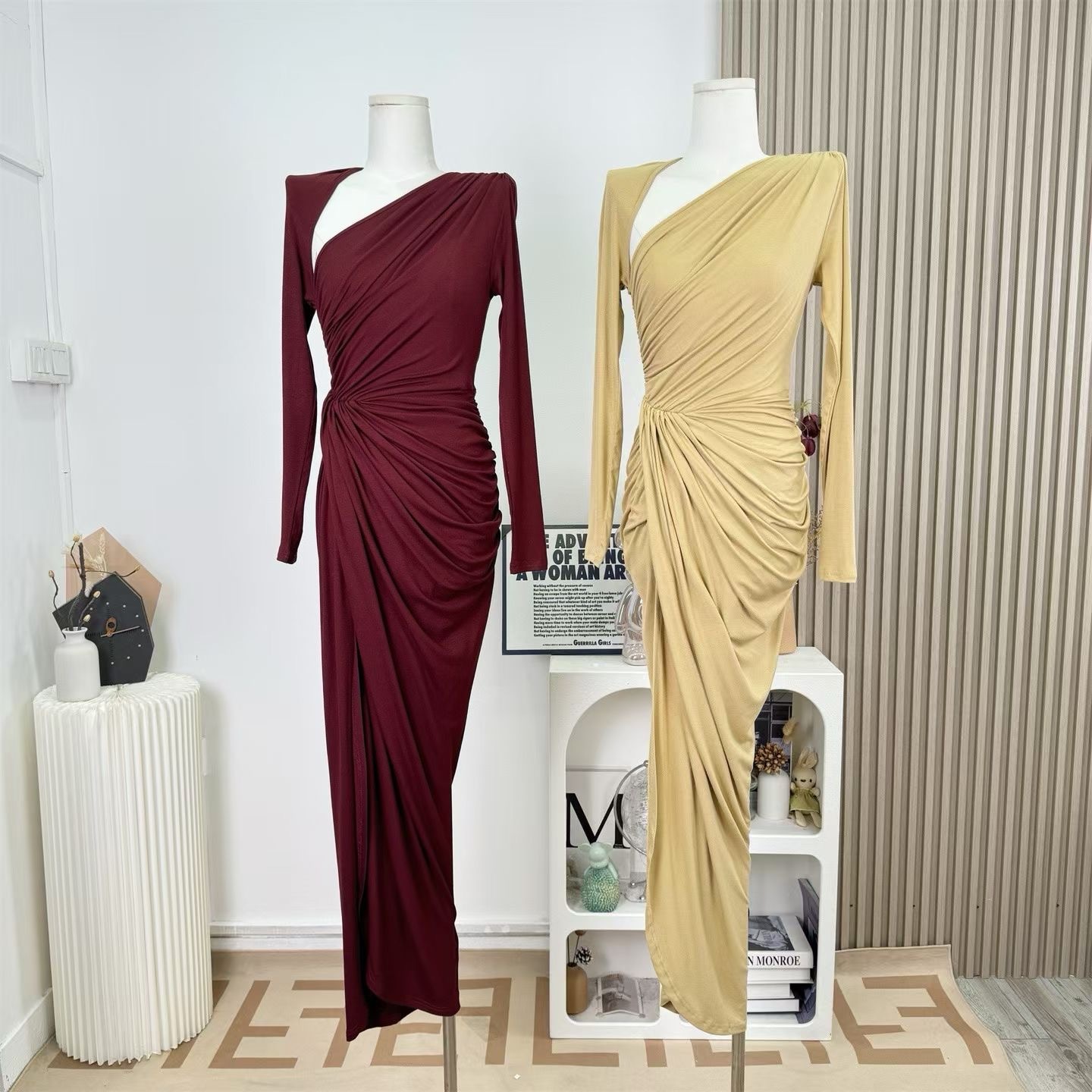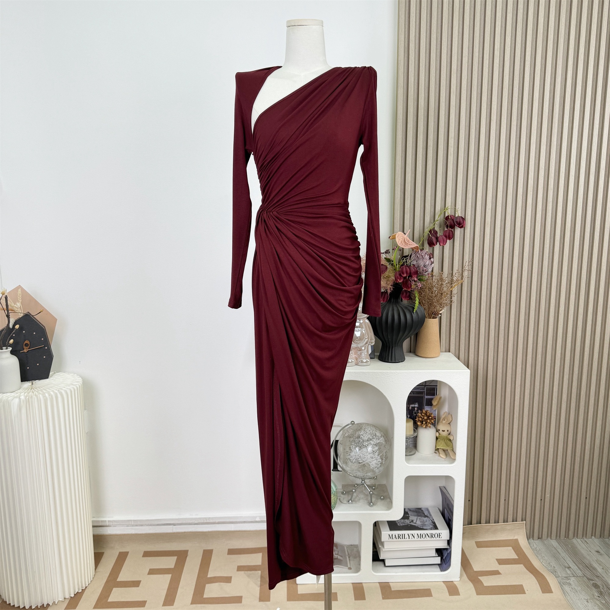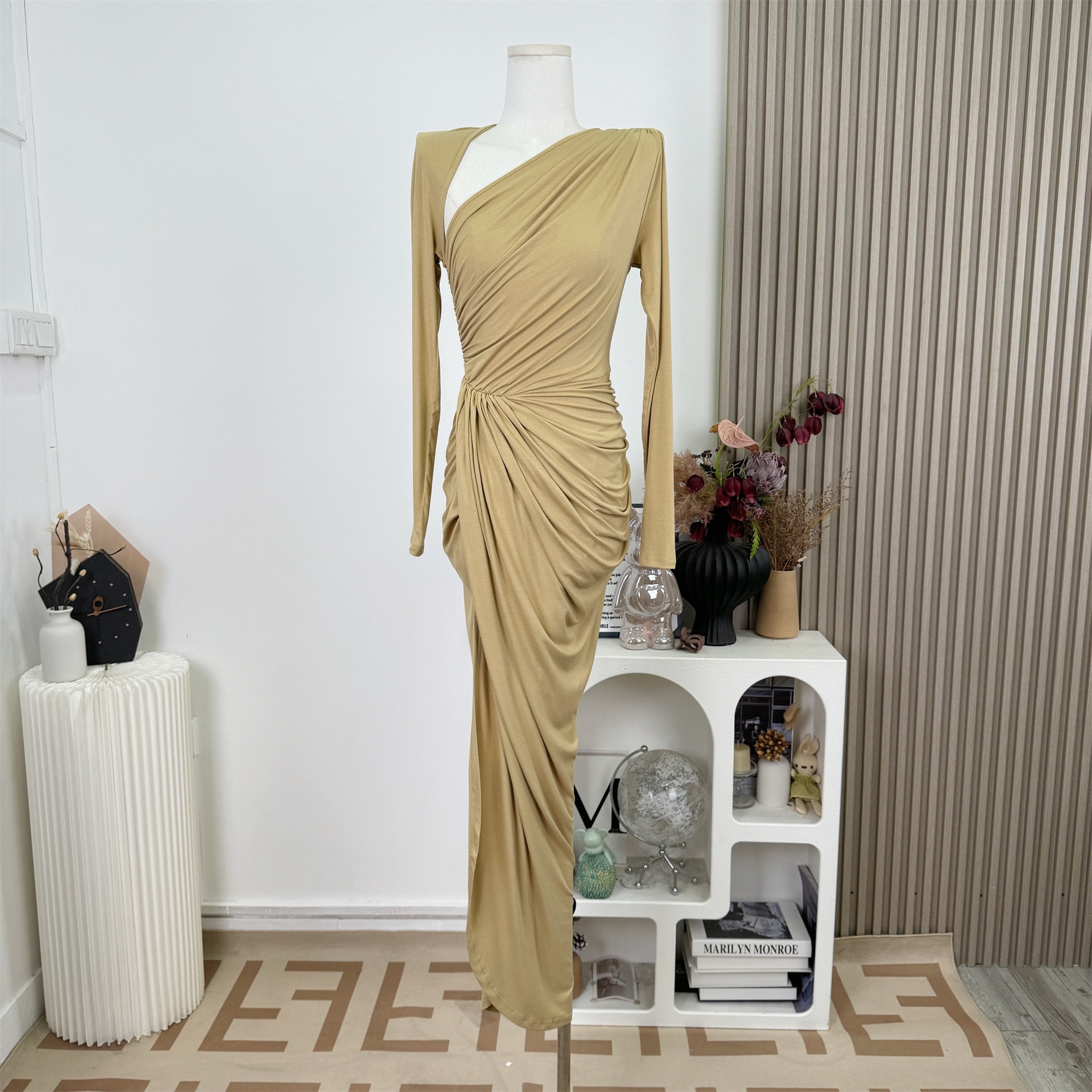 【杜塞之夜】斜肩褶皱包臀连衣裙