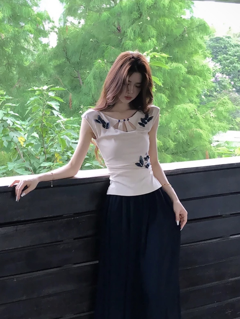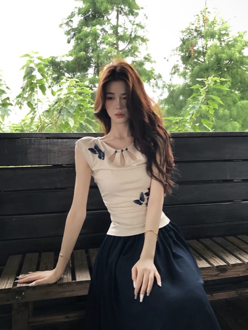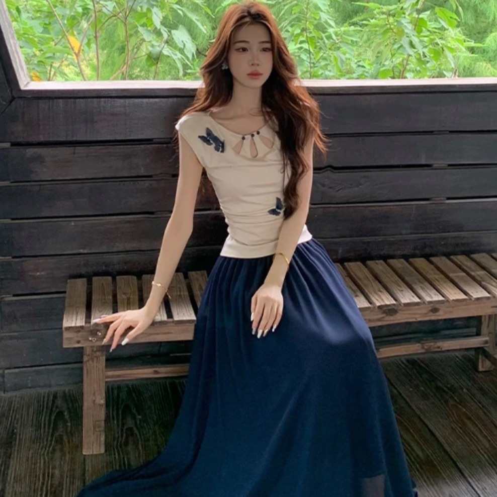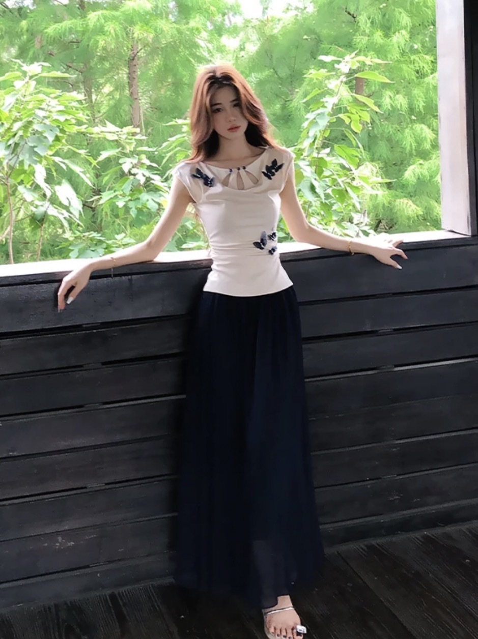 【素笺映蝶】新中式水滴针织衫蝴蝶上衣+半身裙套装