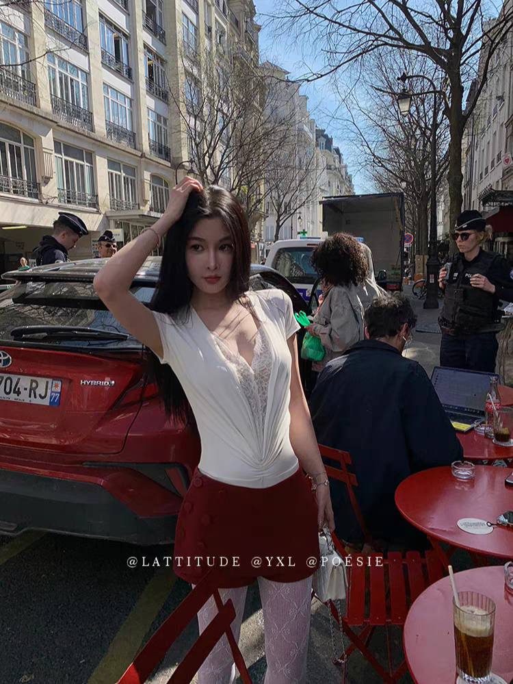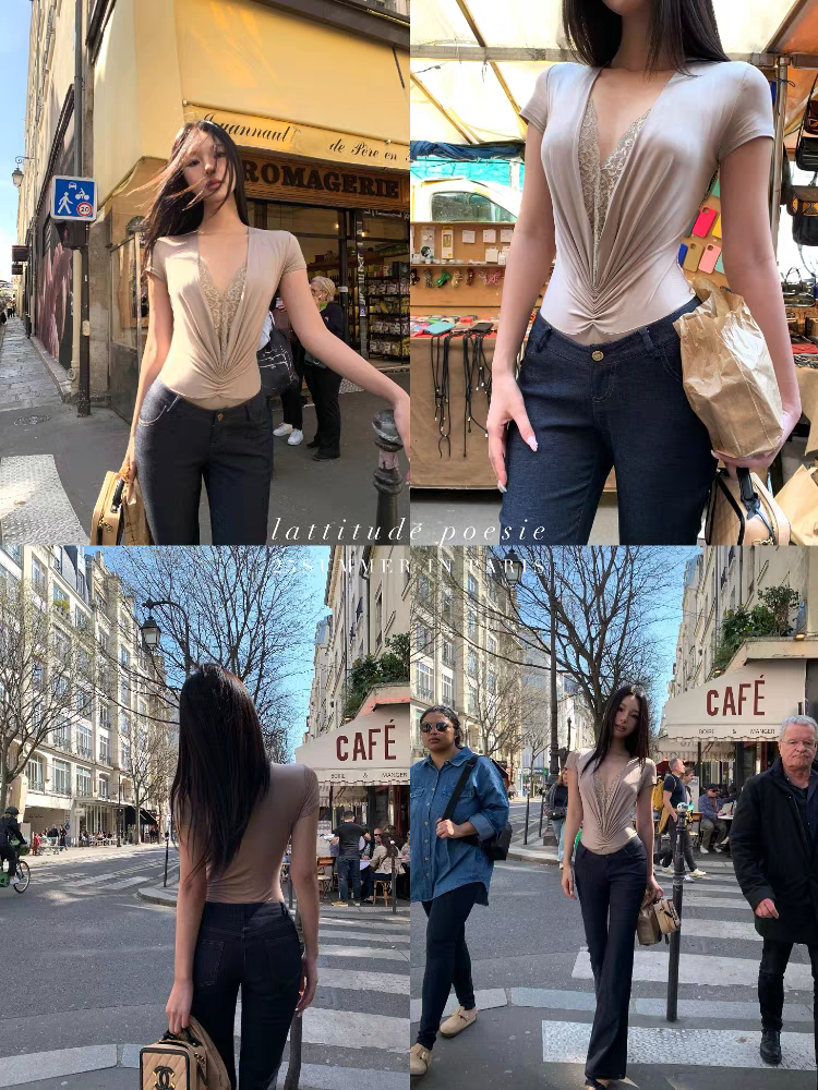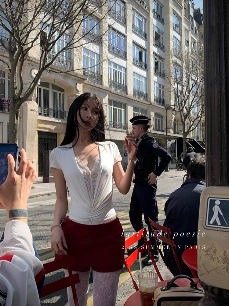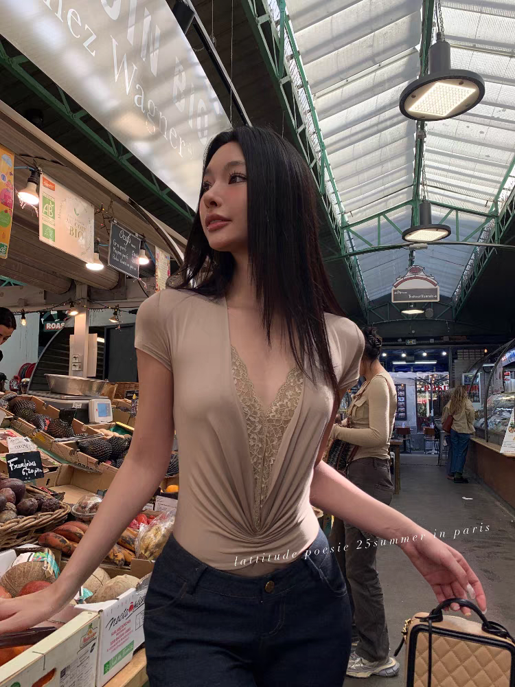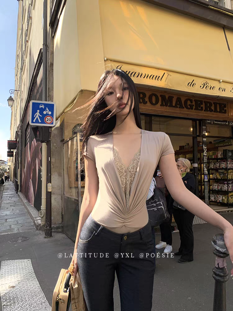 【Jannie】蕾丝拼接正肩T恤连体衣