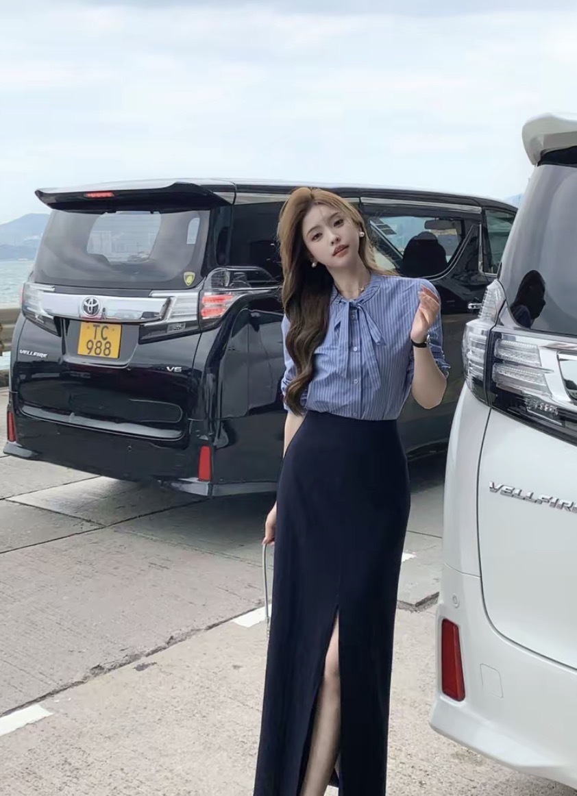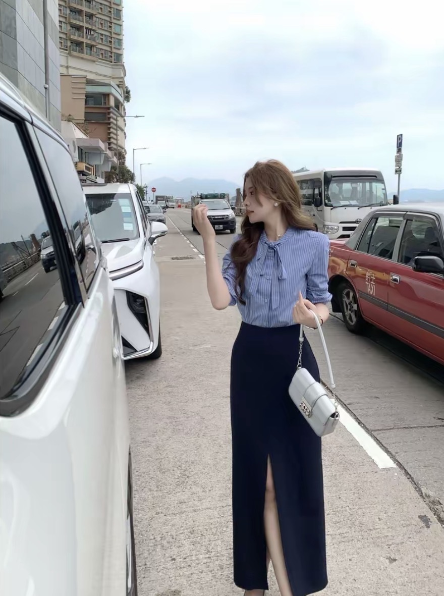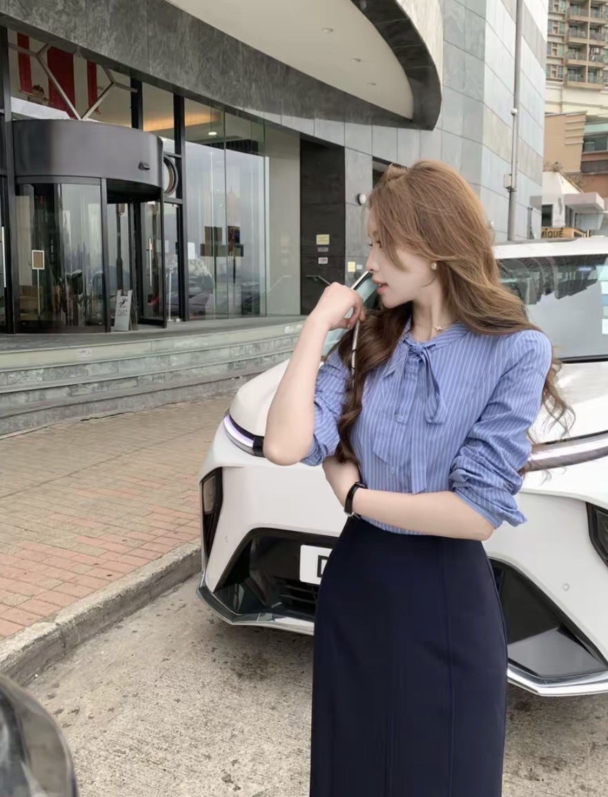 【甜心际遇】韩系条纹蝴蝶结系带长袖衬衫