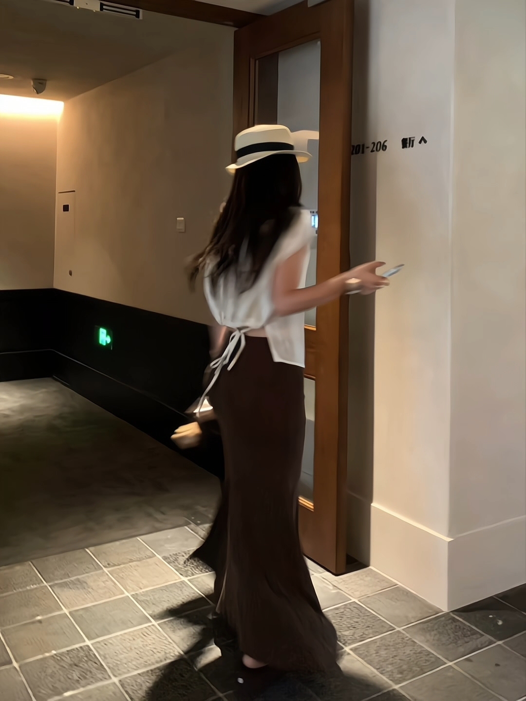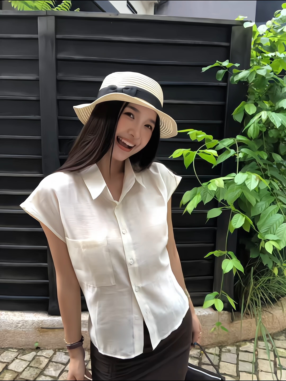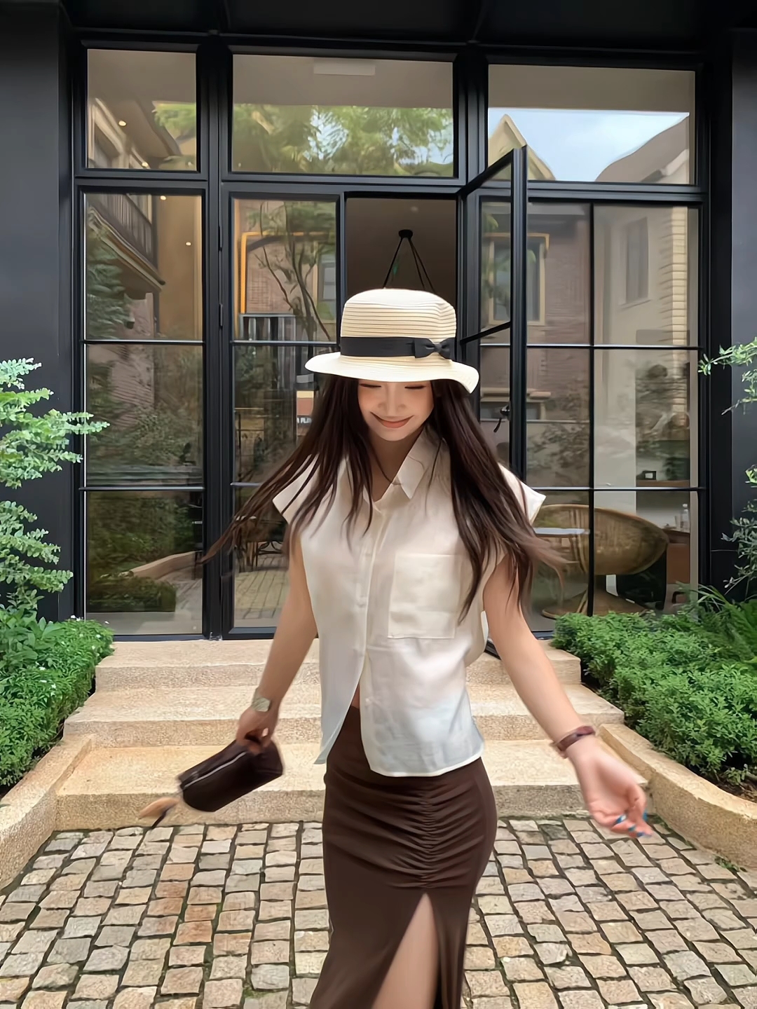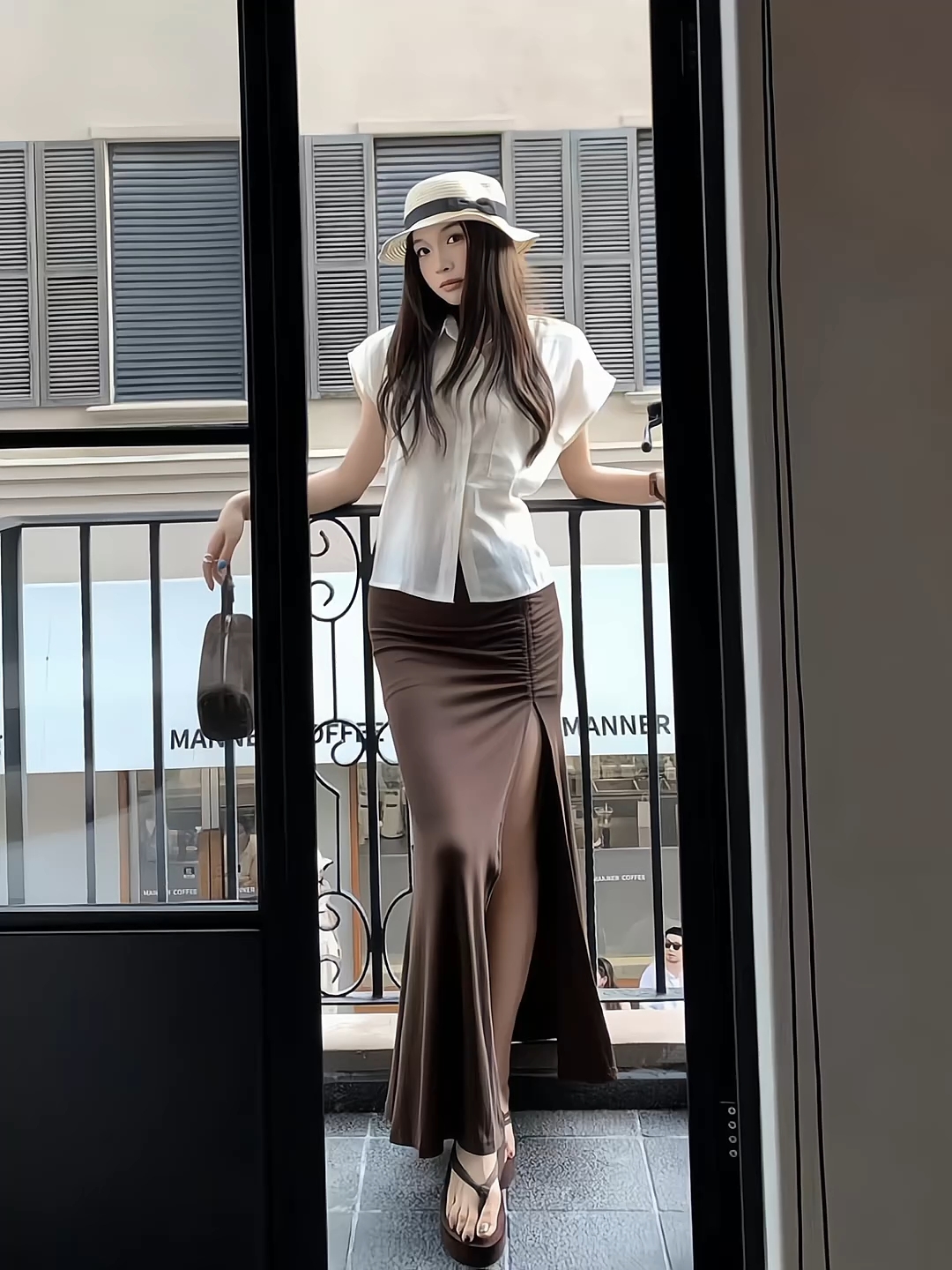 【落叶午茶】 复古韩系短袖衬衫+褶皱半身裙