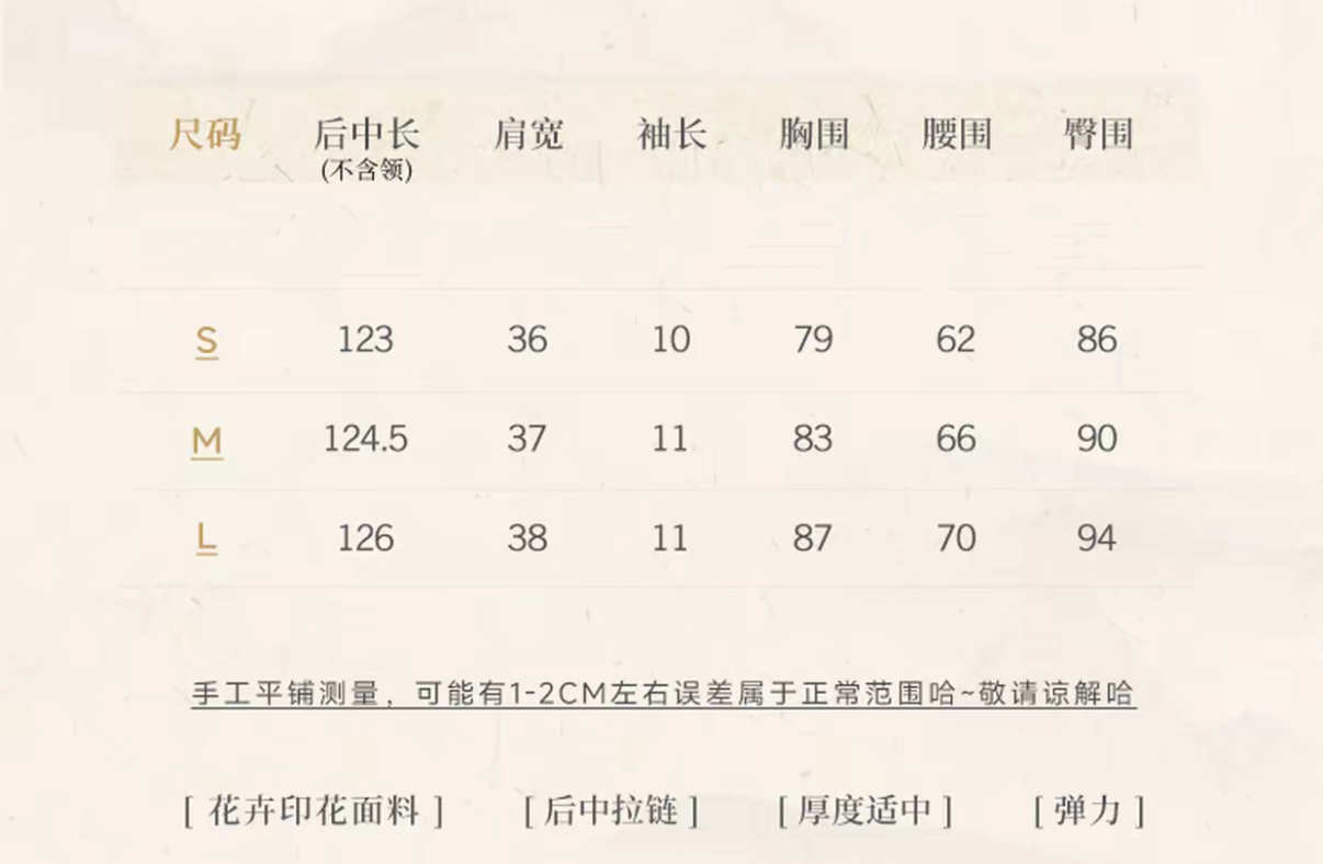 The measurement provided may vary in ± 3cm due to the elasticity of the fabric, manual measurement and other factors,and the actual product shall prevail.