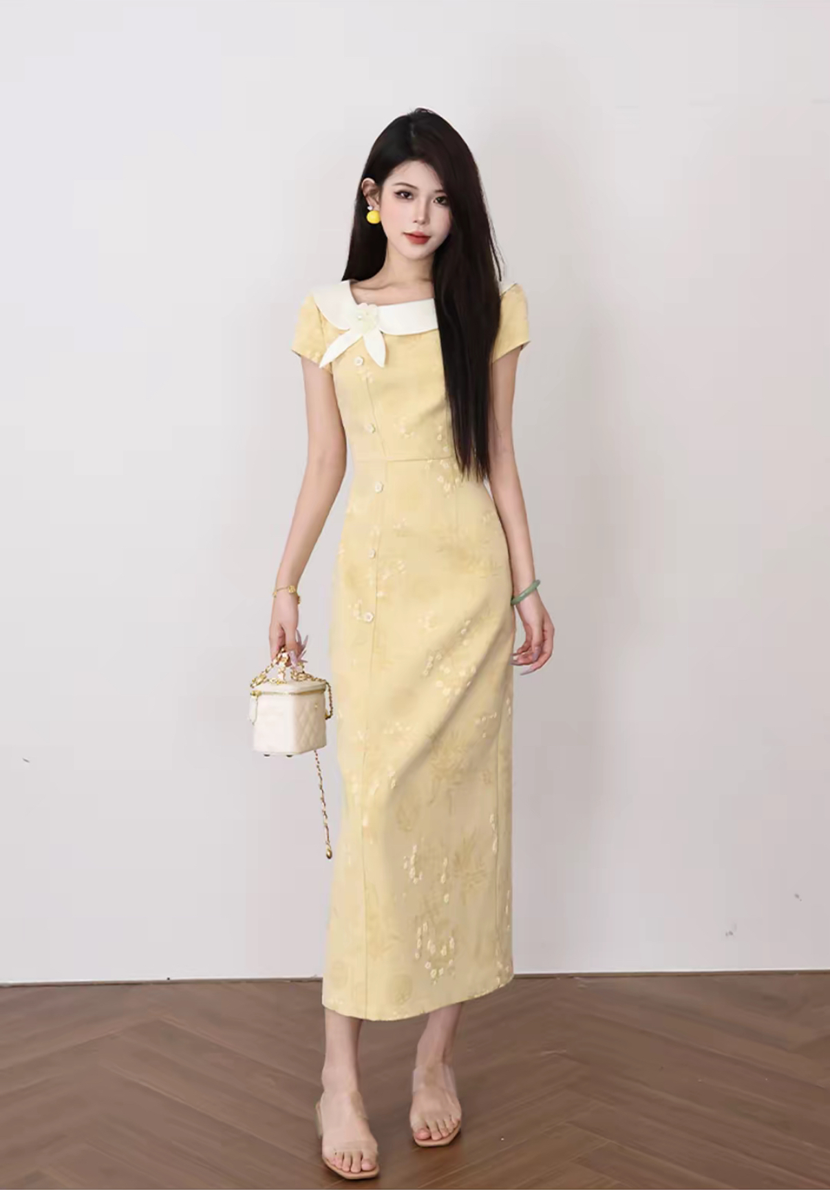 【夕雾花影】法式复古碎花小众设计感开叉连衣裙