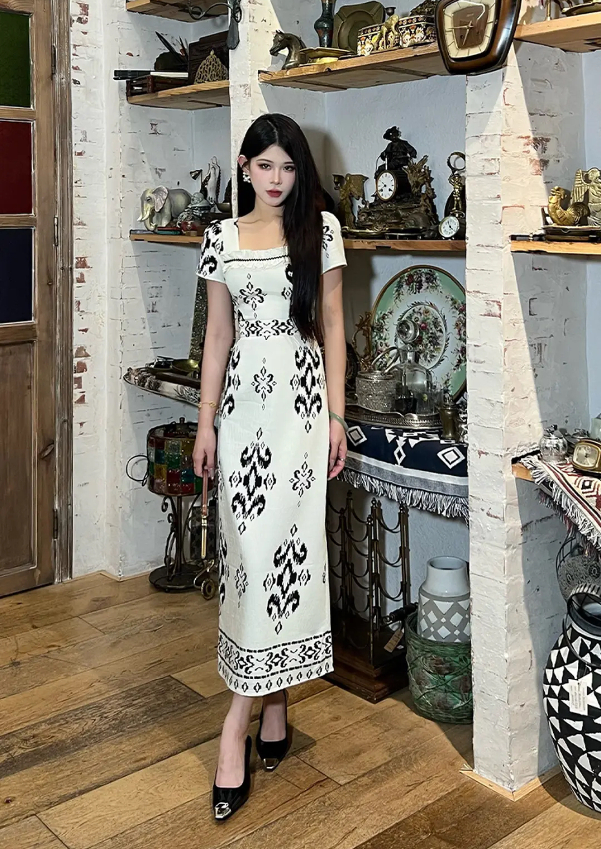 【绮丽香宴】法式方领气质感长款收腰连衣裙