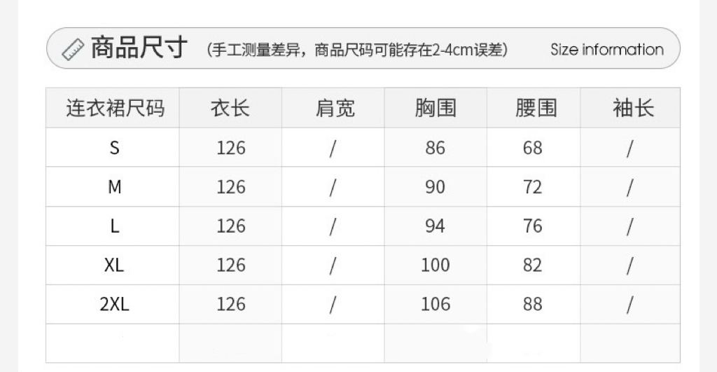 The measurement provided may vary in ± 3cm due to the elasticity of the fabric, manual measurement and other factors,and the actual product shall prevail.