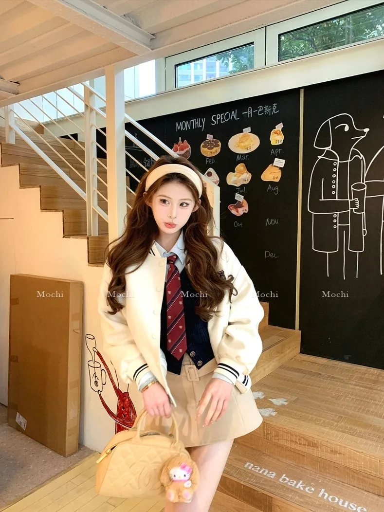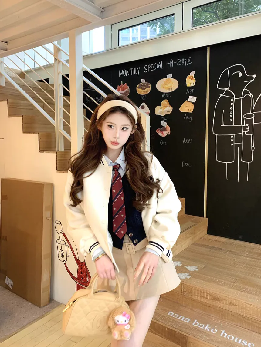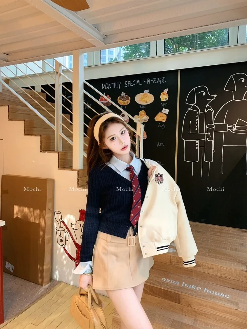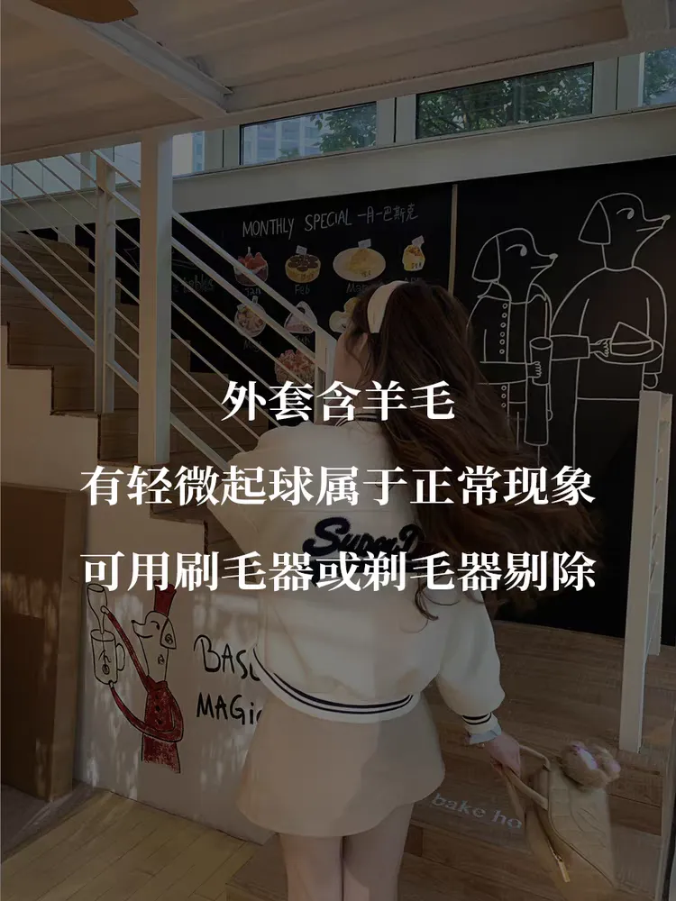 【海德公园】假两件针织上衣百搭半裙冬加棉棒球外套