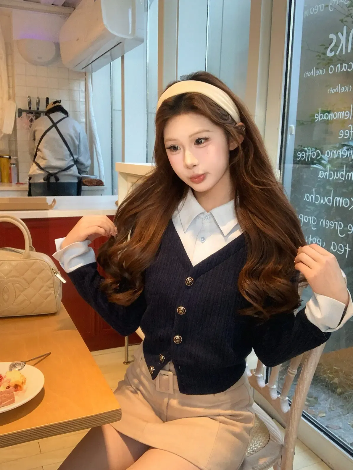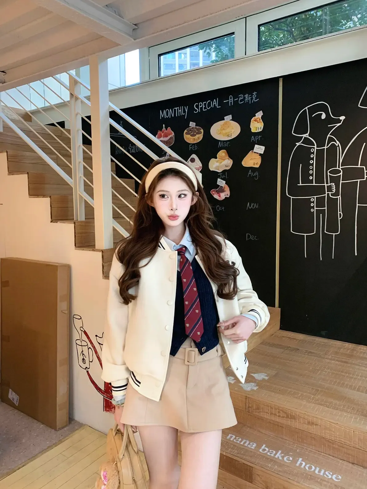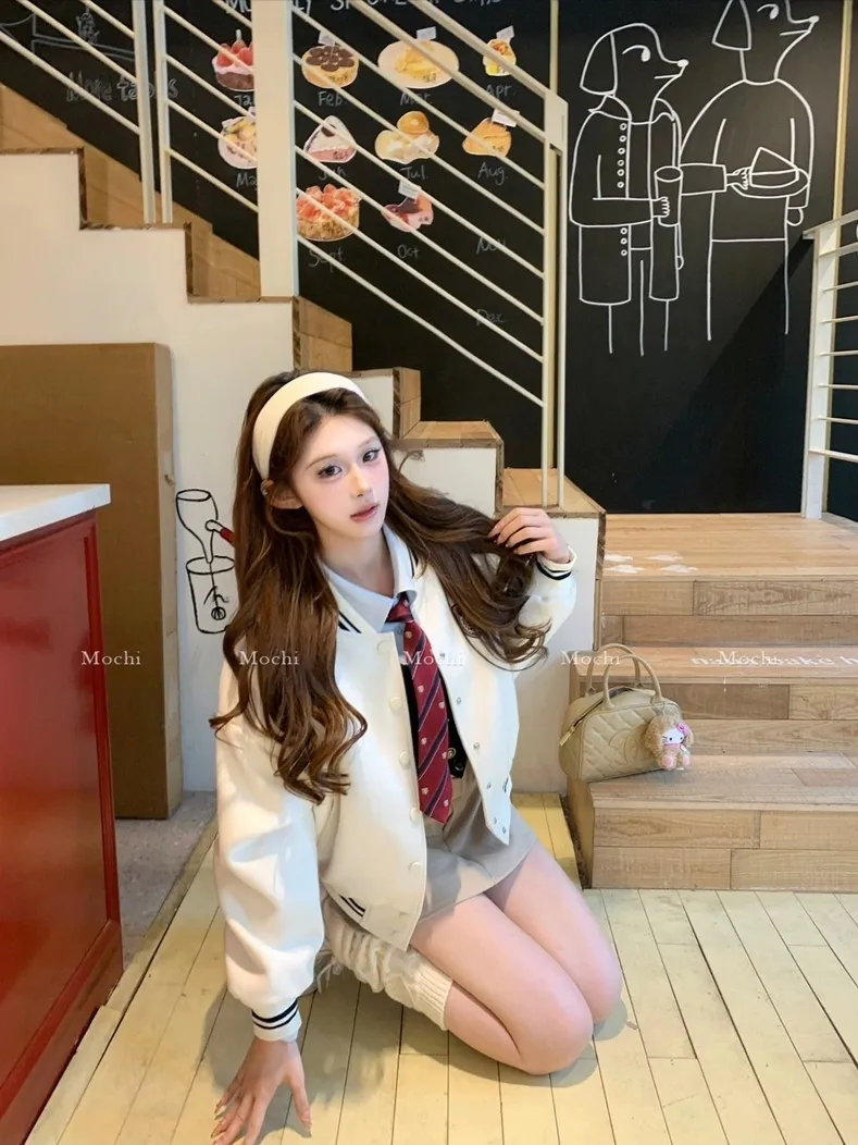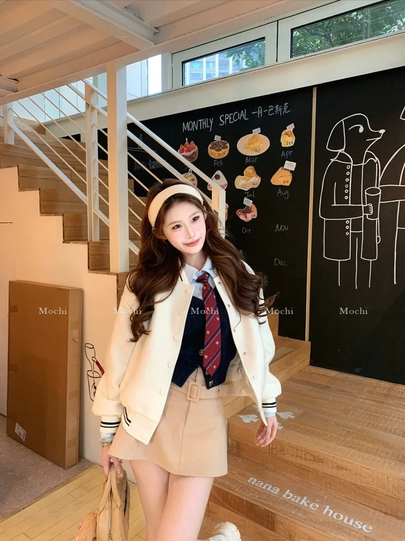 【海德公园】假两件针织上衣百搭半裙冬加棉棒球外套