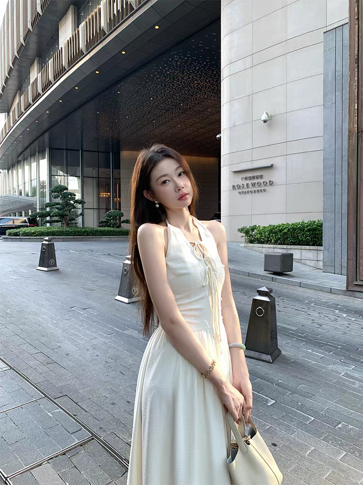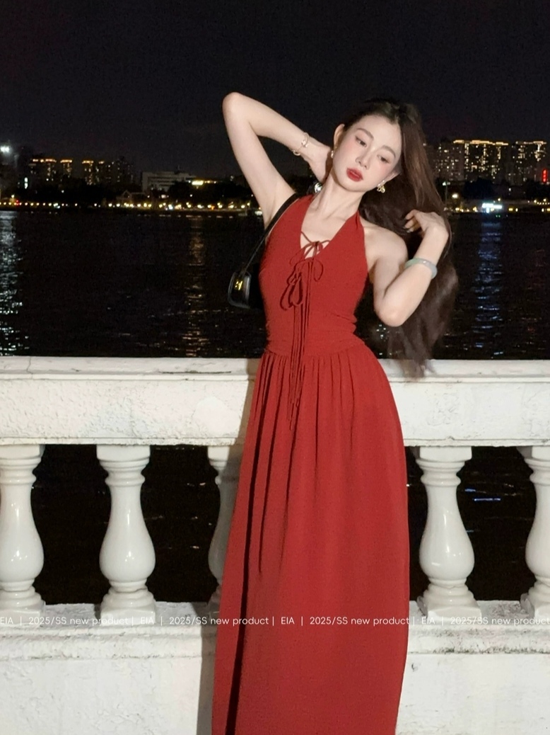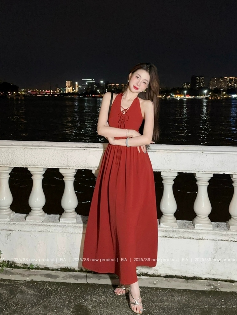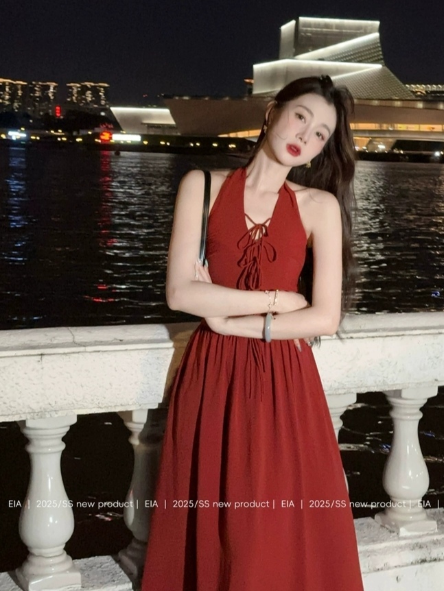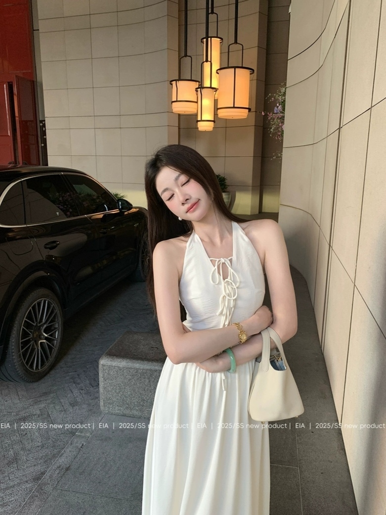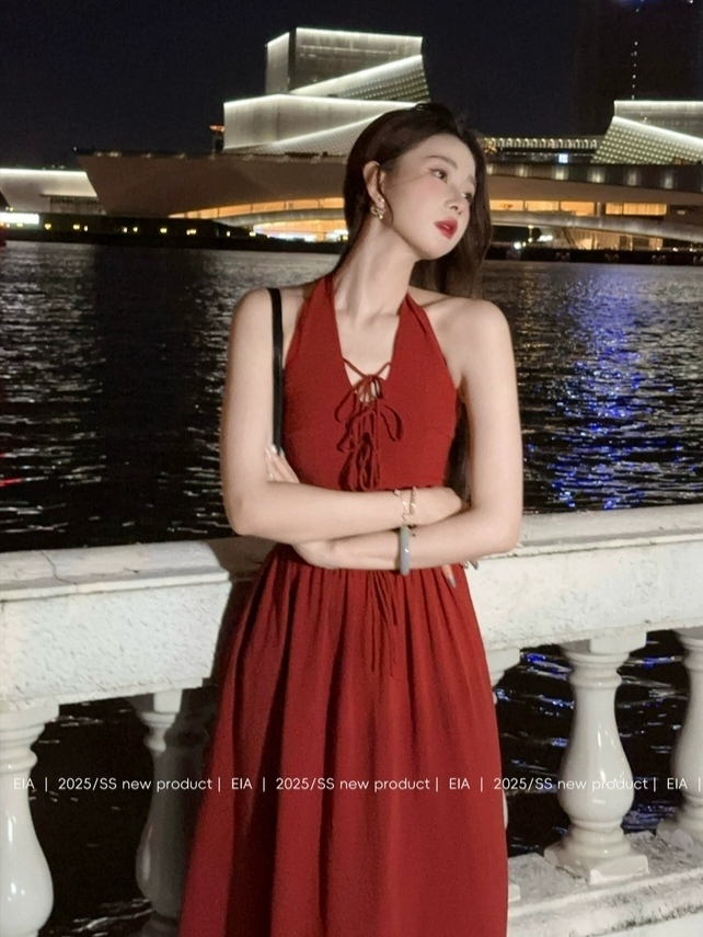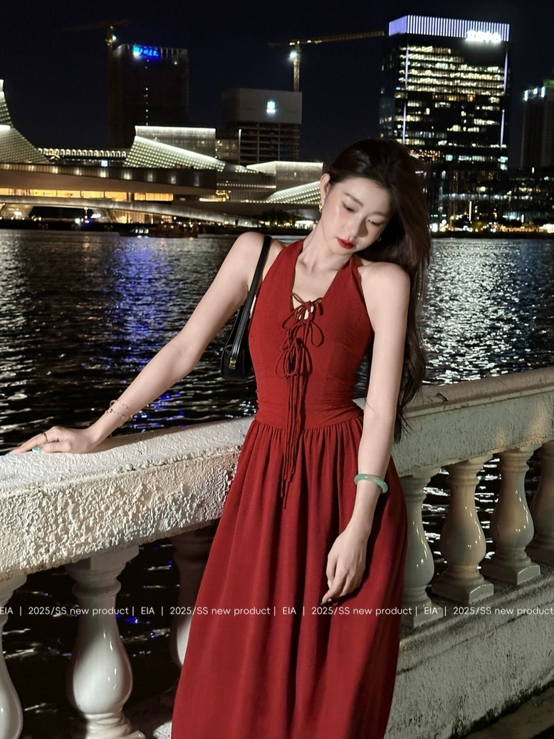 【夏日缪斯】复古港风挂脖露背连衣裙