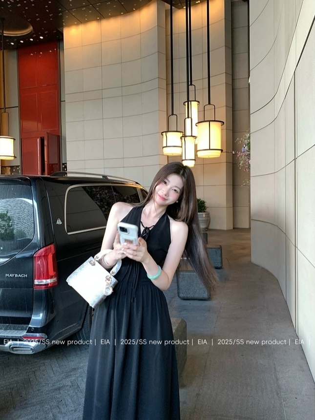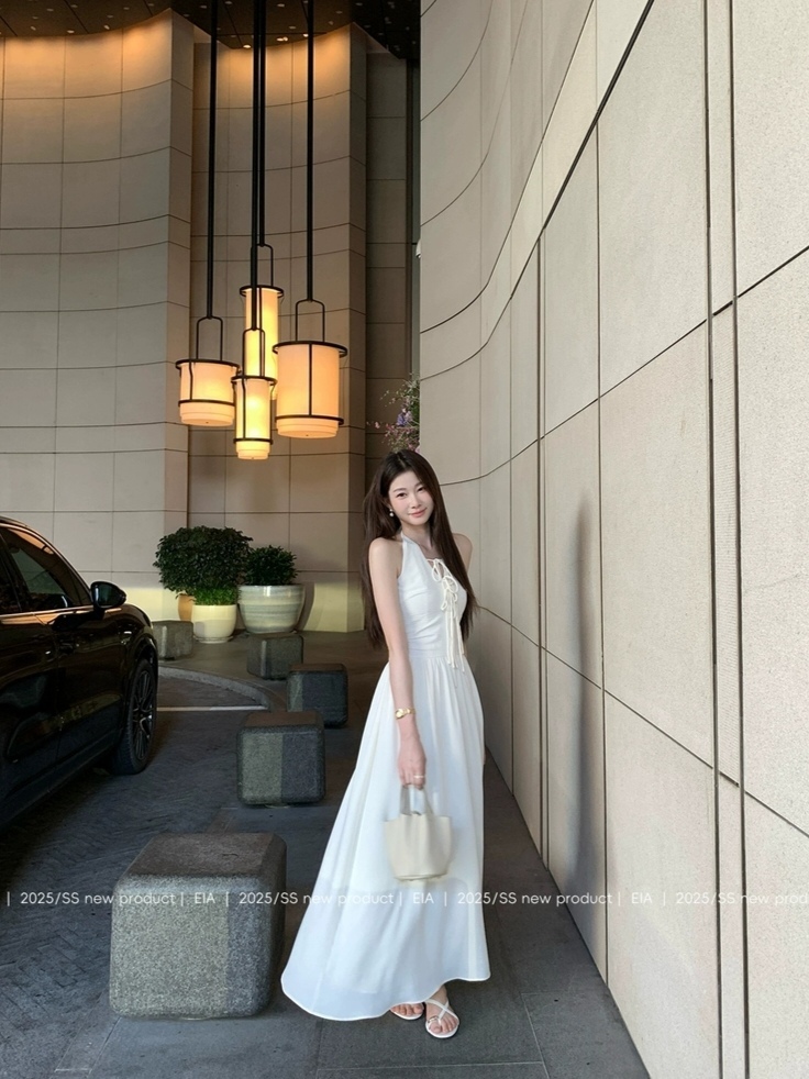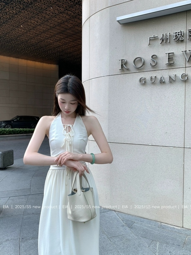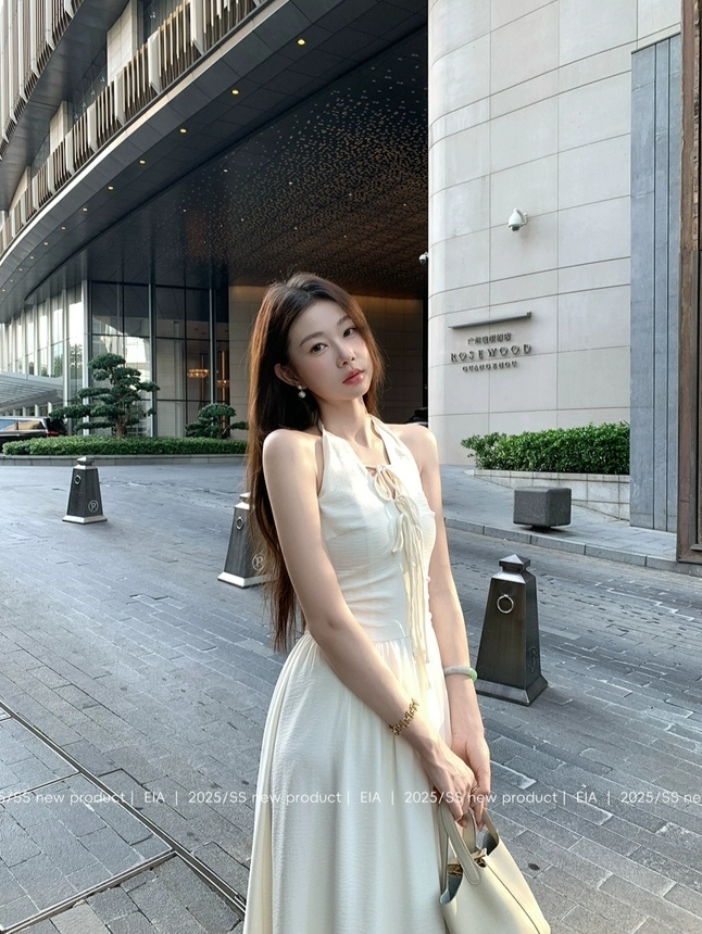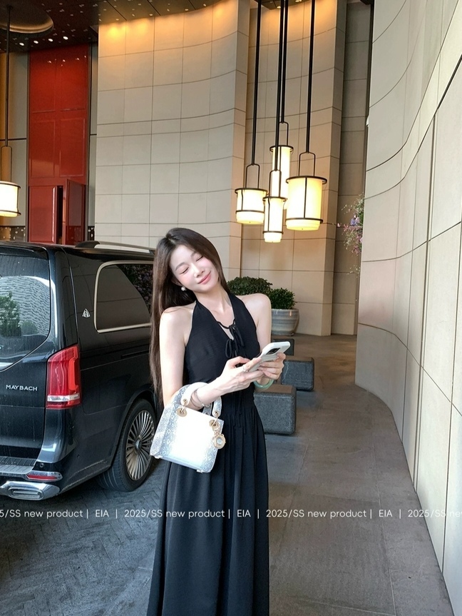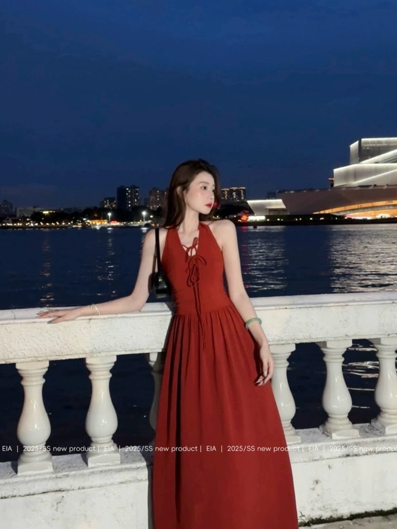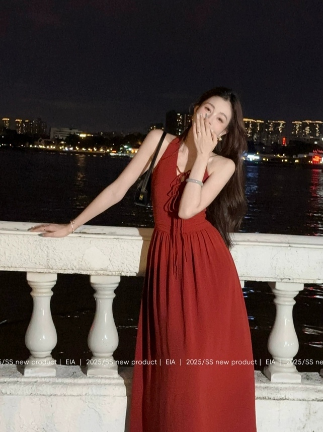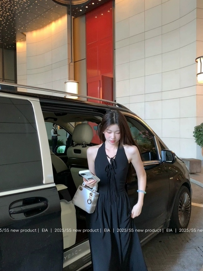 【夏日缪斯】复古港风挂脖露背连衣裙