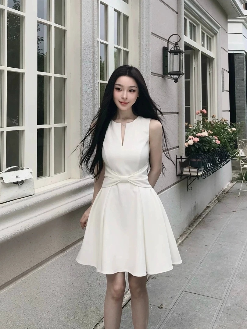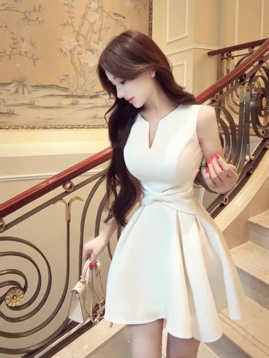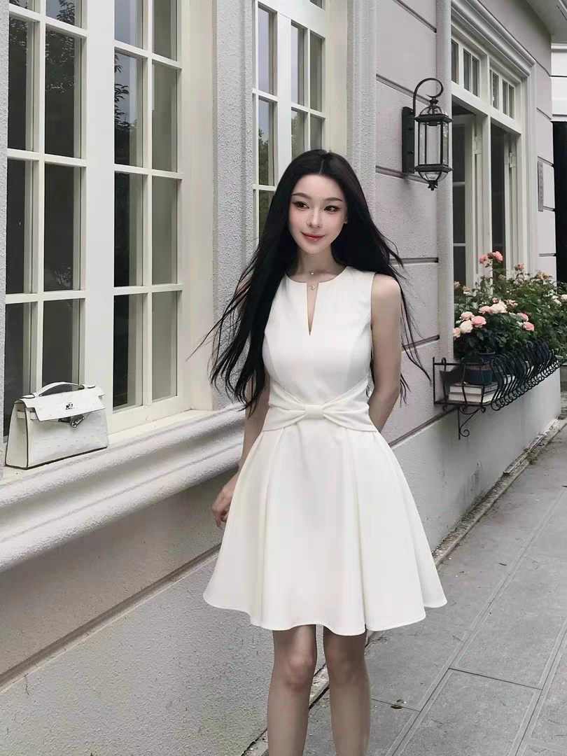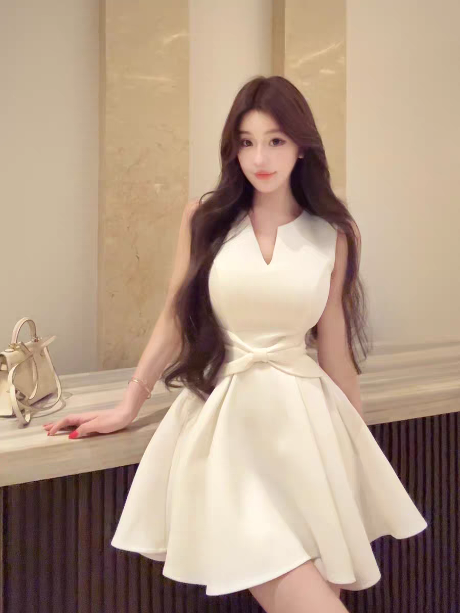 【白月颂歌】纯欲风蝴蝶结深V连衣裙