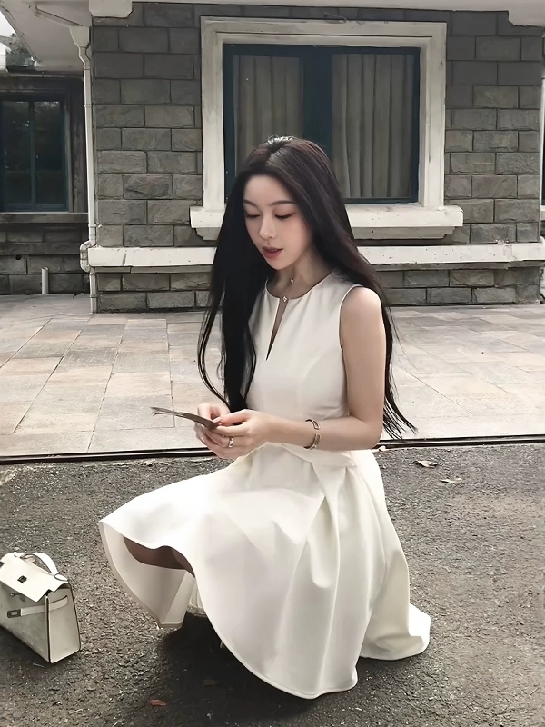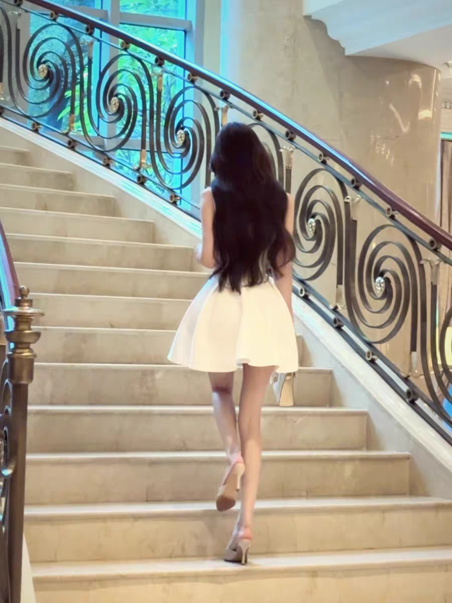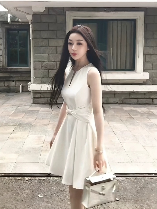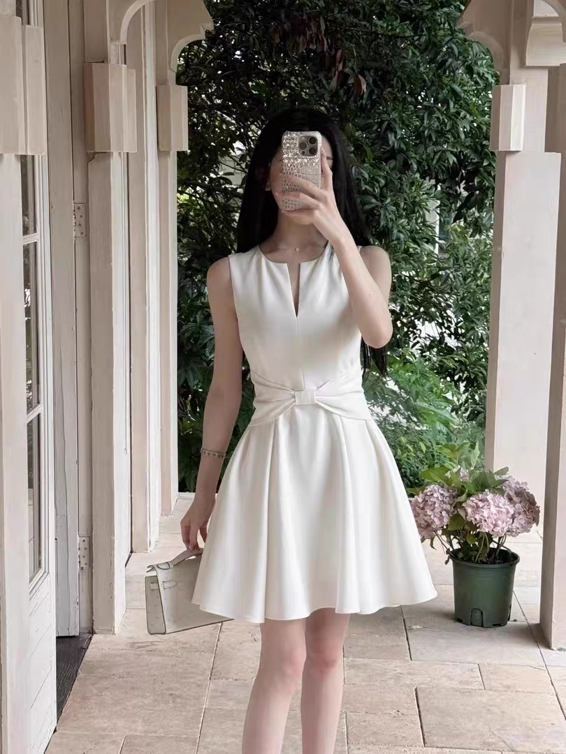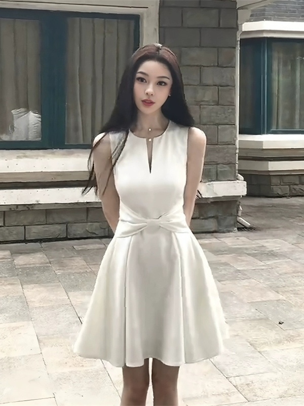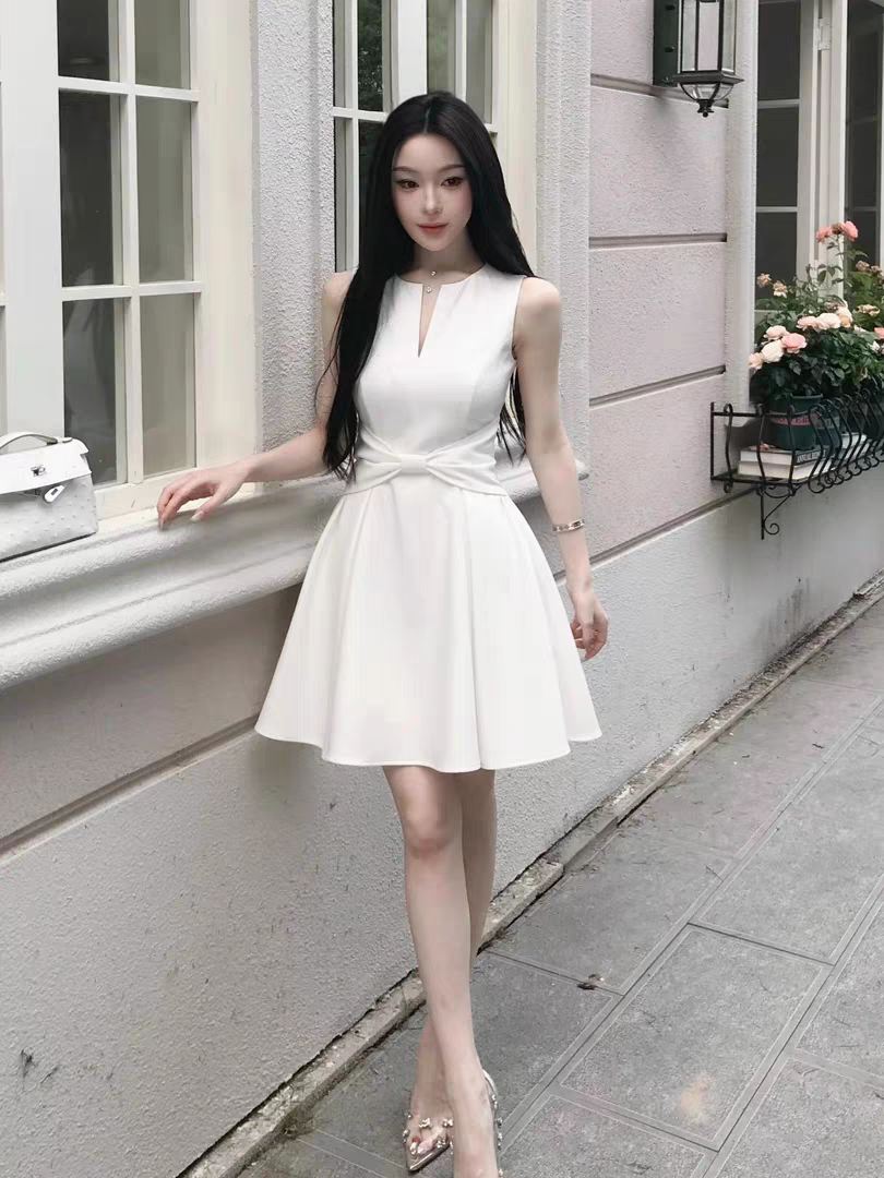 【白月颂歌】纯欲风蝴蝶结深V连衣裙