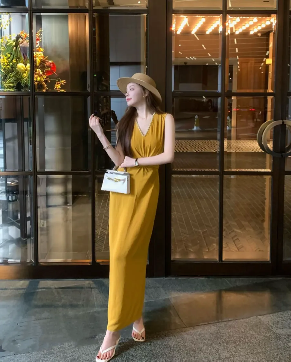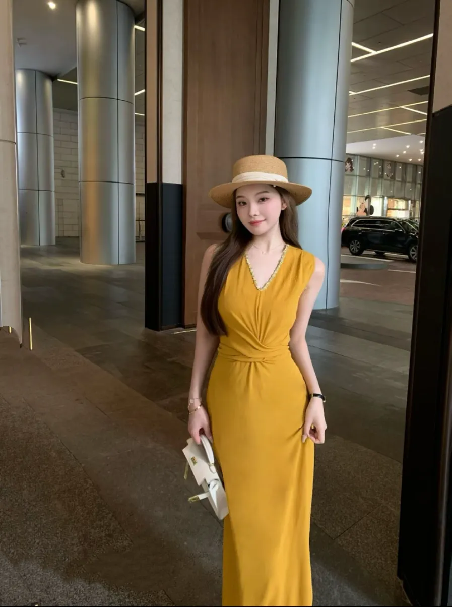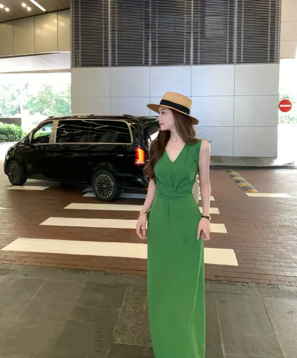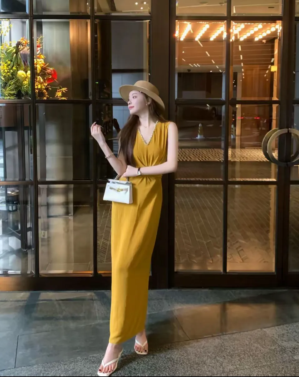 【巴黎恋书】韩系气质无袖V领连衣裙