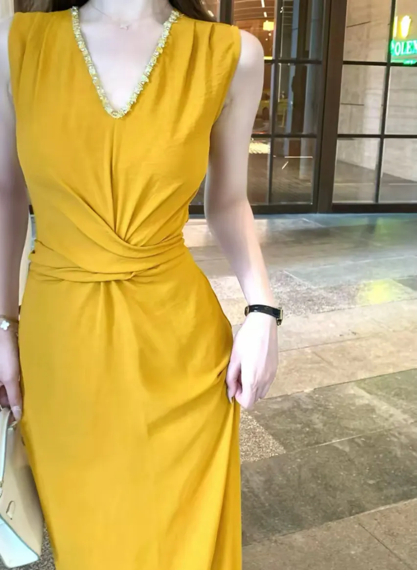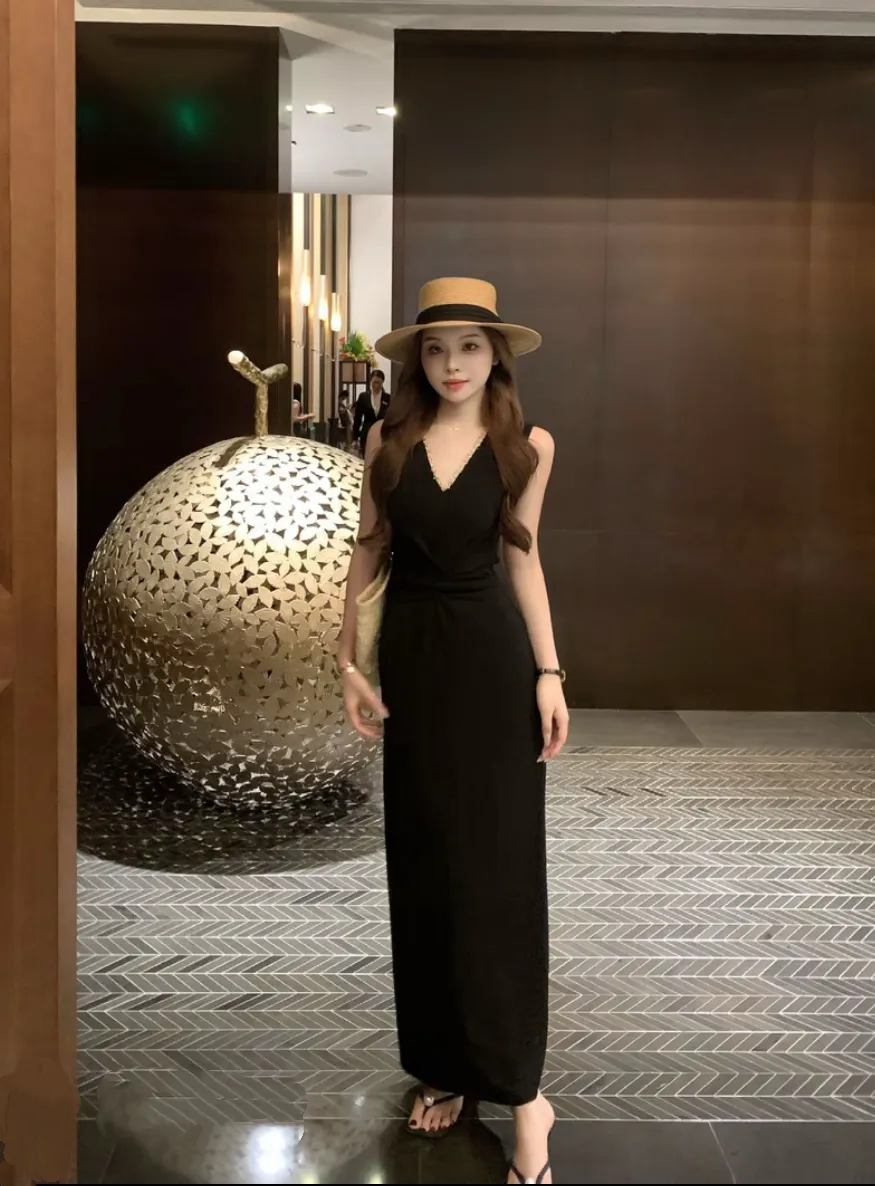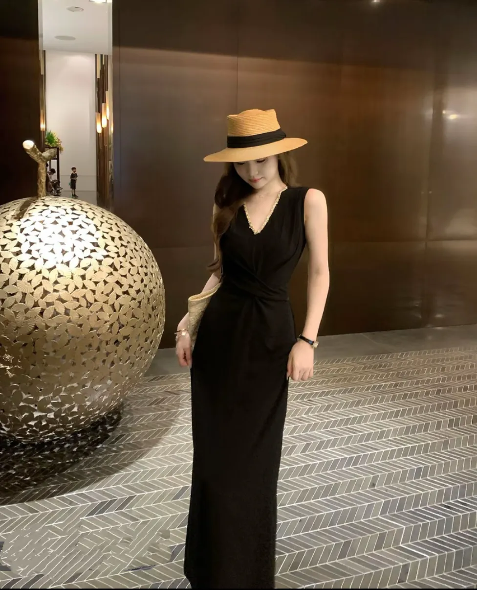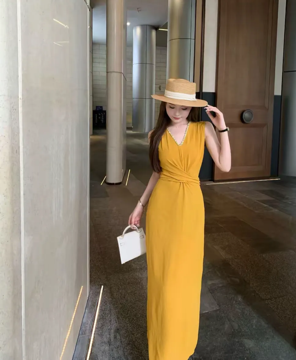 【巴黎恋书】韩系气质无袖V领连衣裙