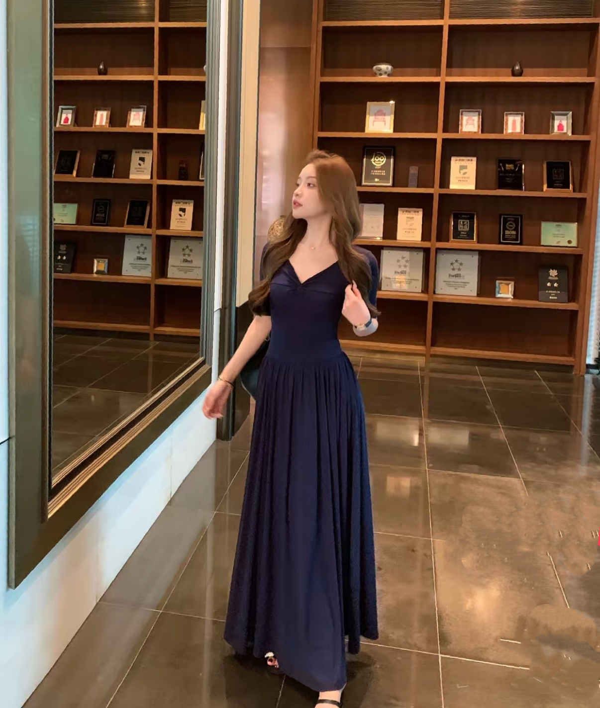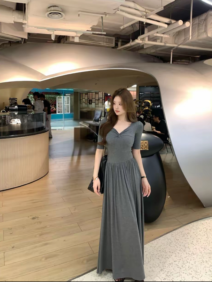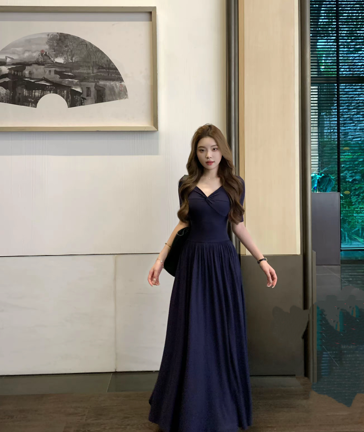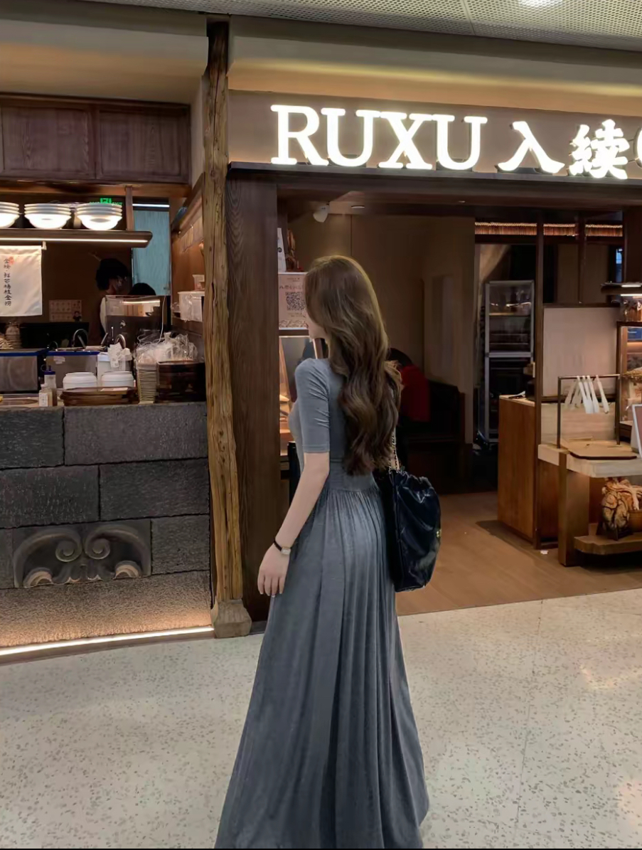 【曼岛小城】文艺风气质修身大裙摆连衣裙