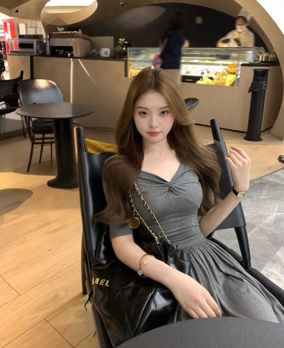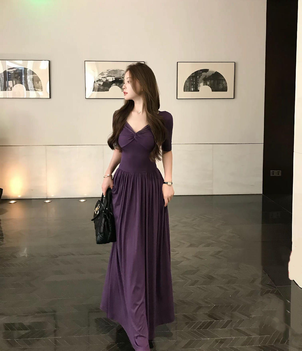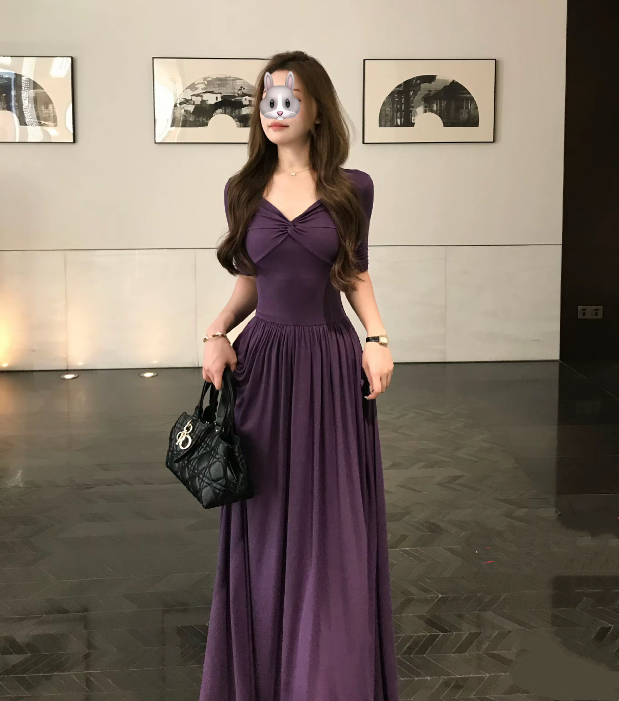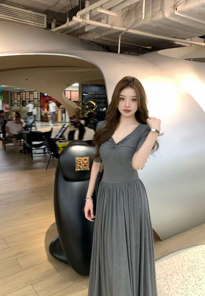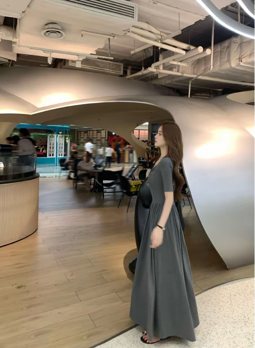 【曼岛小城】文艺风气质修身大裙摆连衣裙
