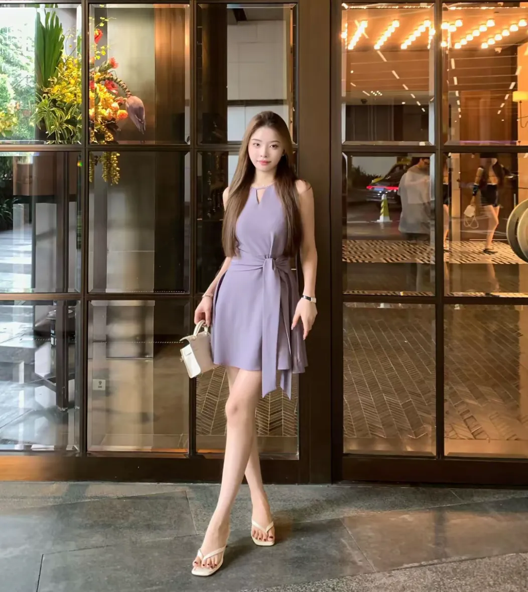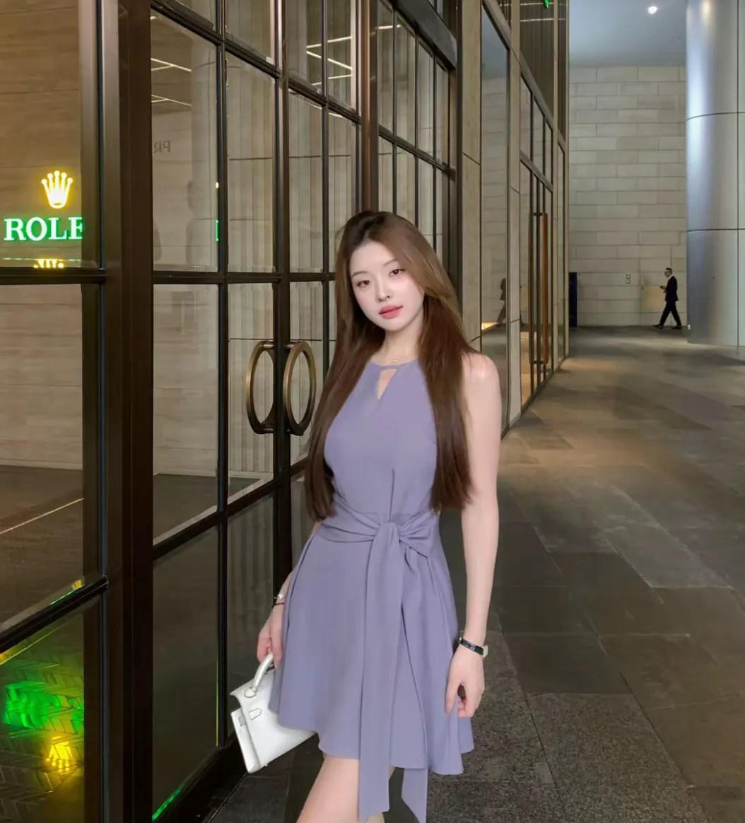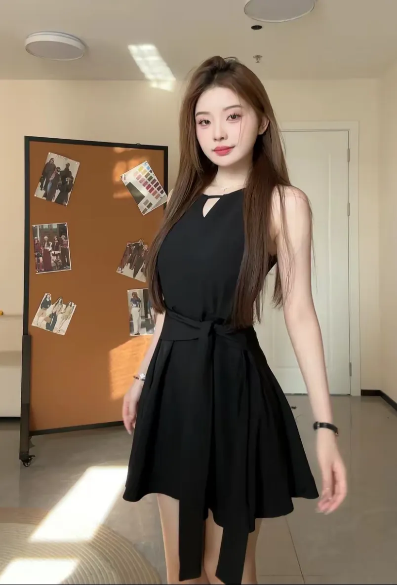 【梦境之间】气质圆领系带收腰短款连衣裙