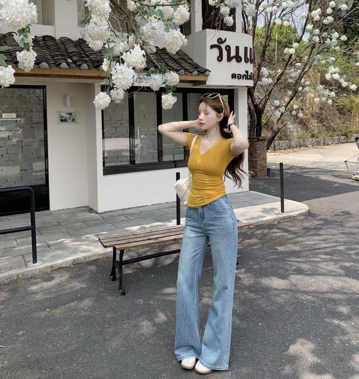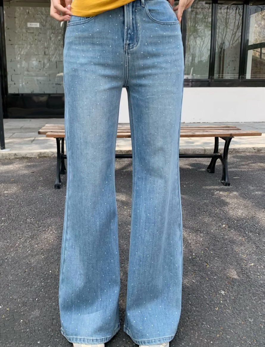 【满天星爆闪】时尚百搭显瘦高腰微喇牛仔裤