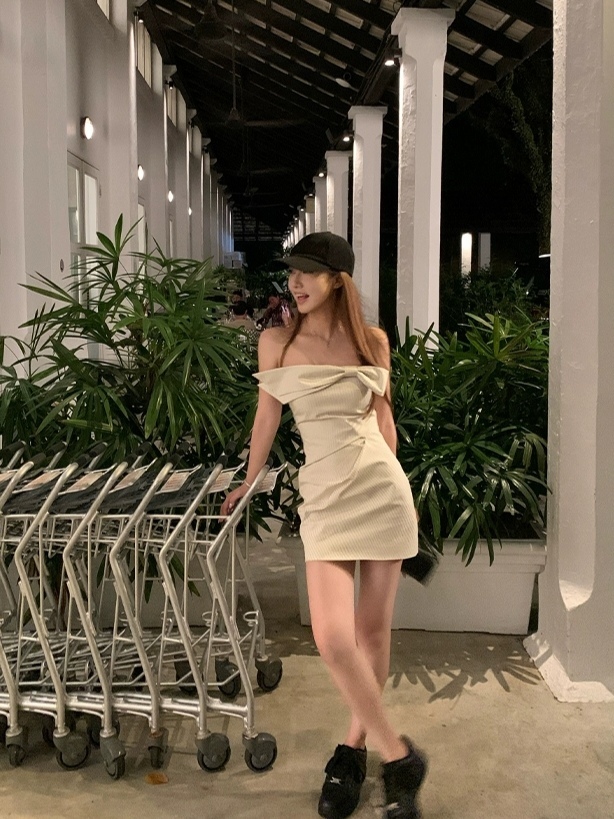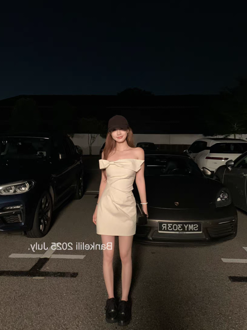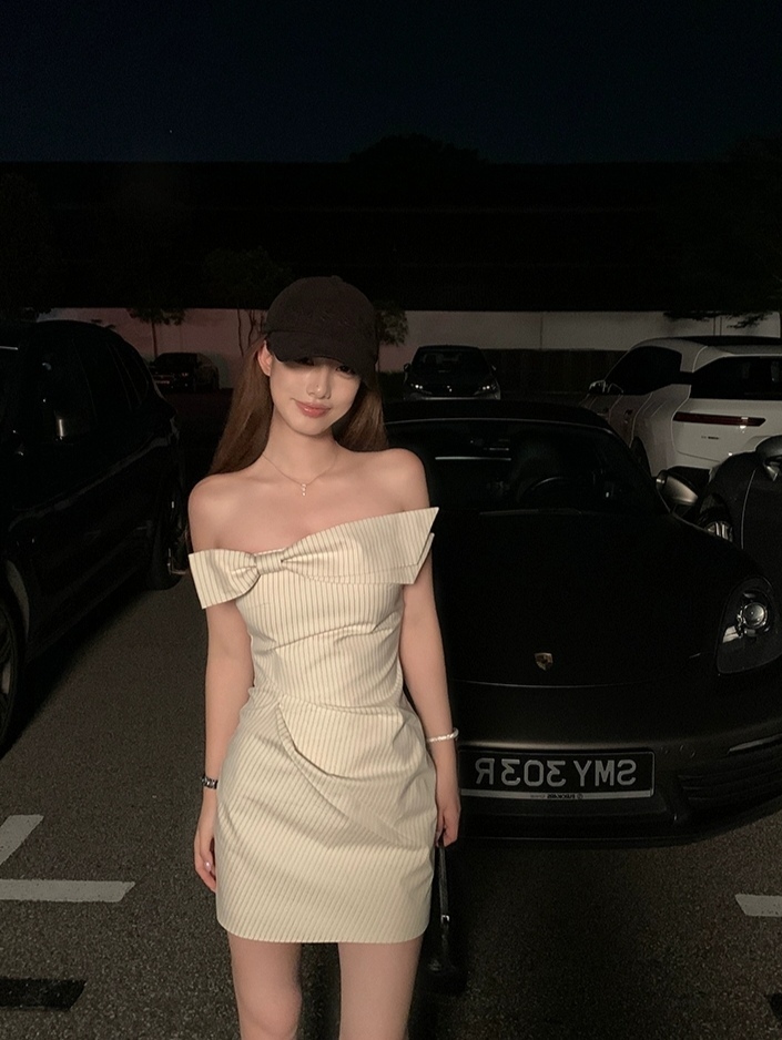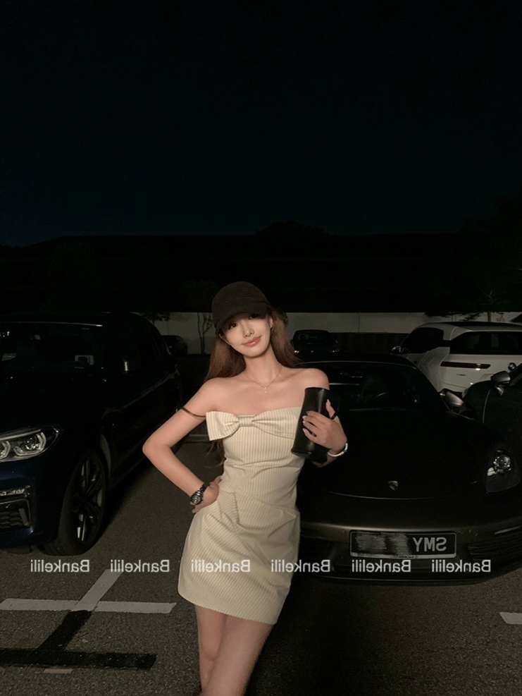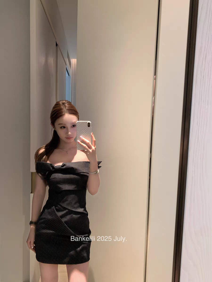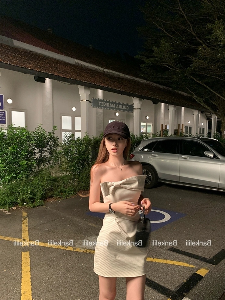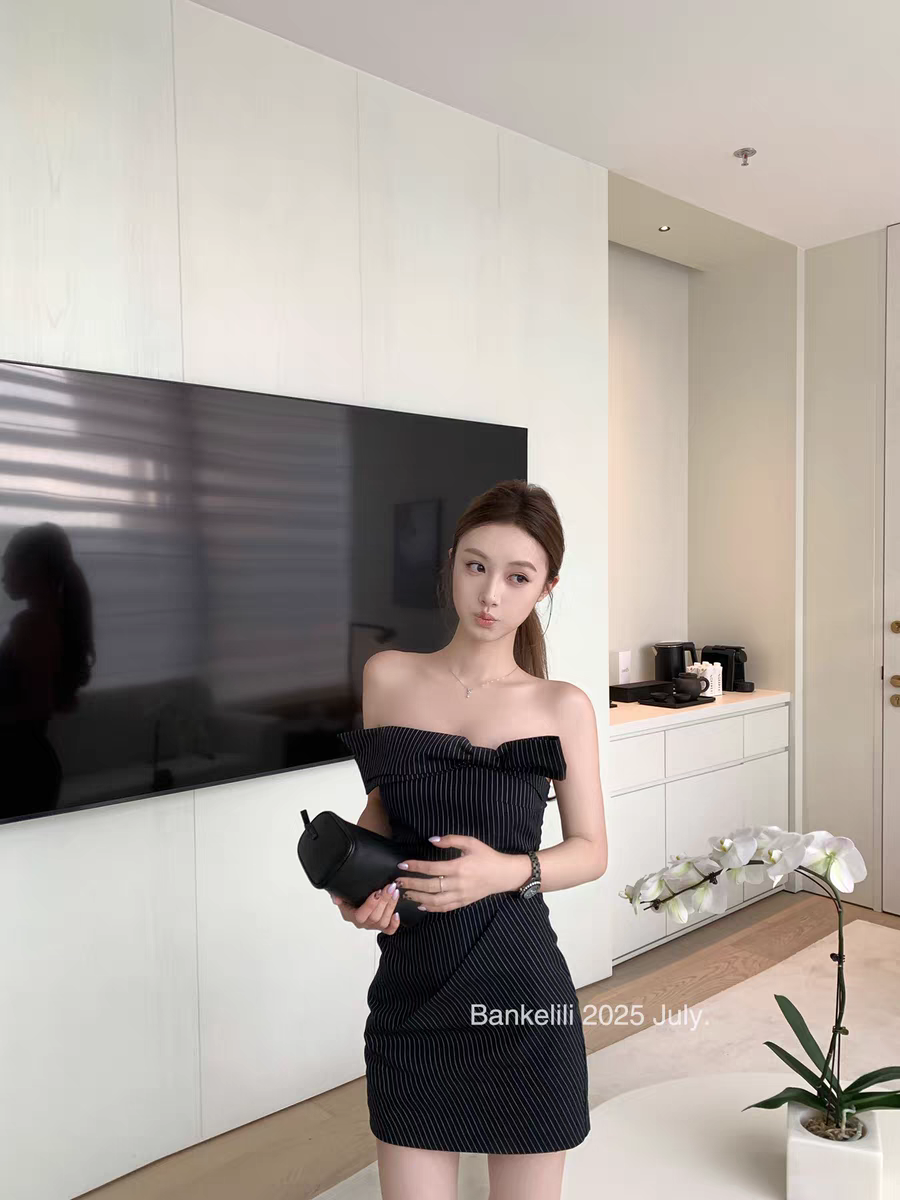 【卢浮幻境】条纹高级感纯棉蝴蝶结抹胸连衣裙