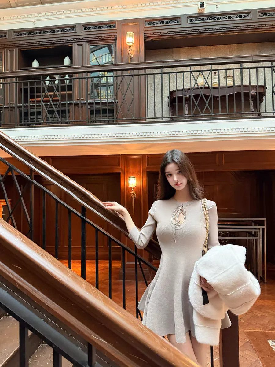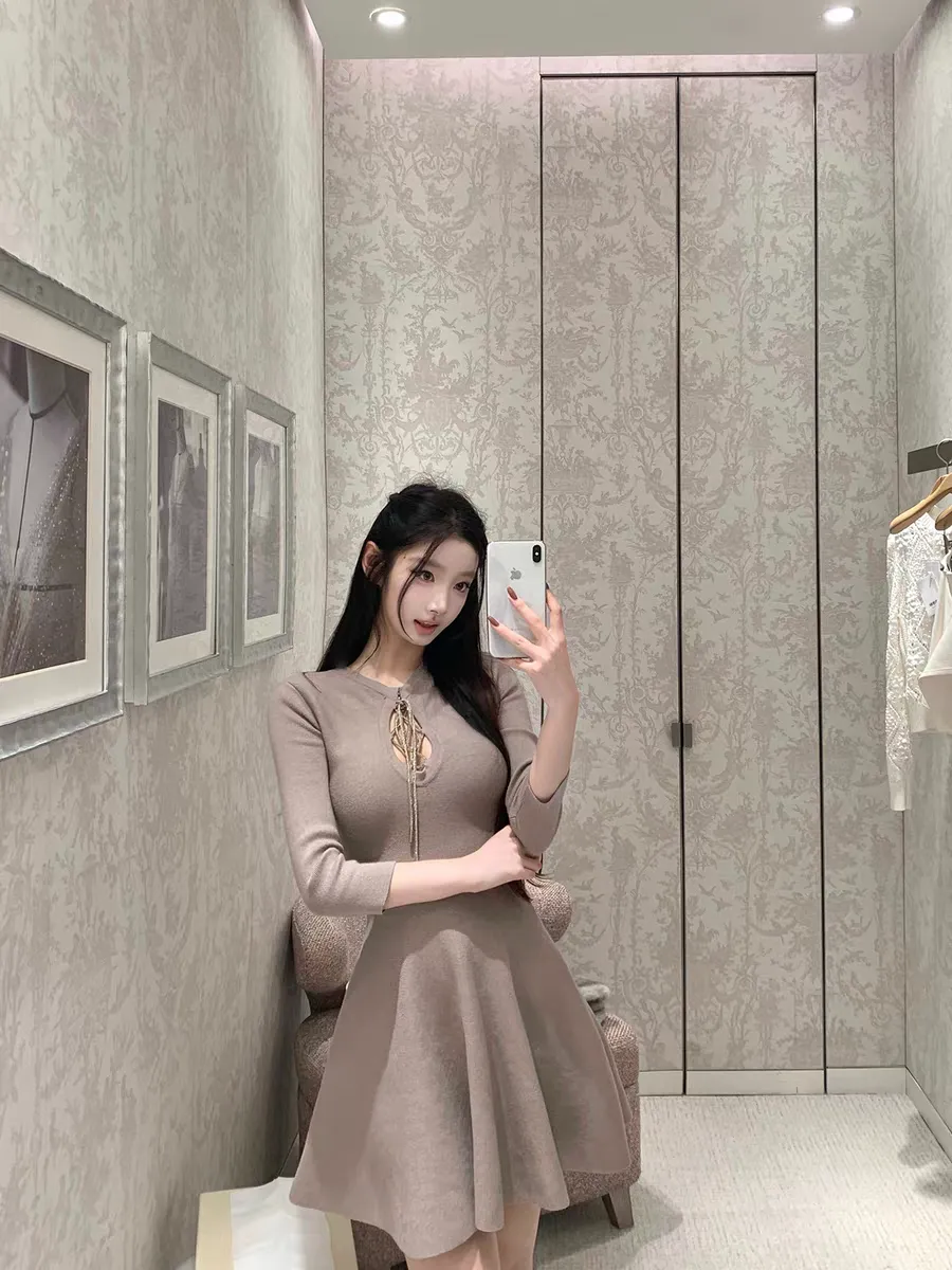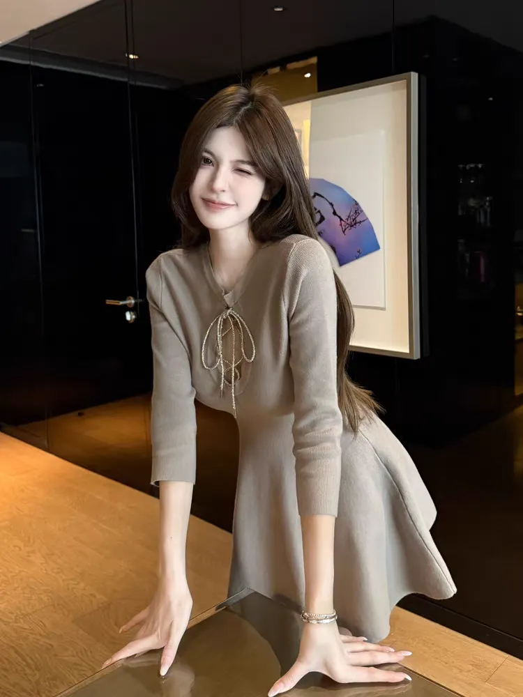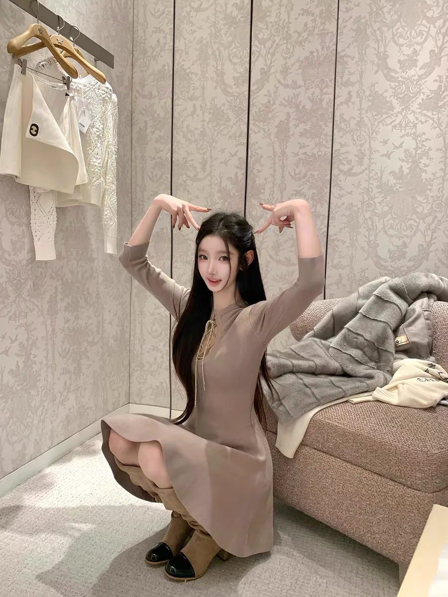 【松间布月】七分袖针织纯欲绑带连衣裙